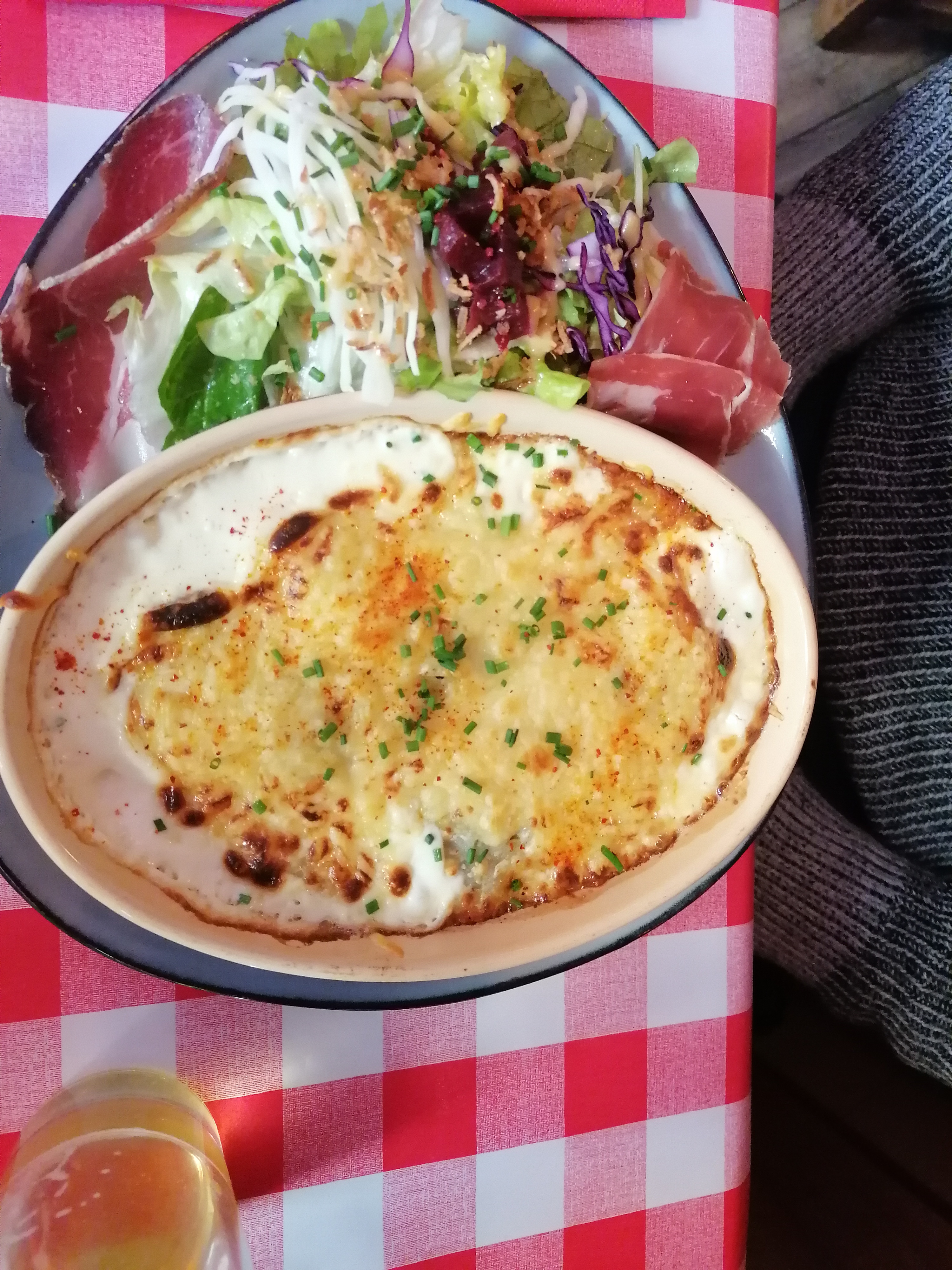 La nourriture était délicieuse. Nous avons eu 2 x la Babette, 3 x différents types de gratin et un plat mixte en entrée. C'était vraiment génial, de bon goût. Également situé sur une place de village confortable, je le recommande vivement.