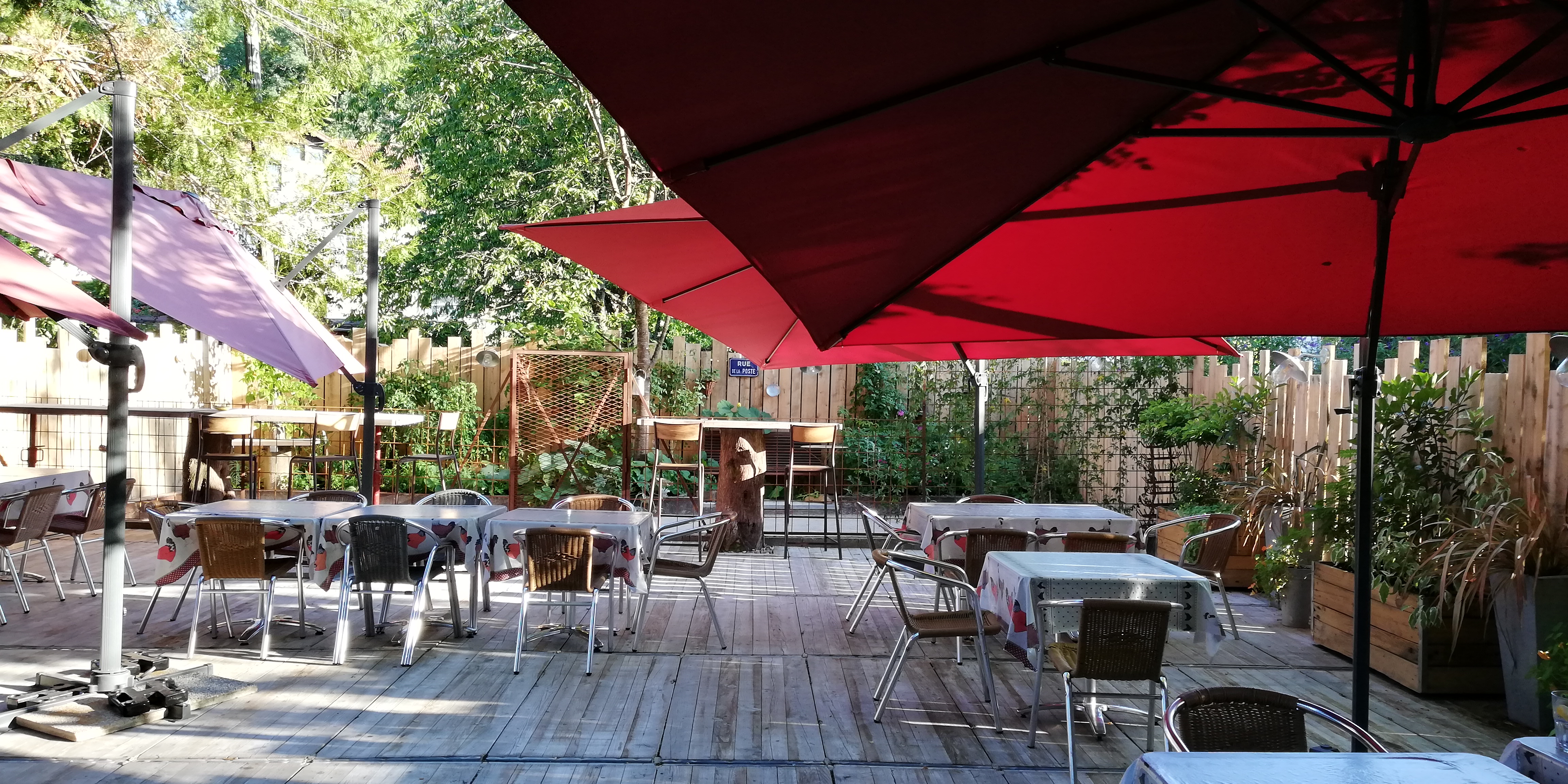 Restaurant très sympa avec une magnifique terrasse en arrière cour, bien ombragée, naturelle (avec des arbres, un joli petit bassin à poissons rouges et même un petit terrain de pétanque), on y mange bien et l'équipe et très conviviale !