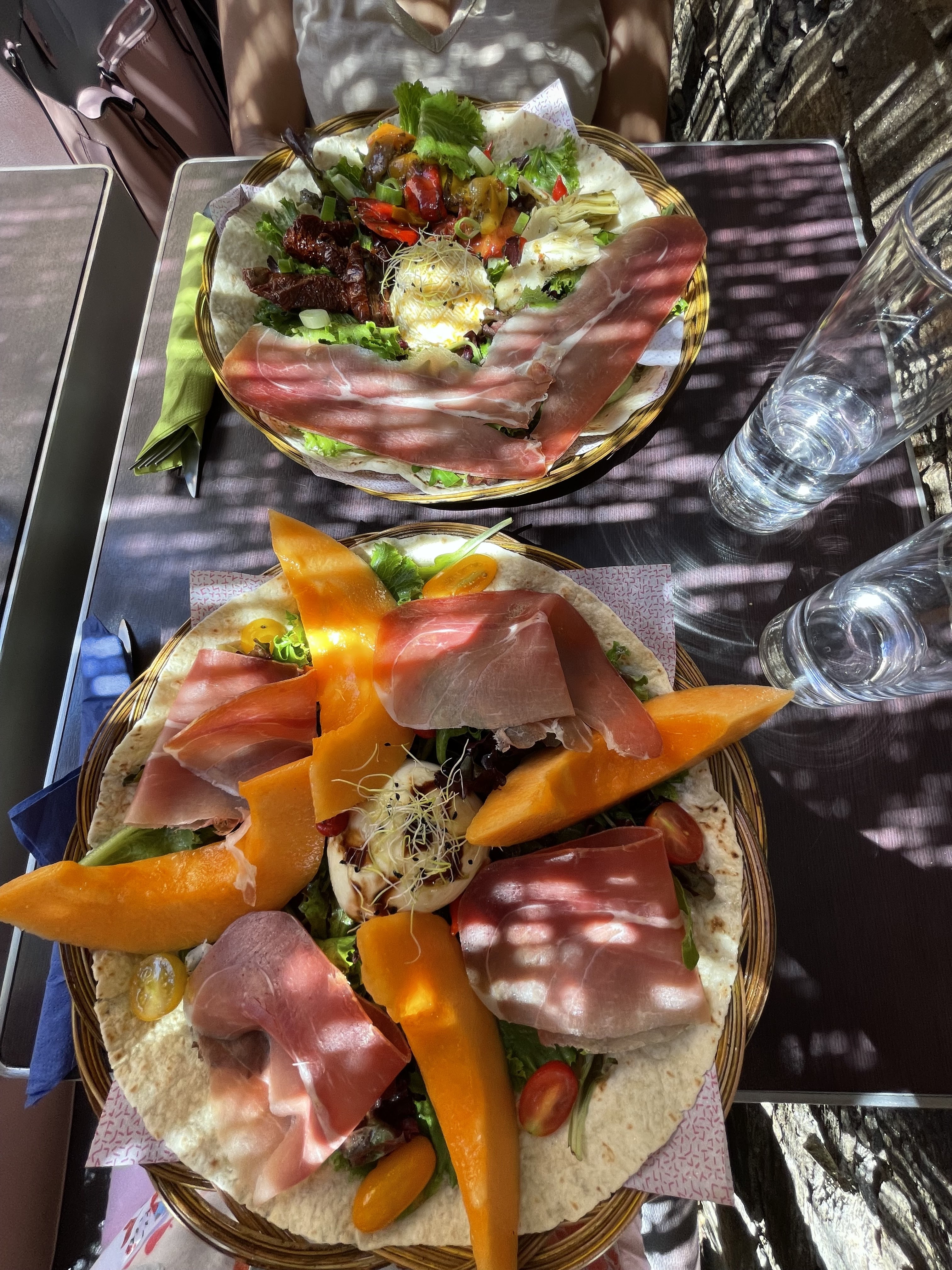 Accueil et endroit vraiment agréable, au calme et mignon, les salades garnies de produits qualitatifs, les premiers melons cavaillon de la saison 😋 et surprises pour les enfants. Tout est au top! Merci et à bientôt.