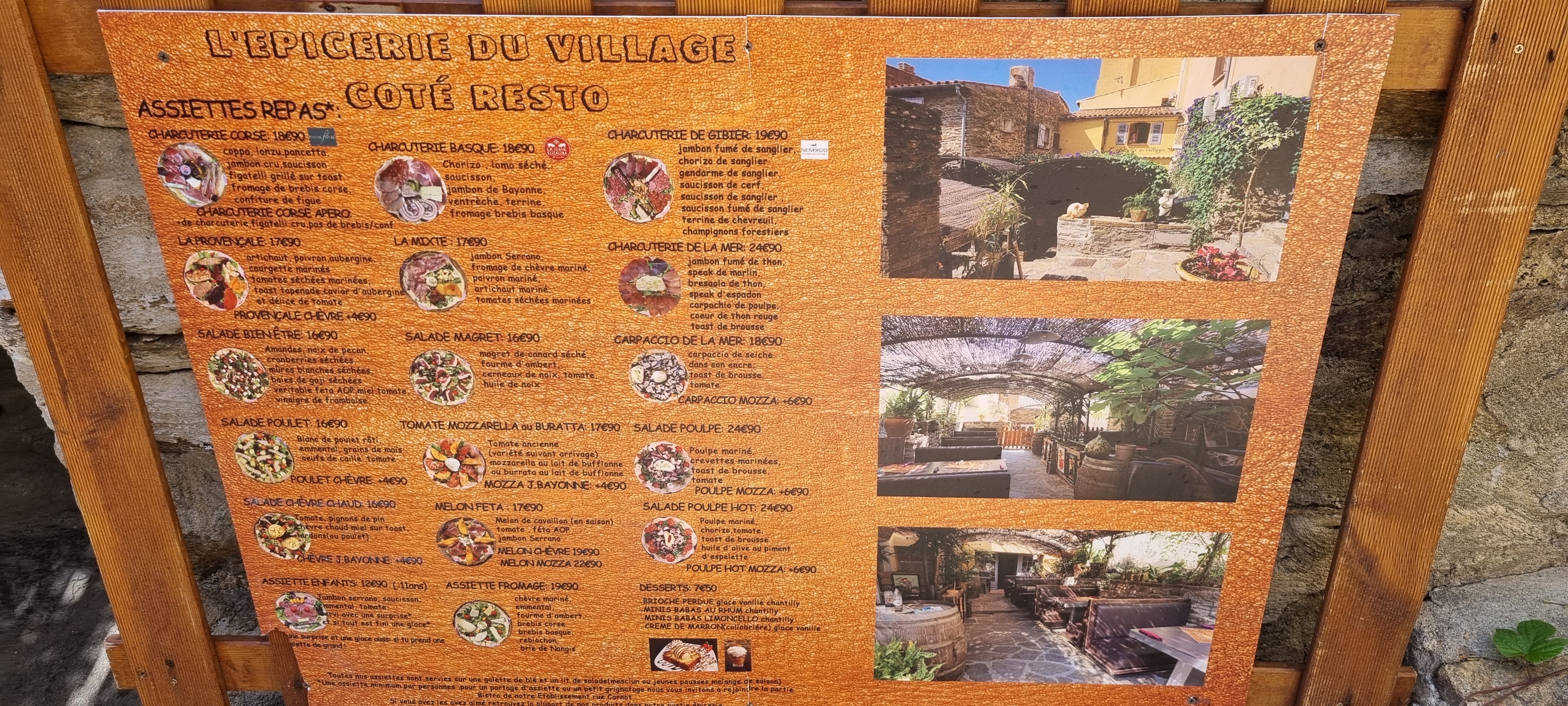 L’épicerie du village propose des salades excellentes avec des produits frais et de saisons. Les serveuses sont très accueillante et serviable. Le cadre où est situé le restaurant est apaisant et authentique en adéquation avec l’architecture du village. Petit bémol sur les carafes d’eau, manque de fraîcheur, lorsque nous vous venions de visiter le village nous étions assoiffés, ça aurait été agréable que l’eau soit plus fraîche. Nous recommandons vivement, les desserts avaient l’air délicieux mais les salades nous ont bien remplies 😉 Ps : la salade 🥗 melon mozzarella un régale, le melon 🍈 avait un goût sucré et très frais un vrai régale en bouche !