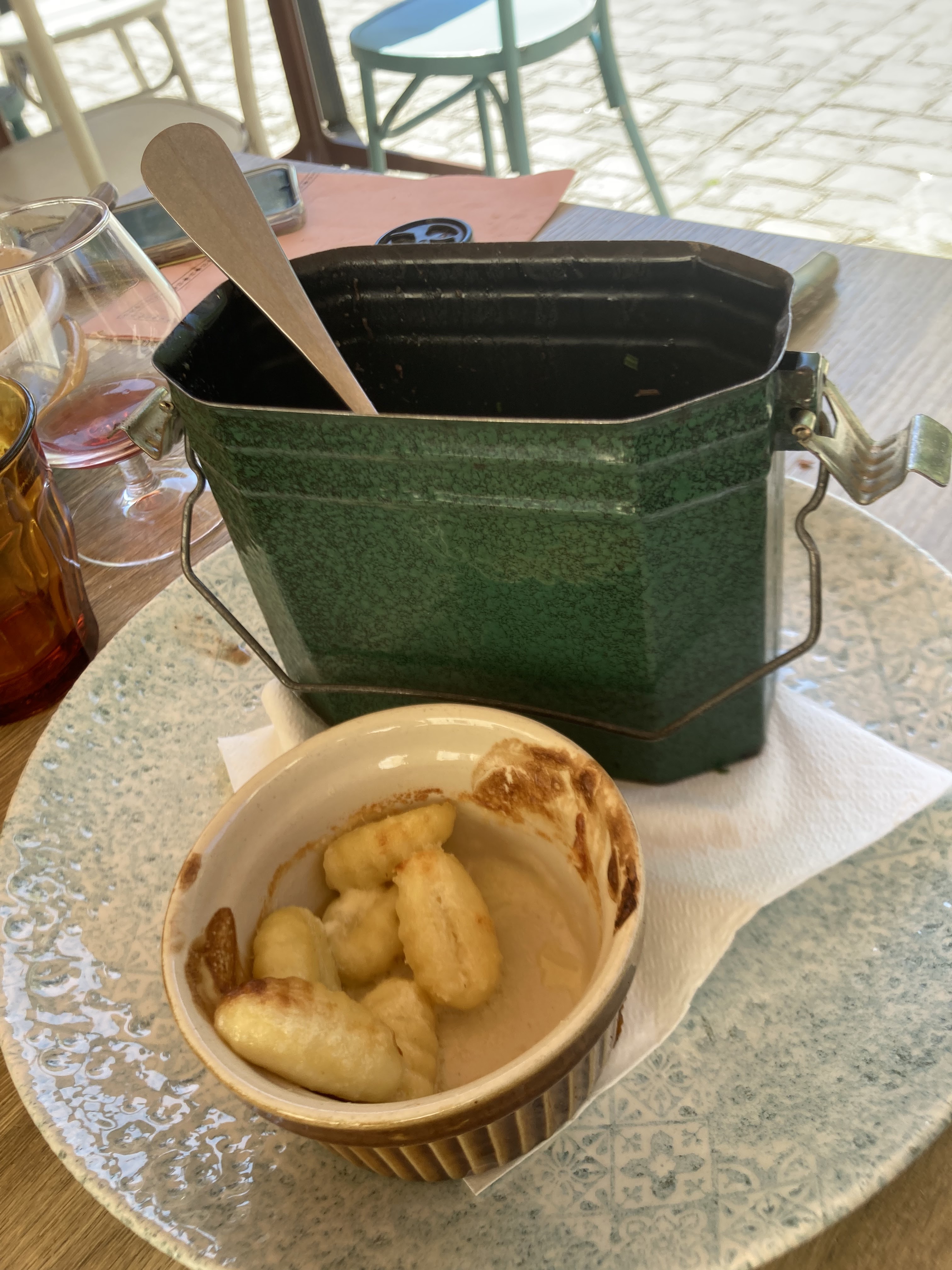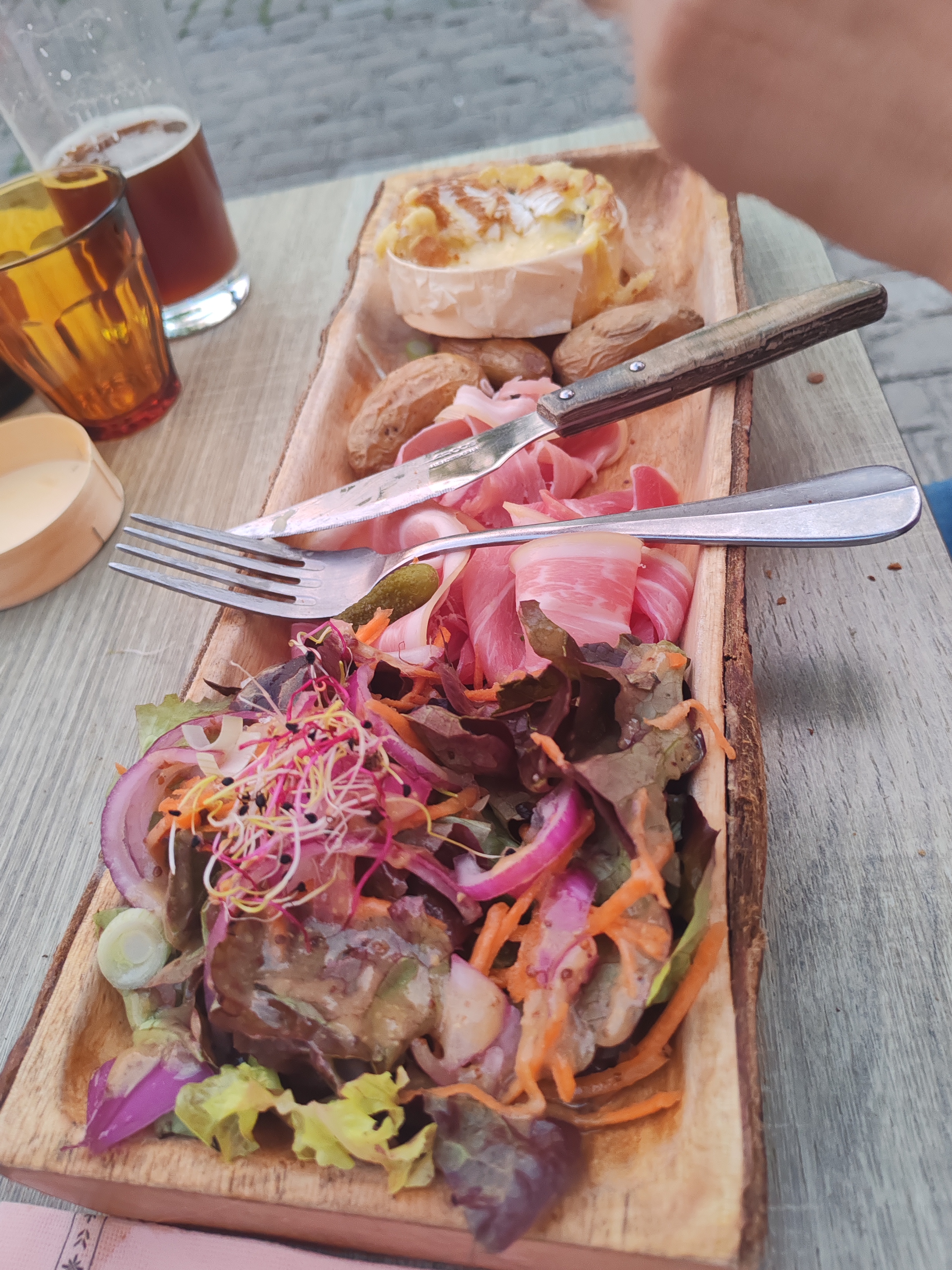 Nous cherchions une terrasse dans un cadre agréable et la carte de l'établissement était si alléchante que nous nous sommes arrêtés ici. Nous avons été installés immédiatement et une fois nos commandes prises les plats sont arrivés en 10 minutes alors que la terrasse était bondée ! Le personnel était très agréable et professionnel. Pour ma part je vous recommande Carlos le calendos, si cous êtes amateur de bonne bouffe, de camembert et de charcuterie ce plat est fait pour vous !
