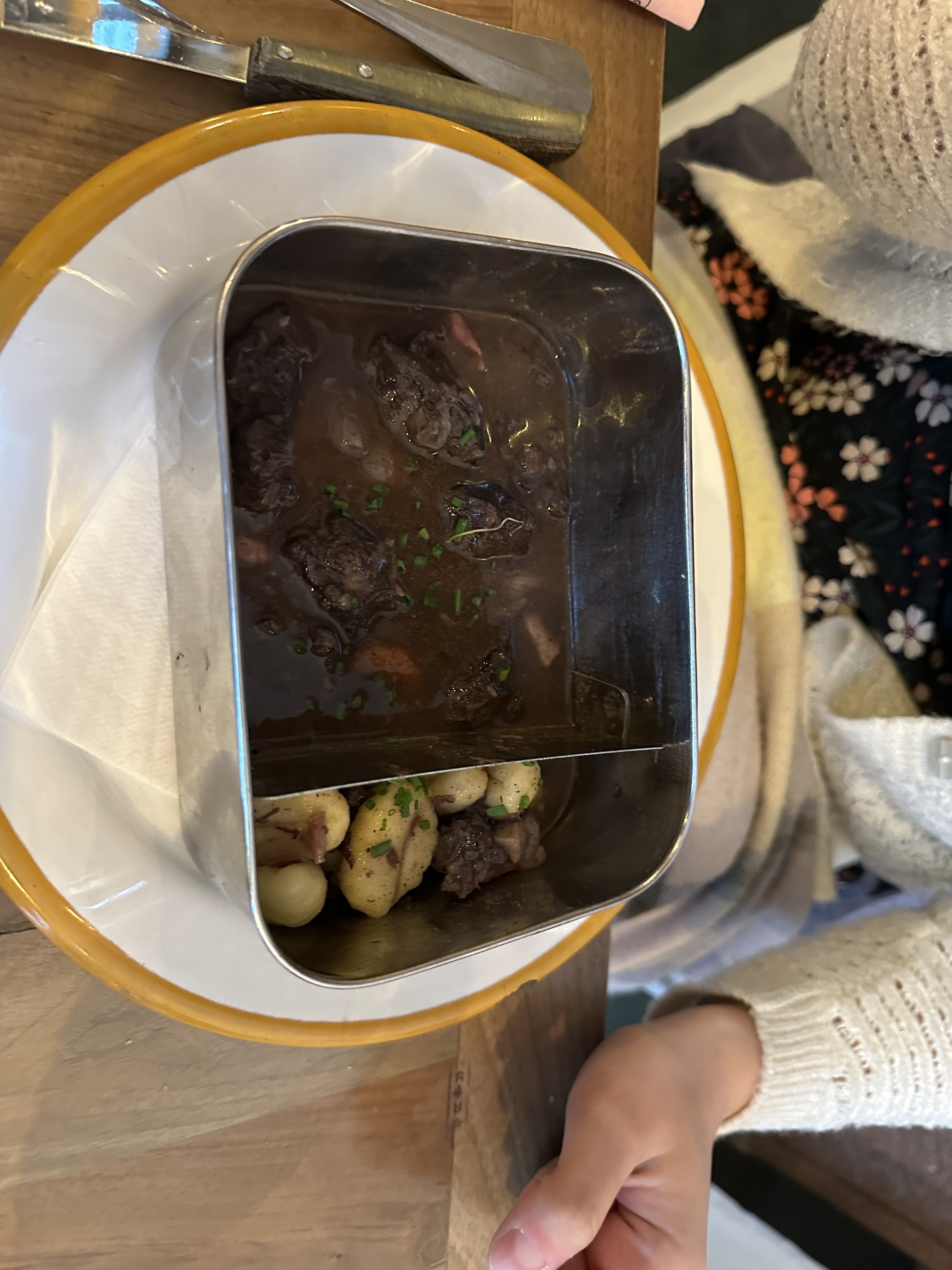 Les plats ne sont pas mauvais, l'atmosphère est correcte (un peu chargée avec beaucoup de détails mais c'est ce qui fait la charme de lieu). Cependant amère expériences sur deux points : - je dîne seule et au moment du service du plat (petit bol de salade et œuf en meurette), le serveur arrive et me demande pour qui est le bol de salade, je lui dis moi (alors que je suis seule mais bon passons), il me pose alors le bol et met les œufs en face, comme s'il y avait une personne avec moi. Je me retrouve donc à devoir prendre de mes propres mains l'assiette posée à l'opposé (assiette brûlante par ailleurs). Le jeune homme me voit faire mais ne réagit pas. Une peu de jugeote voyons ! - un plateau de fromage avec un morceau de camembert ? Vraiment, nous sommes en Bourgogne. Pas en Normandie...