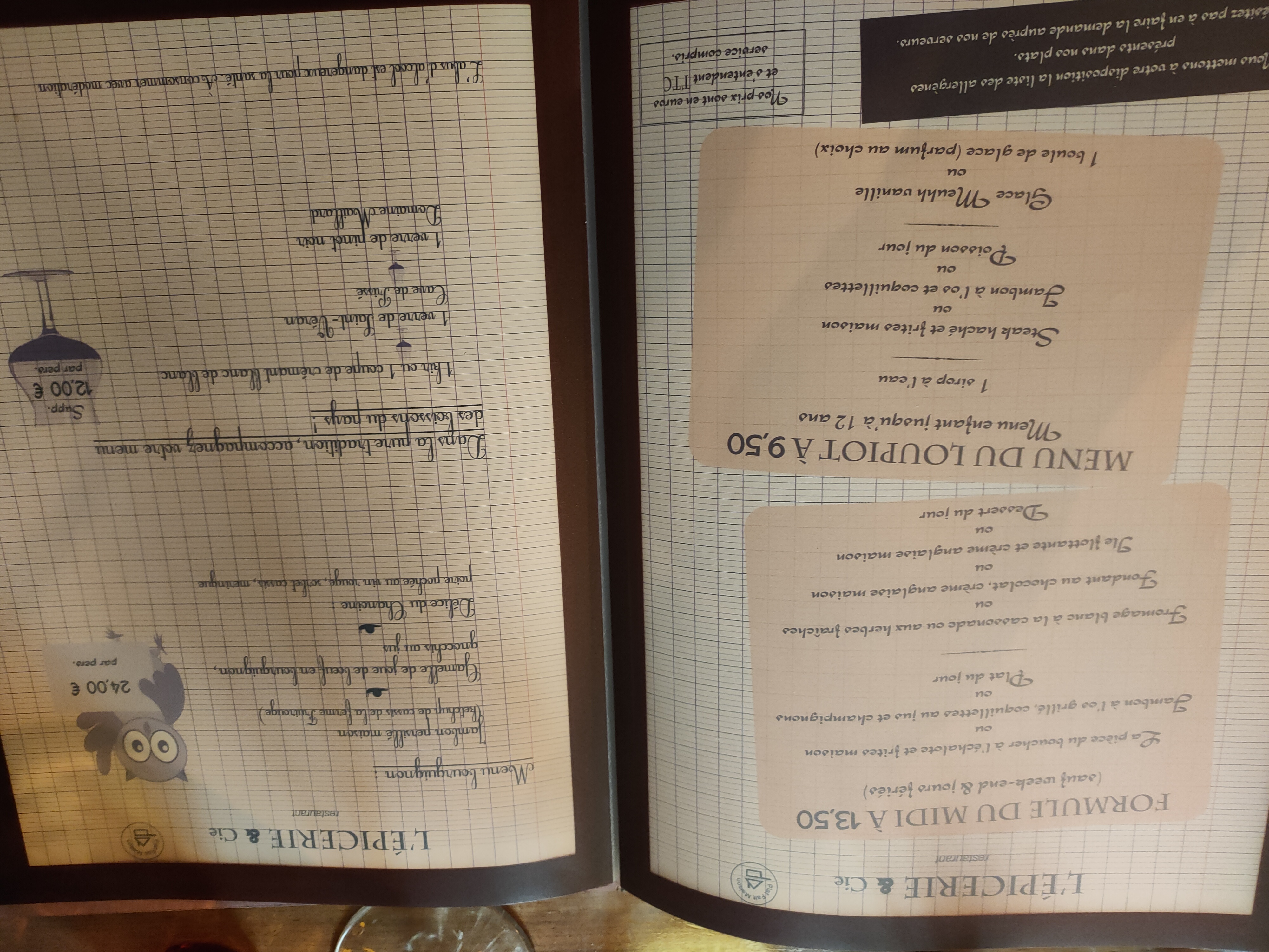 formule du midi a énormément augmenter de 11€90 avant à 16€ aujourd'hui. les portions non pas augmenter du coup... et supplément de 2€ pour un changement de sauce ( ce qui n'était pas facturer avant ) le service et la bien vaillance a baissé lui par contre. avant l'équipe était bien vaillant sur le pain, eau... débarrassage. dernièrement j'ai pris l'entrecôte creme époisse... la portion de frite insuffisante et frites trop cuite.