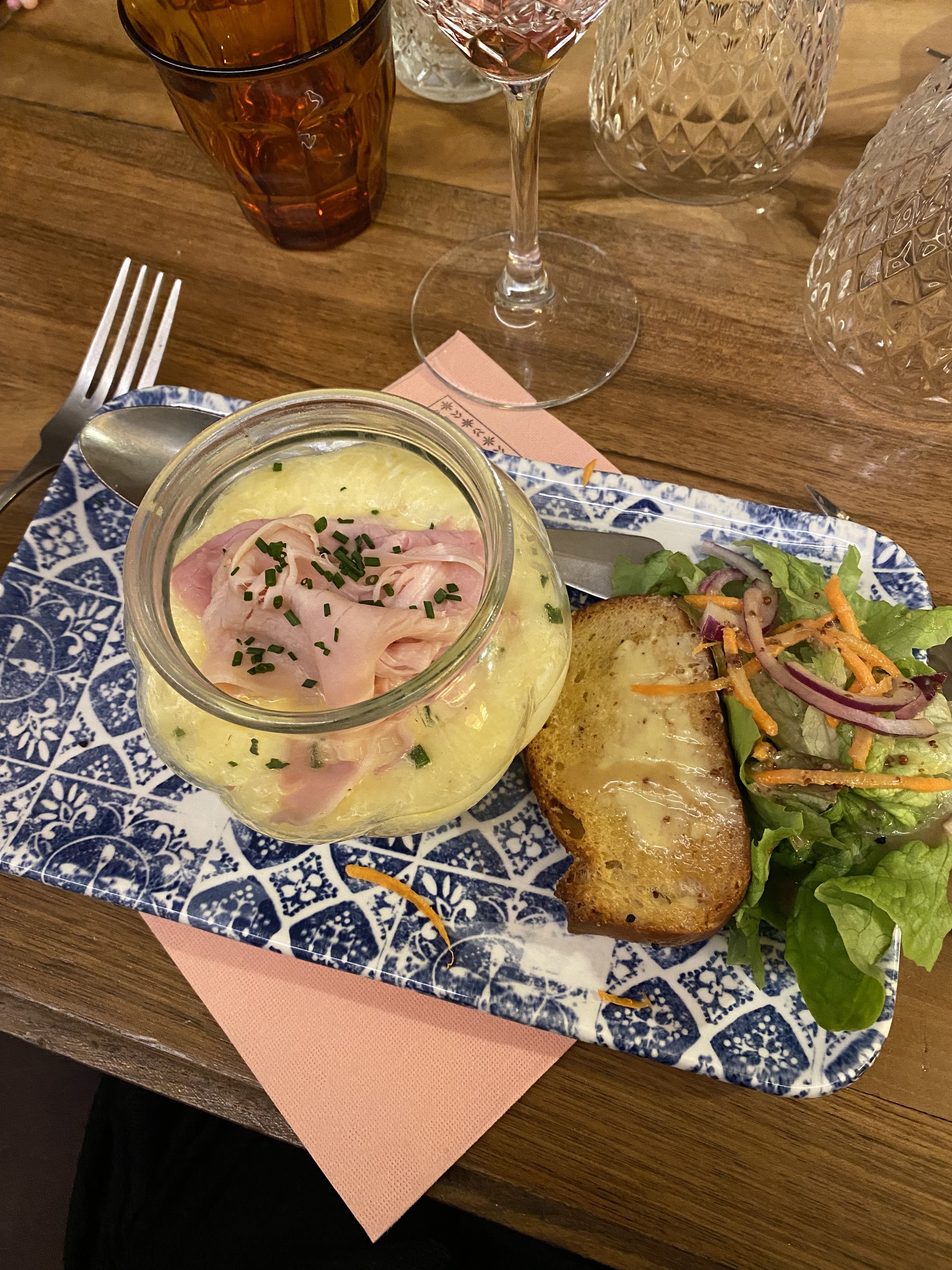 Nous avons passé un très bon moment, la cuisine est très bonne, bien présentée et fait maison 👍🏻 Le serveur très aimable mais le service un peu long (ça va car on n’était pas pressés, on a pris le temps et au moins on est pas poussés vers la sortie comme dans certains établissements 😉). Nous avions déjeuné en terrasse pour profiter du soleil 😎 mais l’intérieur et la deco est magnifique 😍 très typique. Seul bémol peut être, nous avions trouvé certains plats un peu excessifs pour ce qu’il y avait dans l’assiette (comme les œufs meurettes à l’époisse (ou sans d’ailleurs), pour 15€) alors certes c’est fait maison et de la région et c’est bon mais je ne pense pas qu’un tel prix soit justifié. Sinon nous avons bien déjeuné et nous reviendrons quand même lors d’un prochain passage à Dijon.