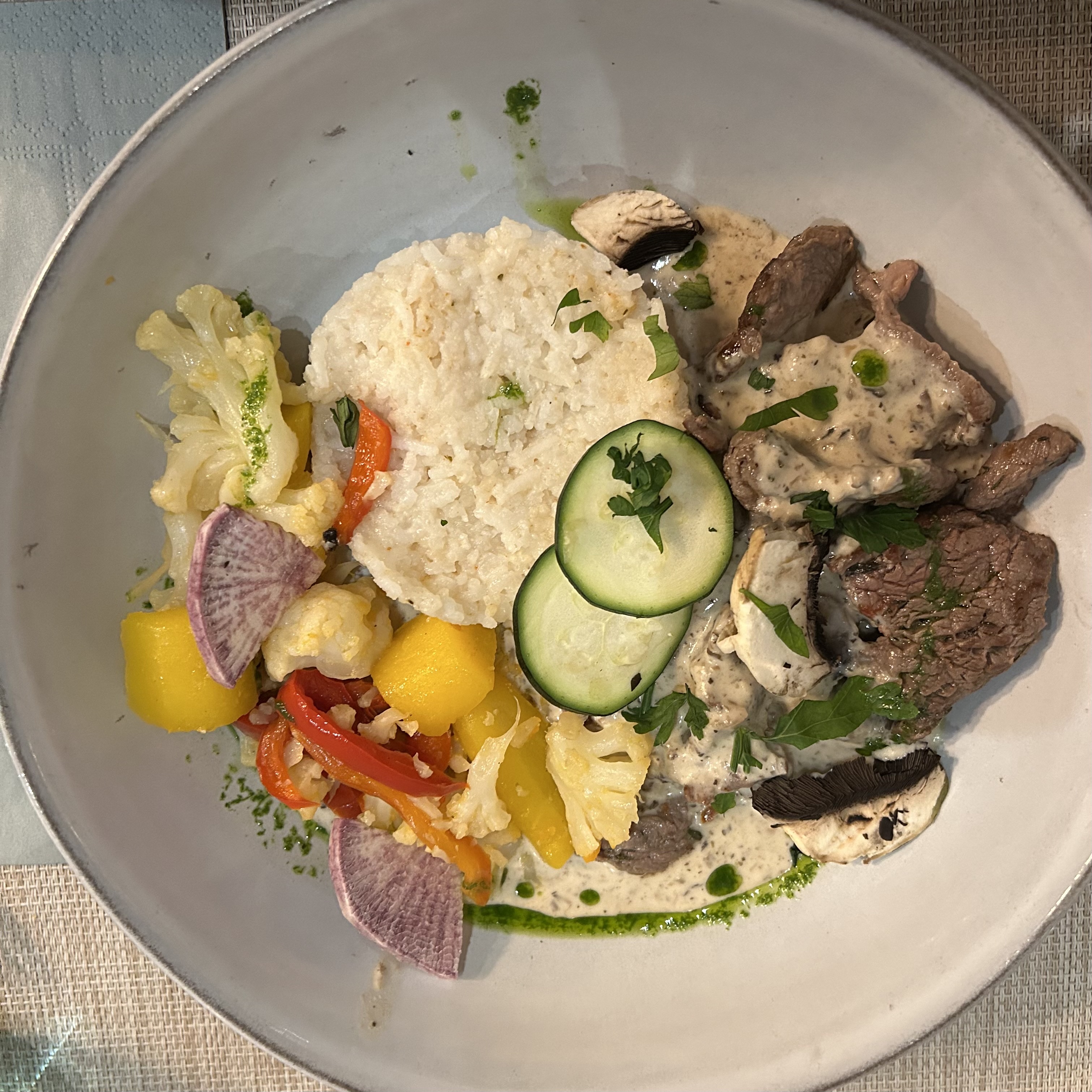 Cuisine de qualité, préparée en direct au restaurant par un chef fantastique. J'adorerais y retourner, les couverts sont également très propres.