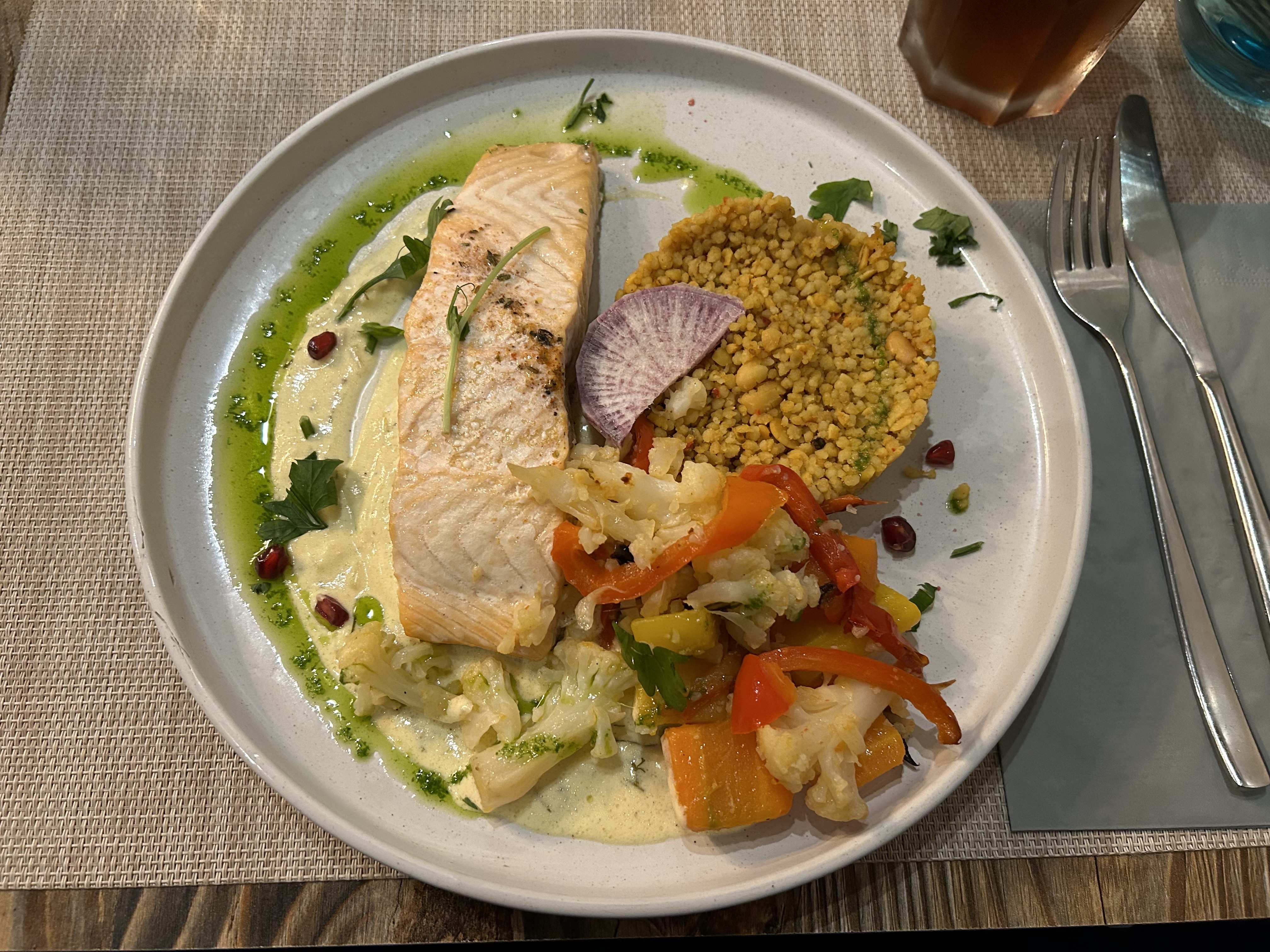 Entre collègues, à 2 pas de notre hôtel, une cuisine délicieuse, généreuse et bien présentée ! Des assiettes colorées, la cheffe qui cuisinait à côté de notre table tout en maîtrise, un équilibre respecté, c'est une adresse que je recommande les yeux fermés sur Cherbourg 😁