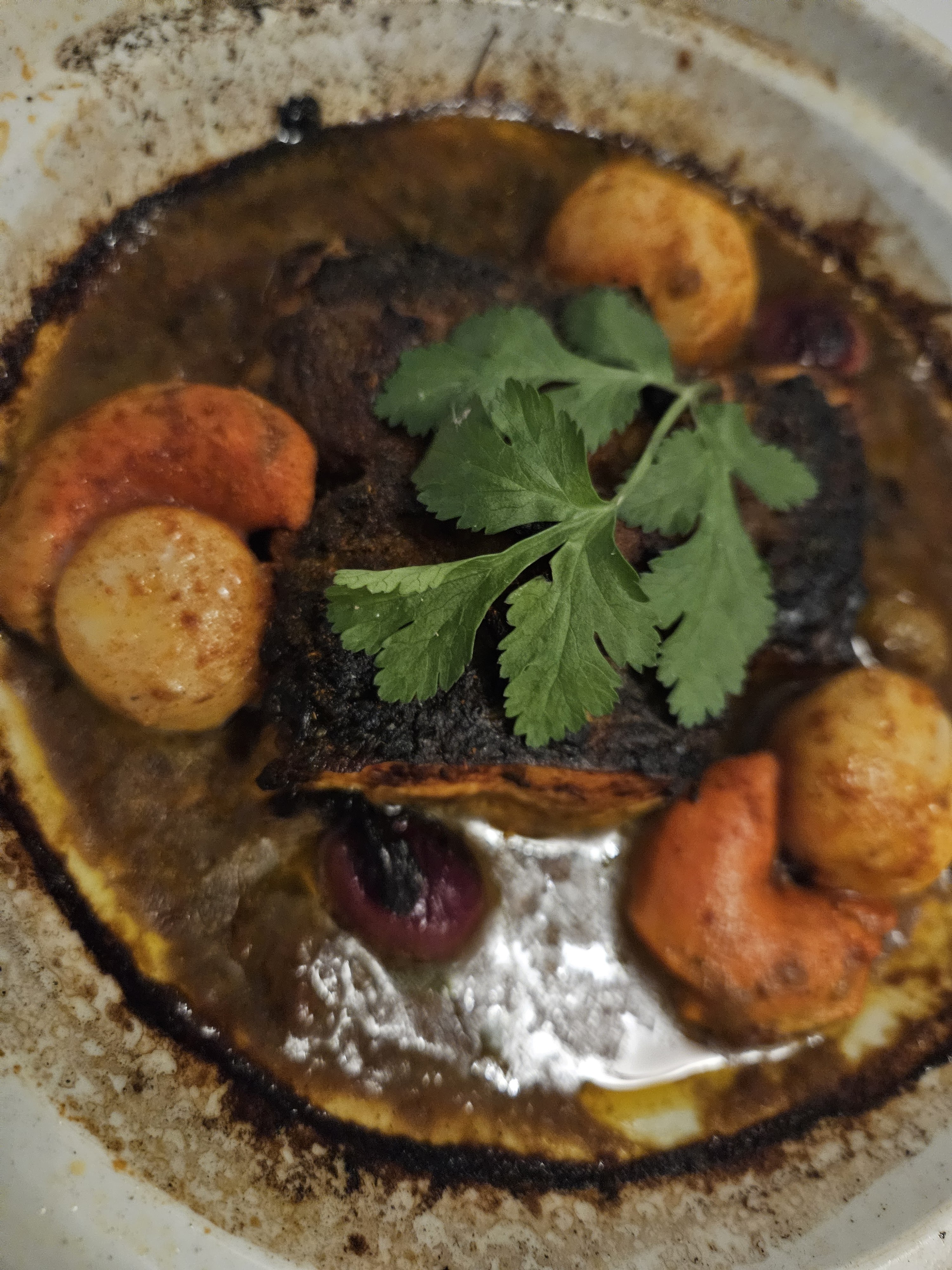 J'ai mangé un tajine avec une souris d'agneau tiède. Un bon jus 10 olives un quartier de citron (peut-être confit) et un Petit bol de semoules Il me semble qu'on peut faire mieux.Rajoutez peut être quelques légumes. Surtout facturé à 22 euros à la carte, alors que j'avais commandé un plat et dessert mais je n'ai pas eu le temps de manger le dessert une bonne heure d'attente service trop long.donc le tajine facturé à la carte pas concluant pour une première expérience.