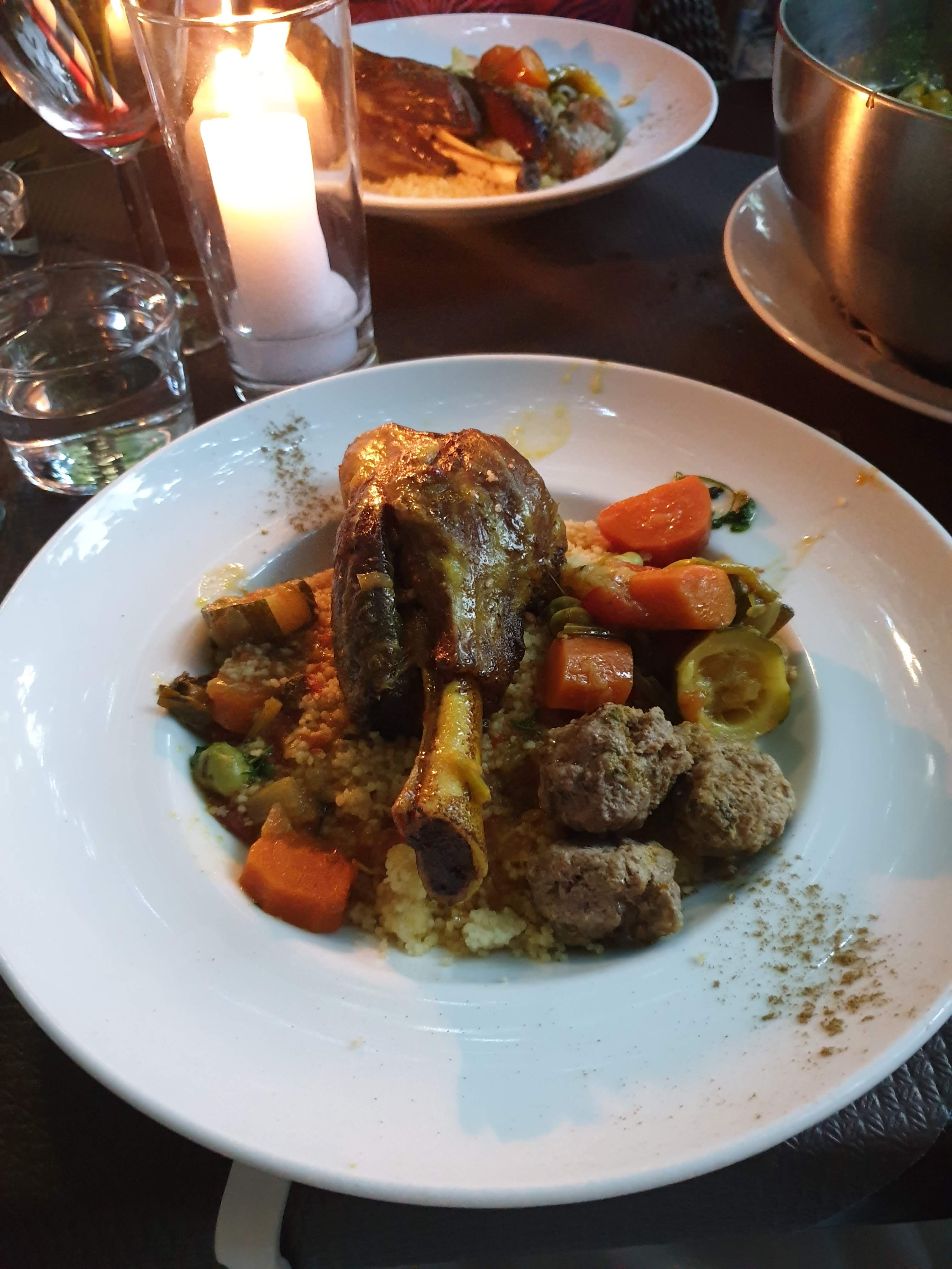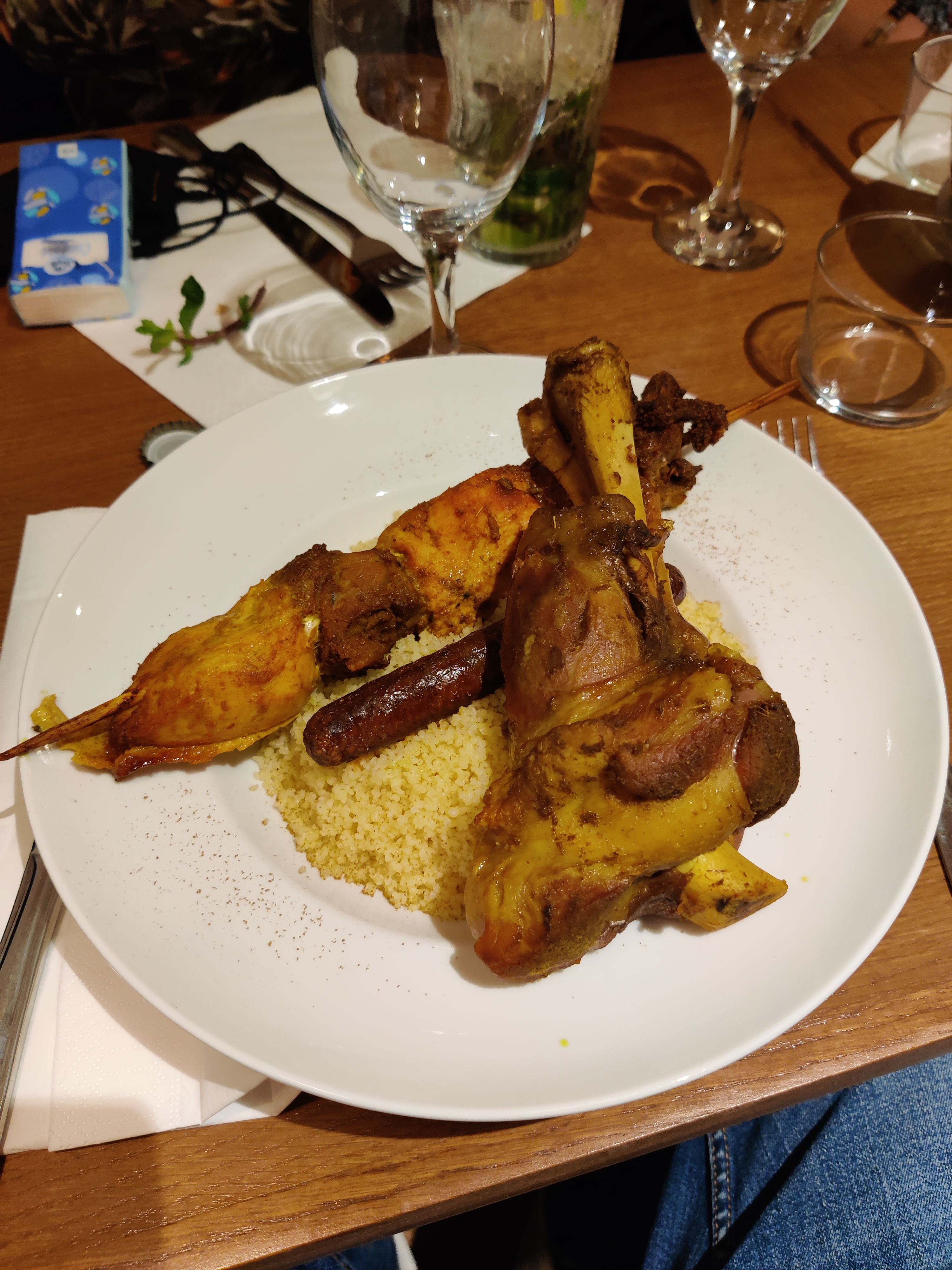 Voilà une expérience gustative que je renouvellerai avec grand plaisir. En entrée j'ai pris une pastilla de poulet, une pure merveille ! Je ne m'en remets pas tellement qu'elle était délicieuse. A suivre un couscous merguez boulette fabuleux avec plein de saveurs , très bien garni et la viande très bien cuite. Un service au top, l'attente parfaite entre 2 plats, et le sourire au rendez-vous.