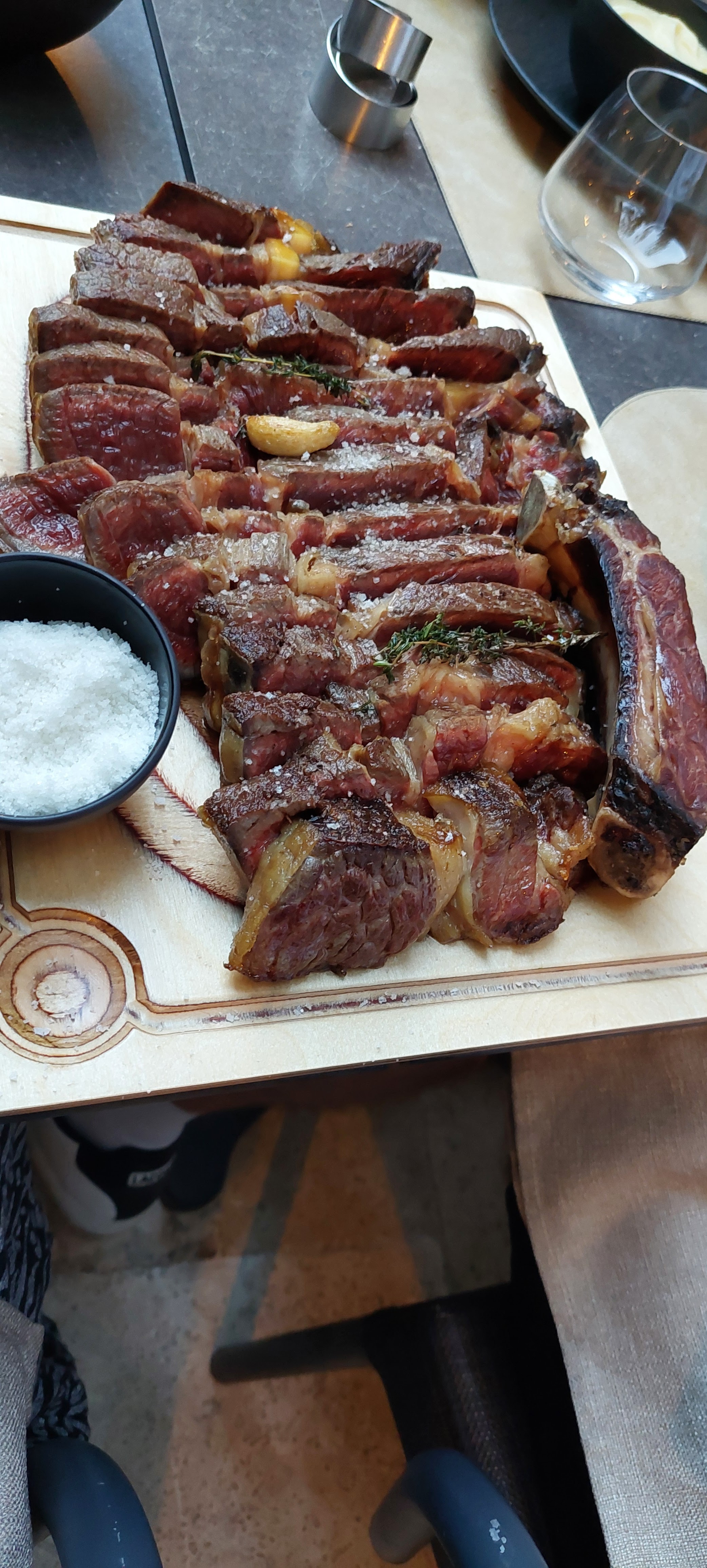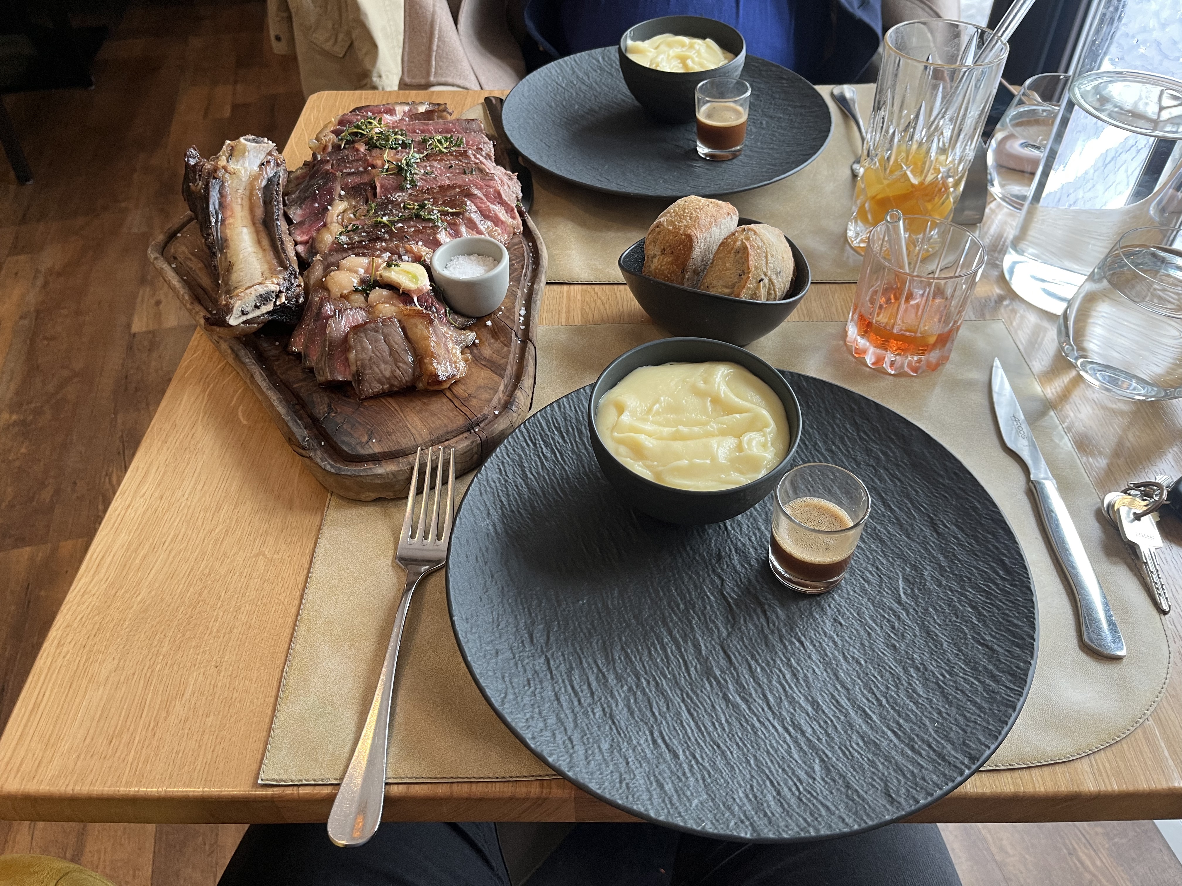 service haut de gamme ; plats biens mais nous sommes un peu restés sur notre faim... la bavette maturée (23euros le plat) n'était pas tendre, et le personnel nous a donné des informations sur la maturation contradictoire ! Bref, rapport qualité/prix pas top !