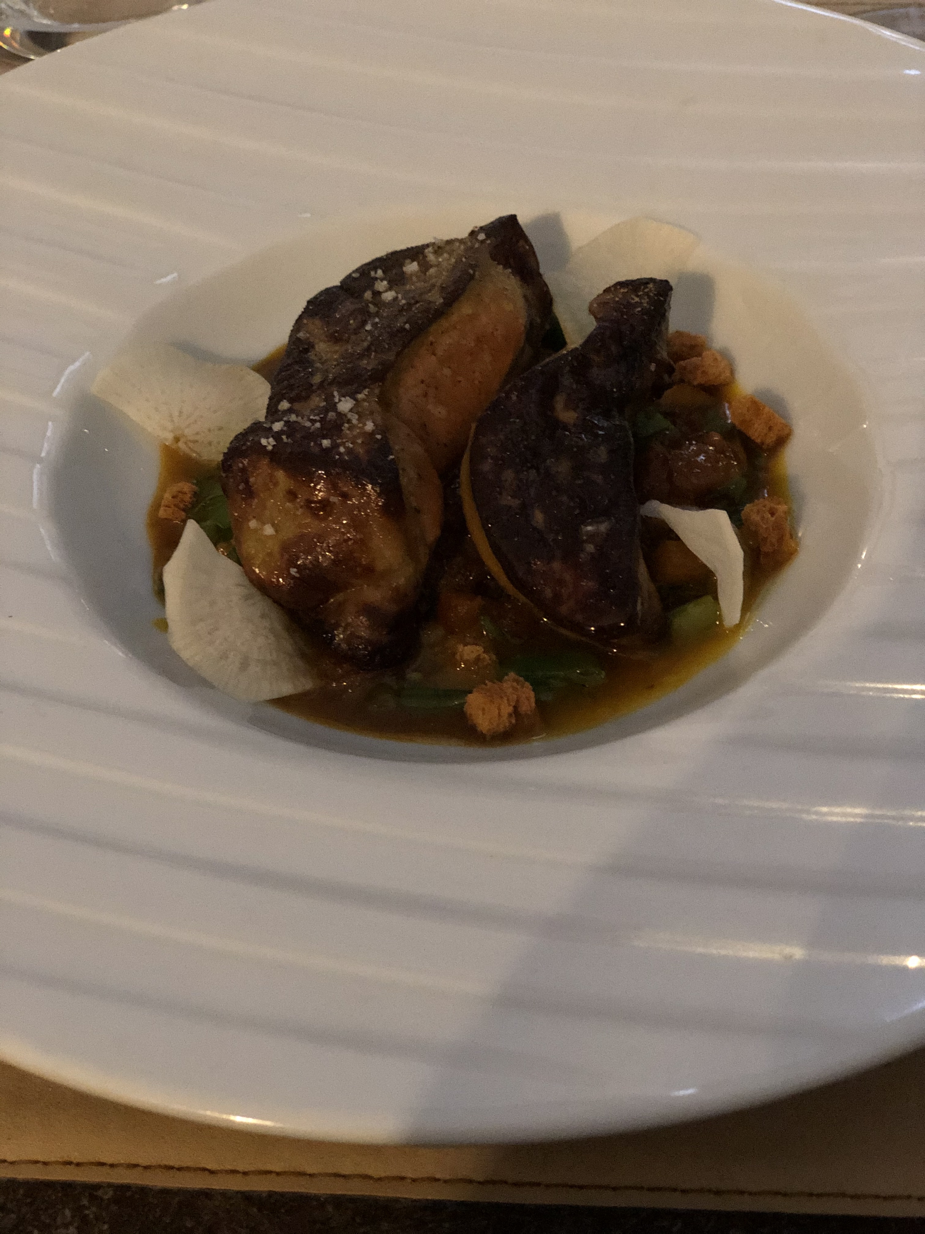 J'avais des attentes plus élevées et je voulais vraiment lui donner cinq étoiles. Mais tout était très bon et pas excellent. Le foie gras manquait de saveurs profondes pour une raison quelconque, l'entrée au fromage était bonne. Le steak était moelleux et le poisson (pas premium) était correct.