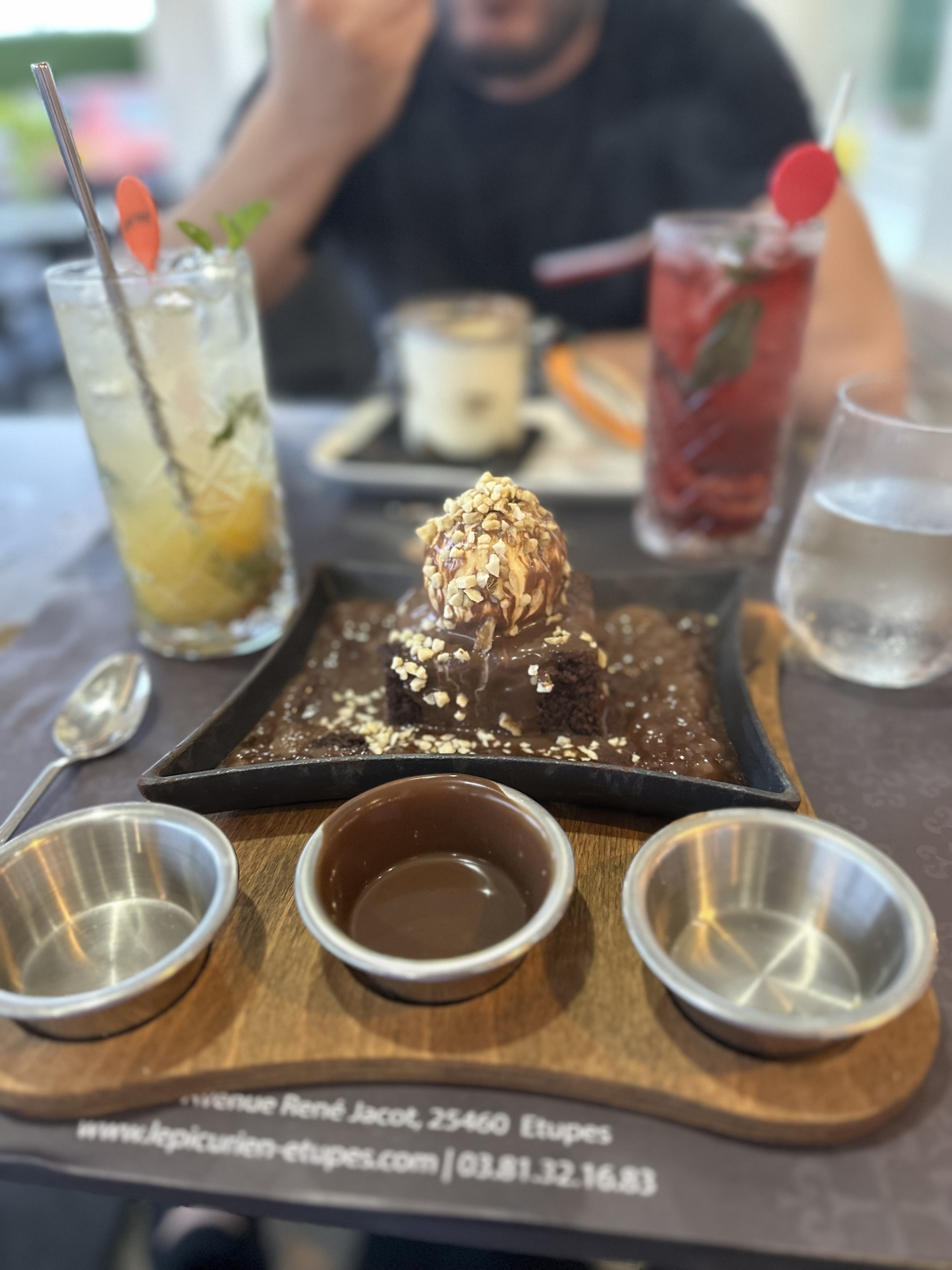 Un super restaurant Une cuisine excellente Un grand merci pour l accueil Petit bémol un peu d aromates sur la salade épicurien Mais le top du top revien au desserts chocolat 🥰🥰