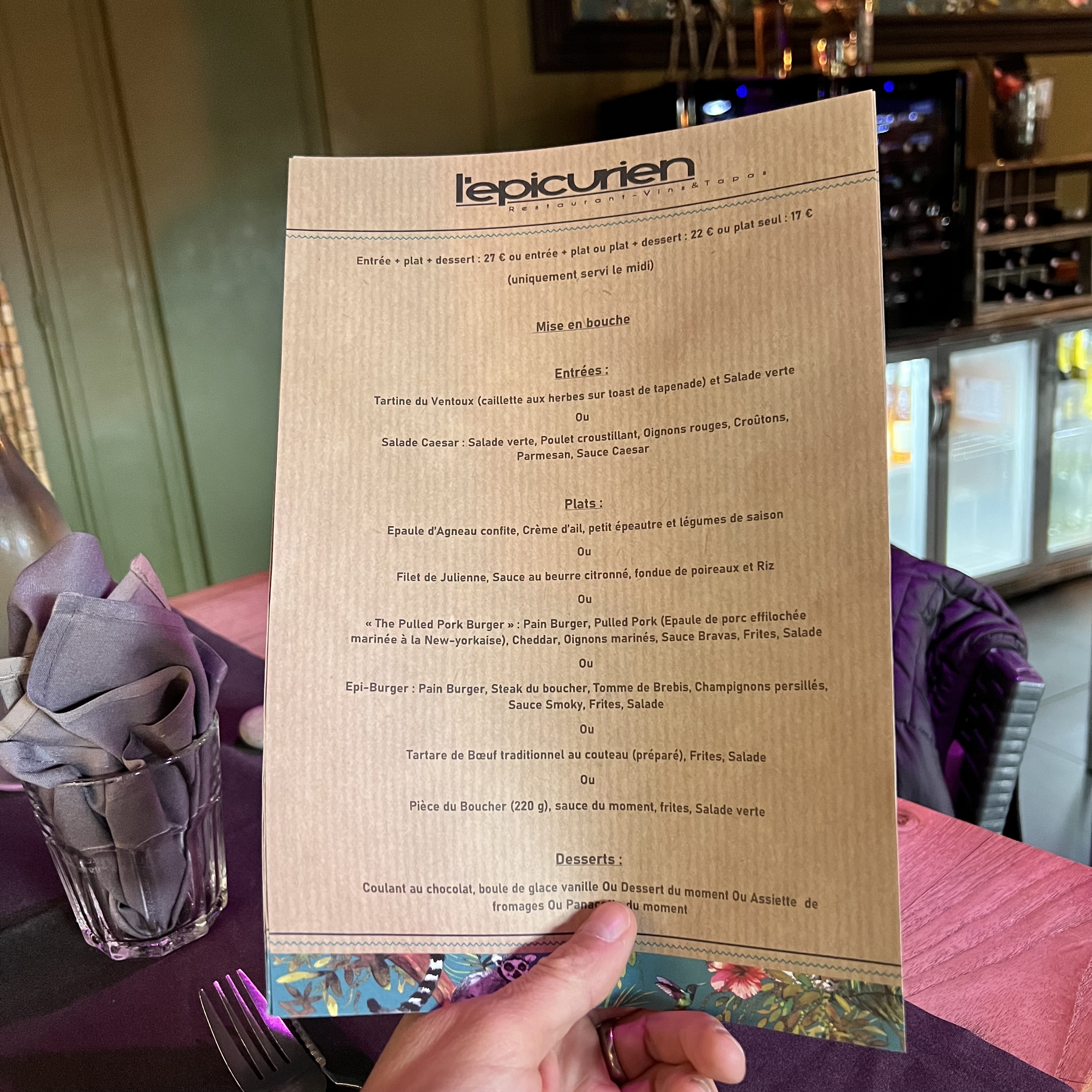 Aujourd'hui 11 juin nouvelle carte à l'épicurien Que du bonheur