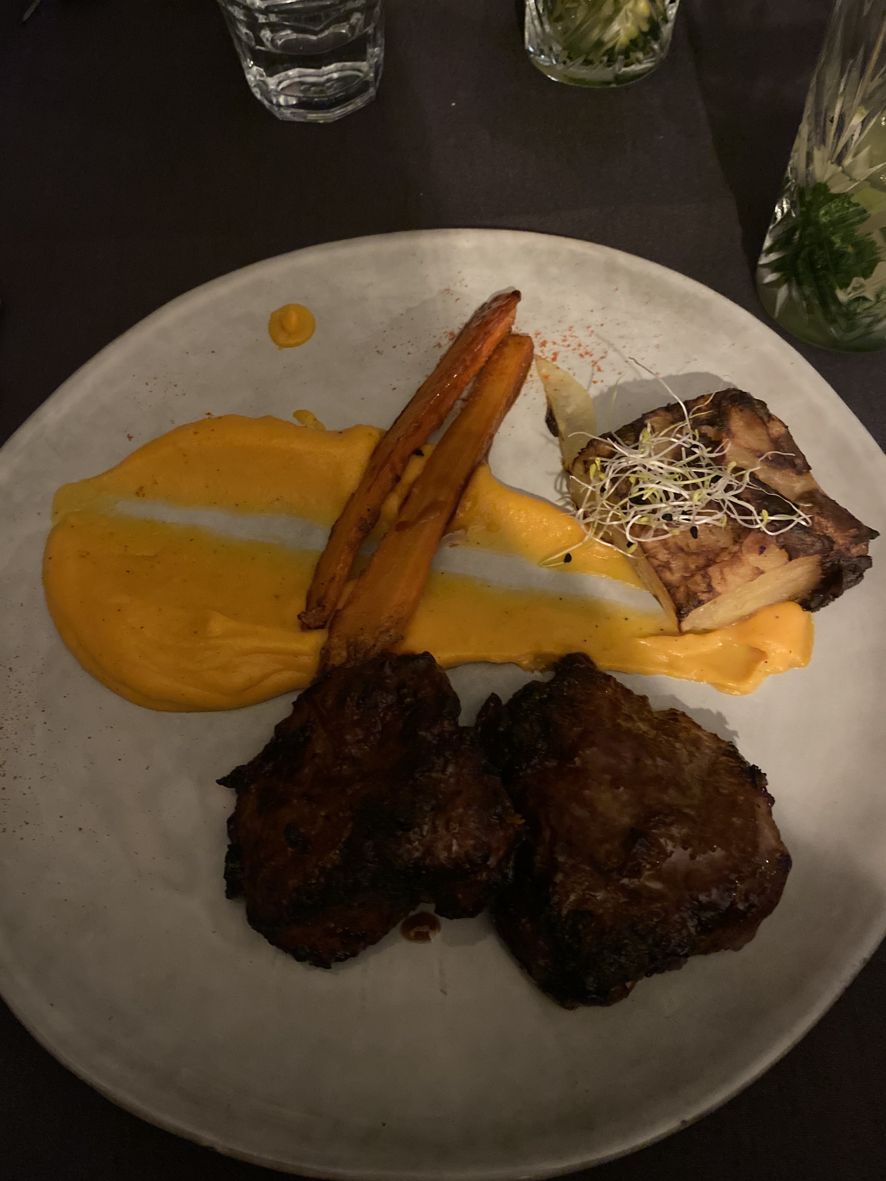 Top food, j'adore le Pluma Cochon laquée, ambiance stylée, son de bar sympa en fond sonore. Service divertissant