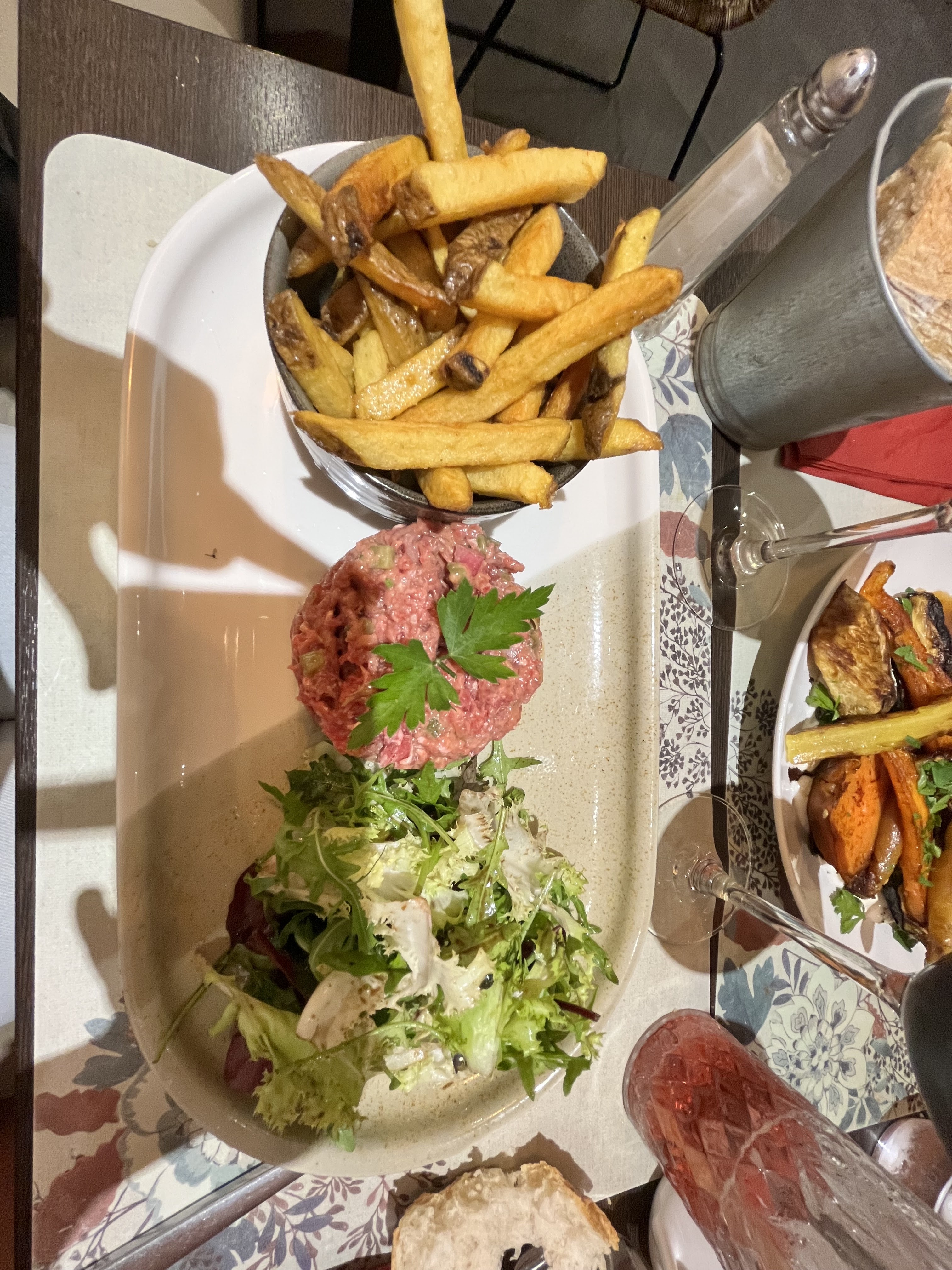 Petit restaurant à l'abri des rues passantes. Service impeccable et professionnel. Amateurs de tartare, adresse à tester ! Frites maison (si rare) très bonnes. Bon rapport qualité prix. 😊