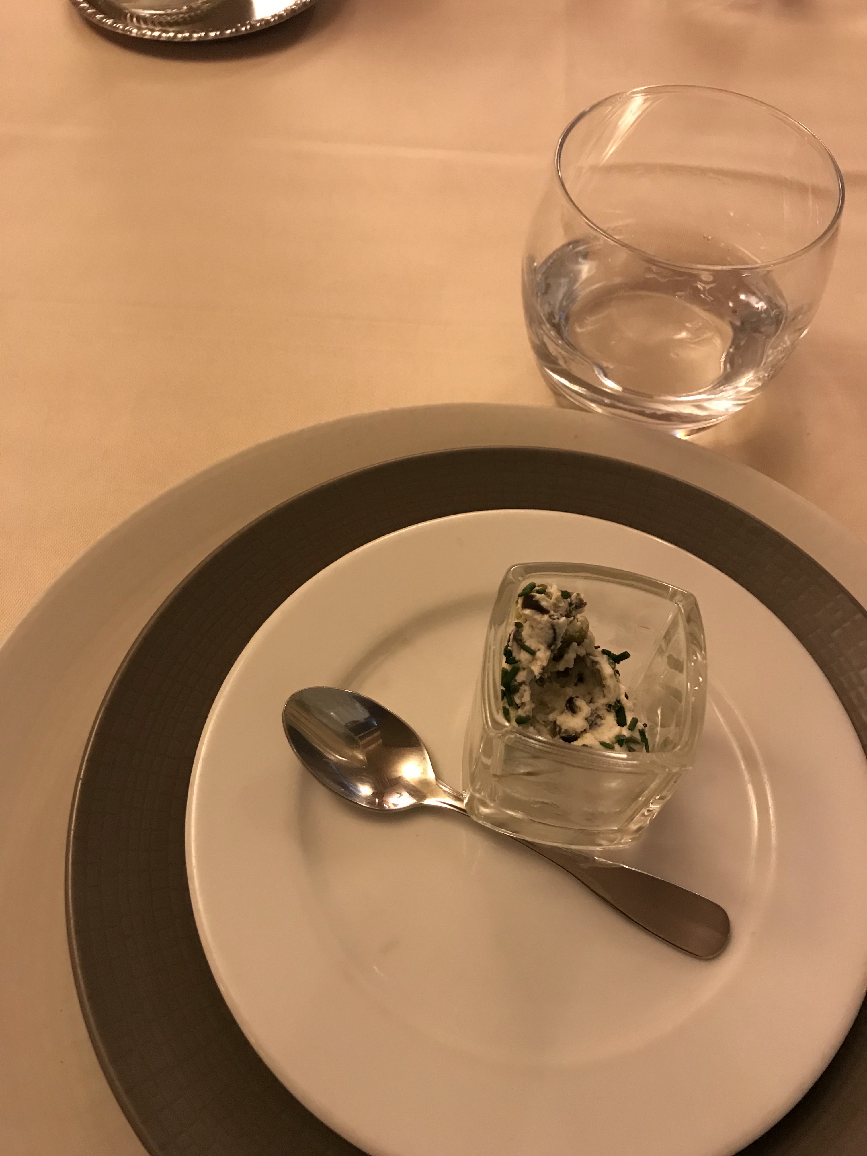 Accueil très sympathique. Délicieuse petite verrine offerte pour accompagner une coupe de champagne. Ravioles succulentes en entrée, suivies d'une viande de boeuf très tendre. Desserts à la hauteur du reste. Et pour finir, on ne lésine pas sur les mignardises accompagnant le café. Élégance et simplicité : bravo !