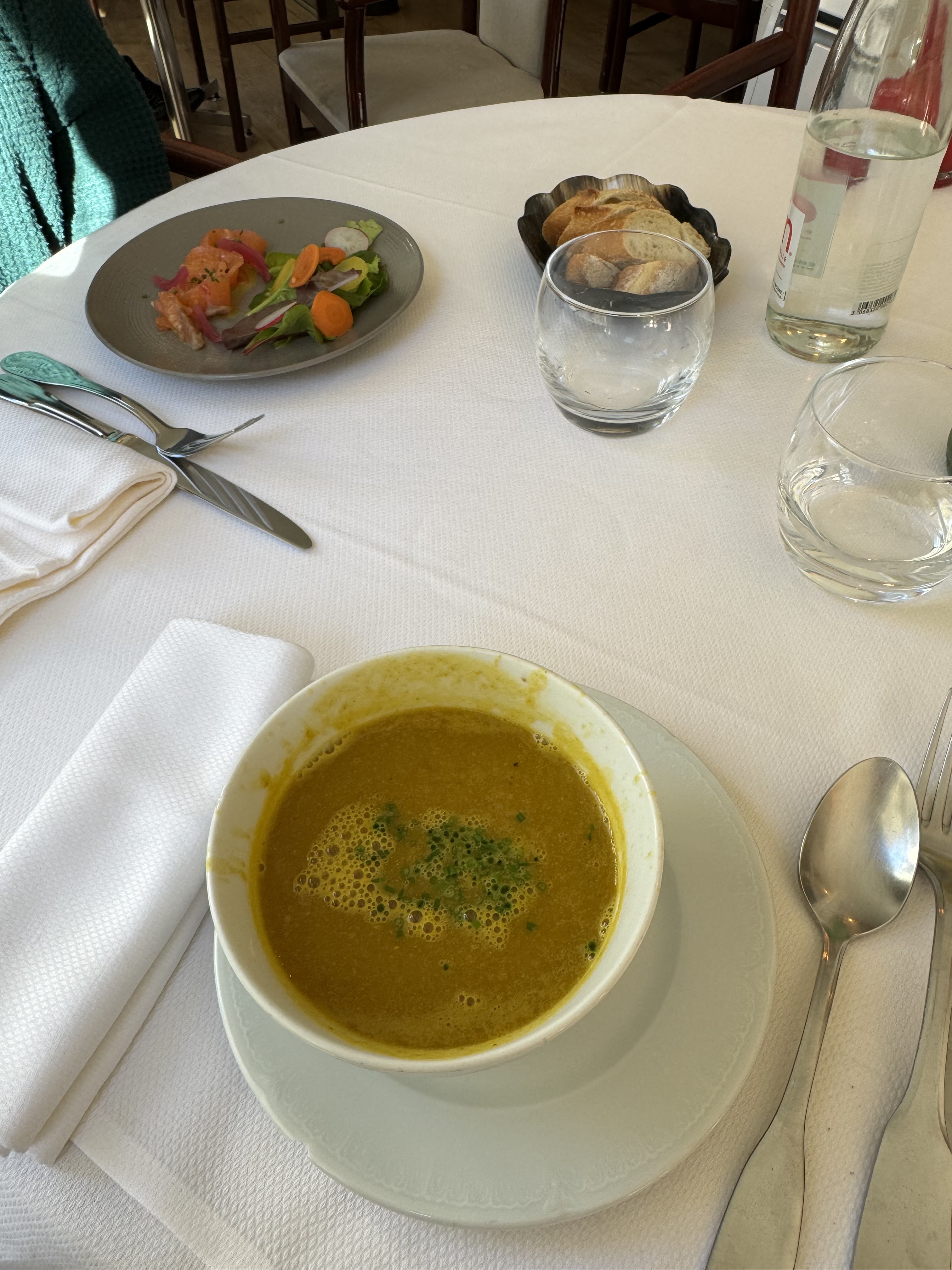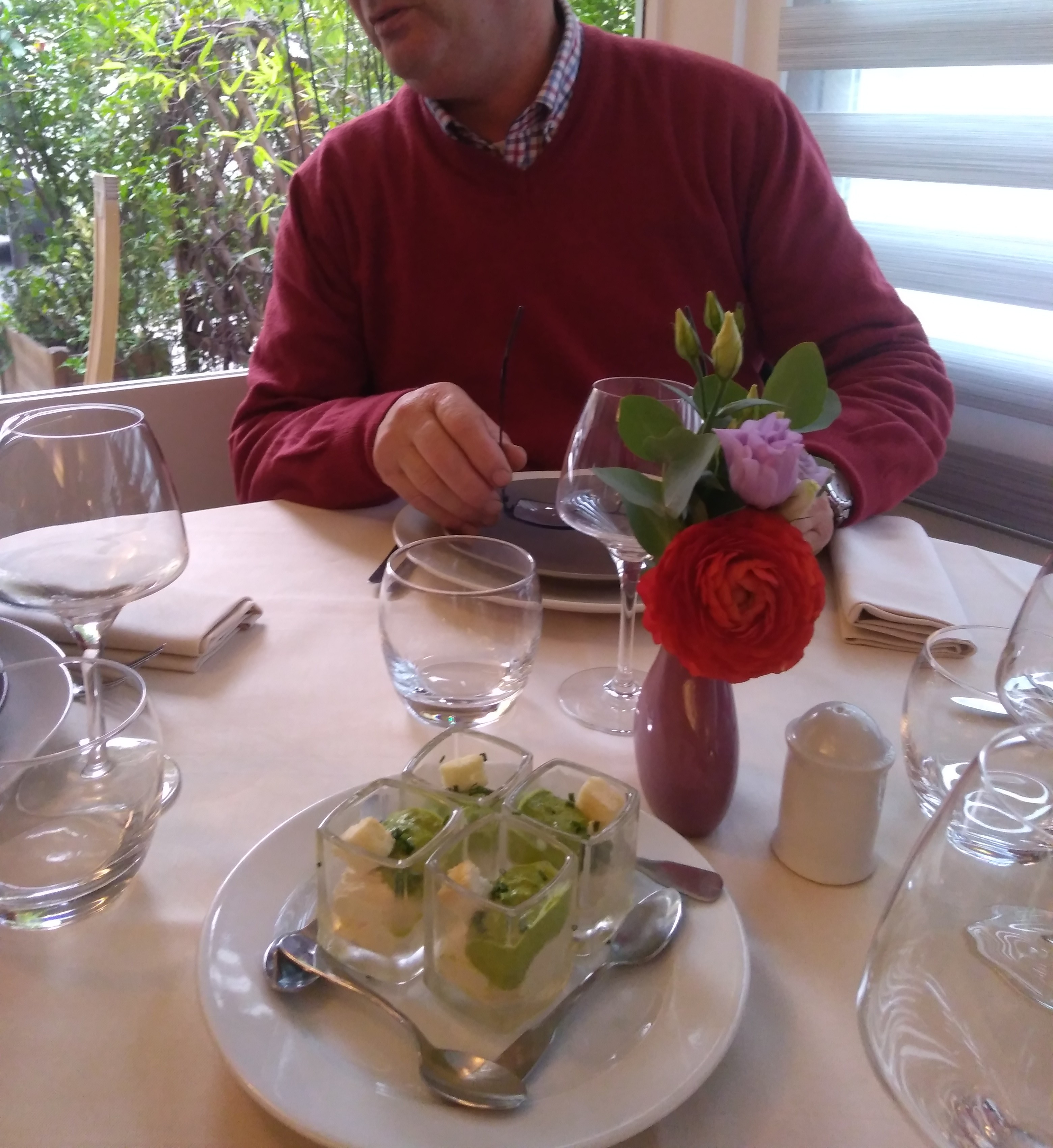 Très bien mangé: produits de qualité et cuisine excellente, vin parfait pour l'accompagnement des plats, et super attentif aux restrictions alimentaires (le plat commandé a été adapté en conséquence, c'est rare!)