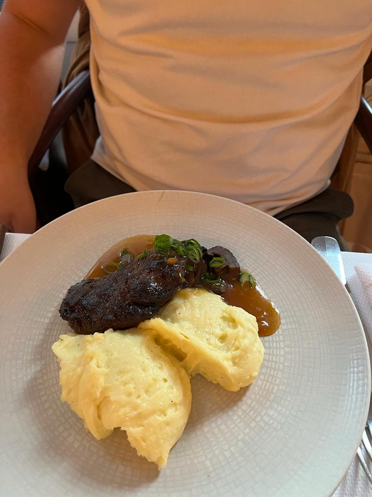 Accueil chaleureux ! Nous avons choisi le bœuf bourguignon qui nous assure un retour en enfance tellement il est magnifiquement exécuté ! Nous y retournerons avec grand plaisir! Expérience culinaire qui mérite d’être vécue !