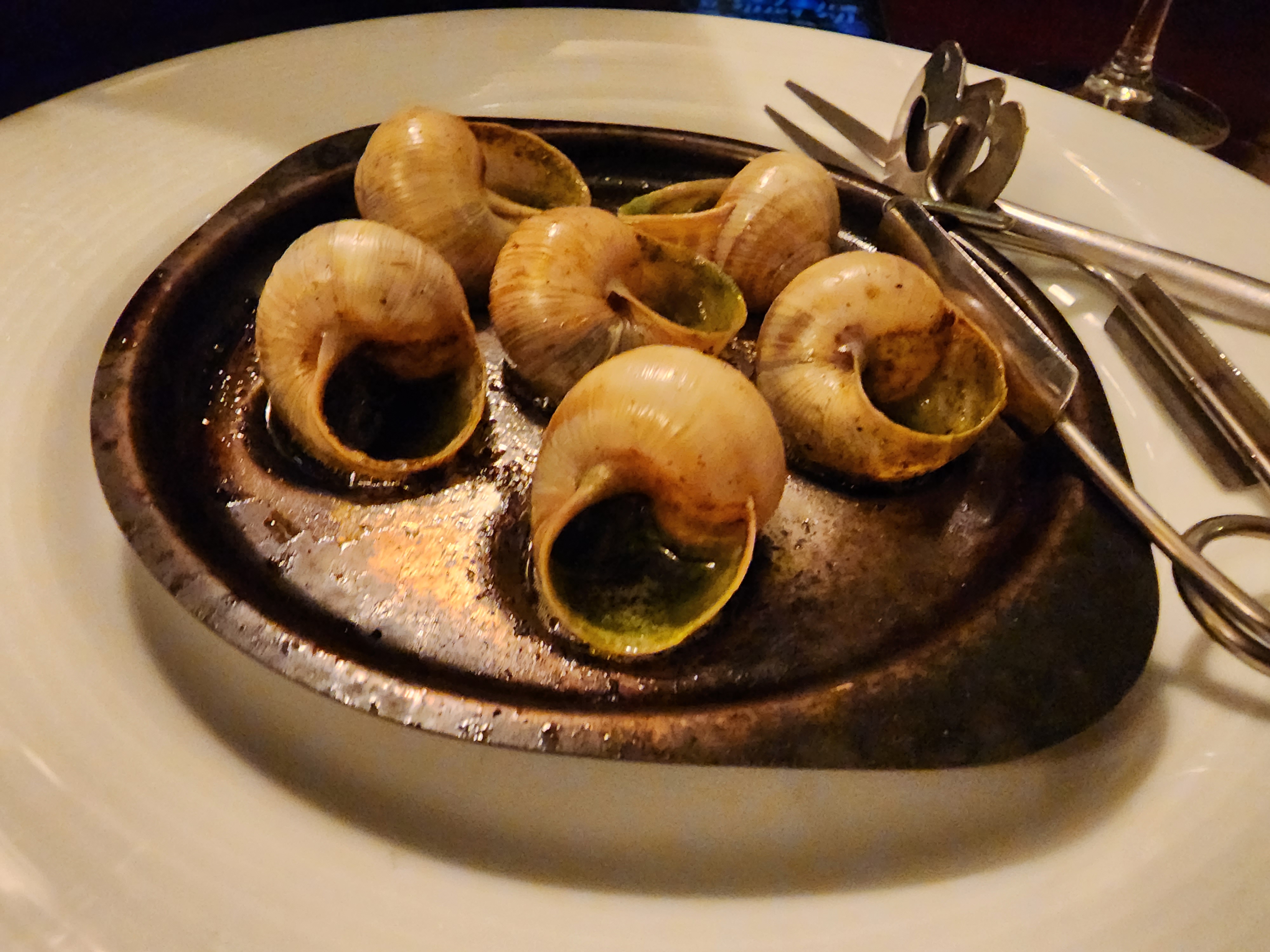 Qualité alimentaire moyenne dans une ville qui possède une cuisine exceptionnelle. Escargot commandé. Reçu un plat avec 6 coquilles. 3 coquilles n'avaient pas d'escargots. On nous a apporté deux coquilles supplémentaires avec des escargots. Mon mari a commandé un plat principal de linguine coque st jaques. Il avait 4 petites coquilles Saint-Jacques dans une assiette chargée de linguines lourdes. J'ai commandé des hachis parmentier végétariens - 3/4 du plat était de la purée de pommes de terre. Les légumes étaient des poivrons rouges et verts et des carottes finement hachés. C'était bon. Plat garni de purée de pomme de terre. C'était notre deuxième dîner ici la semaine dernière. Nous prendrons à nouveau une pause de plusieurs mois avant de dîner ici.