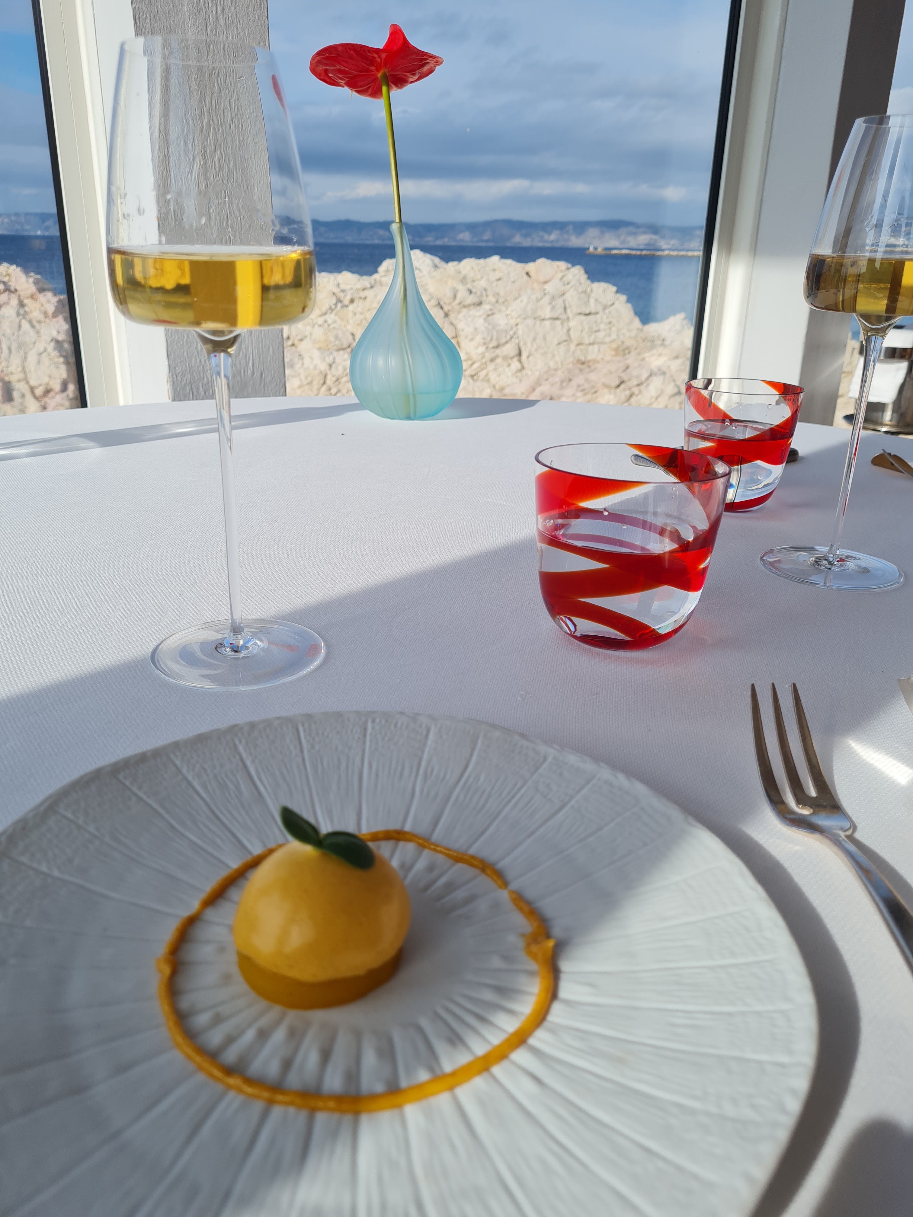 Magnifique déjeuner avec une vue très agréable sur la mer. La cuisine est de haut vol, les mets sont délicatement cuisinés - très fins, les sauces (Saint-Jacques, Homard) sont juste délicieuses (avec un petit goût de « trop peu »!). Le cadre est lumineux par ses grandes baies vitrées, les tables bien espacées et le service est très attentionné. Table étoilée incontournable à Marseille. J’y retournerai volontiers !