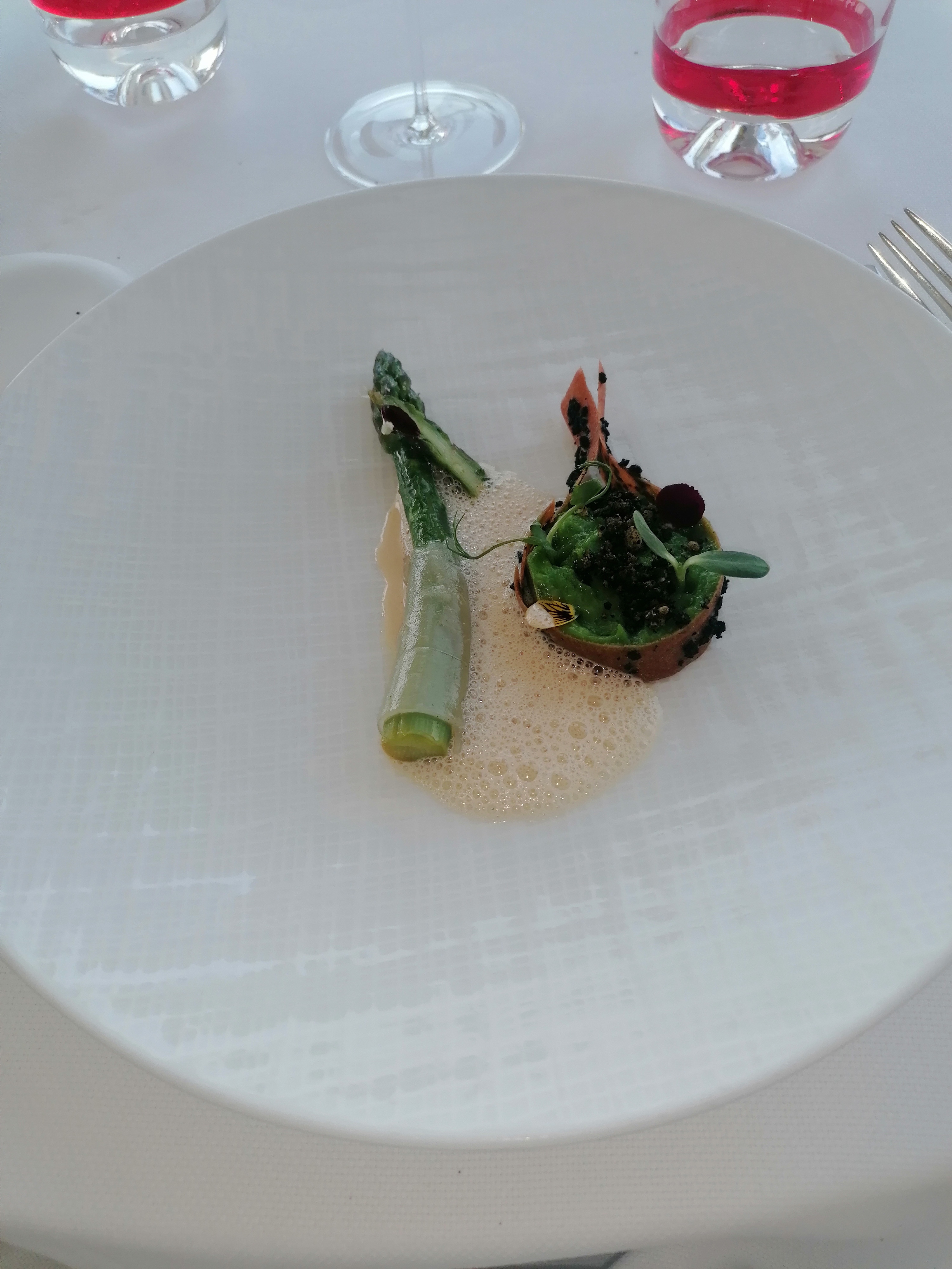 Magnifique restaurant avec une vue à couper le souffle. Une expérience culinaire de fou, on s'est régalé et on a voyagé aussi.. Le poivre de Côte d'Ivoire, la crevette du golf de gènes, le fenouil rôti dans un barbecue japonais..... Et local aussi avec du loup de méditerranée, de l'asperge du. Pays Axois.... Etc le service fut excellent avec une mention spéciale pour le sommelier qui nous a partagé sa passion et nous a fait découvrir un très bon Saint Veran mais aussi deux rhums exceptionnel, un rhum de melasse et un rhum agricole pour finir sur un cidre de glace qui nous a surpris. Encore bravo !!!