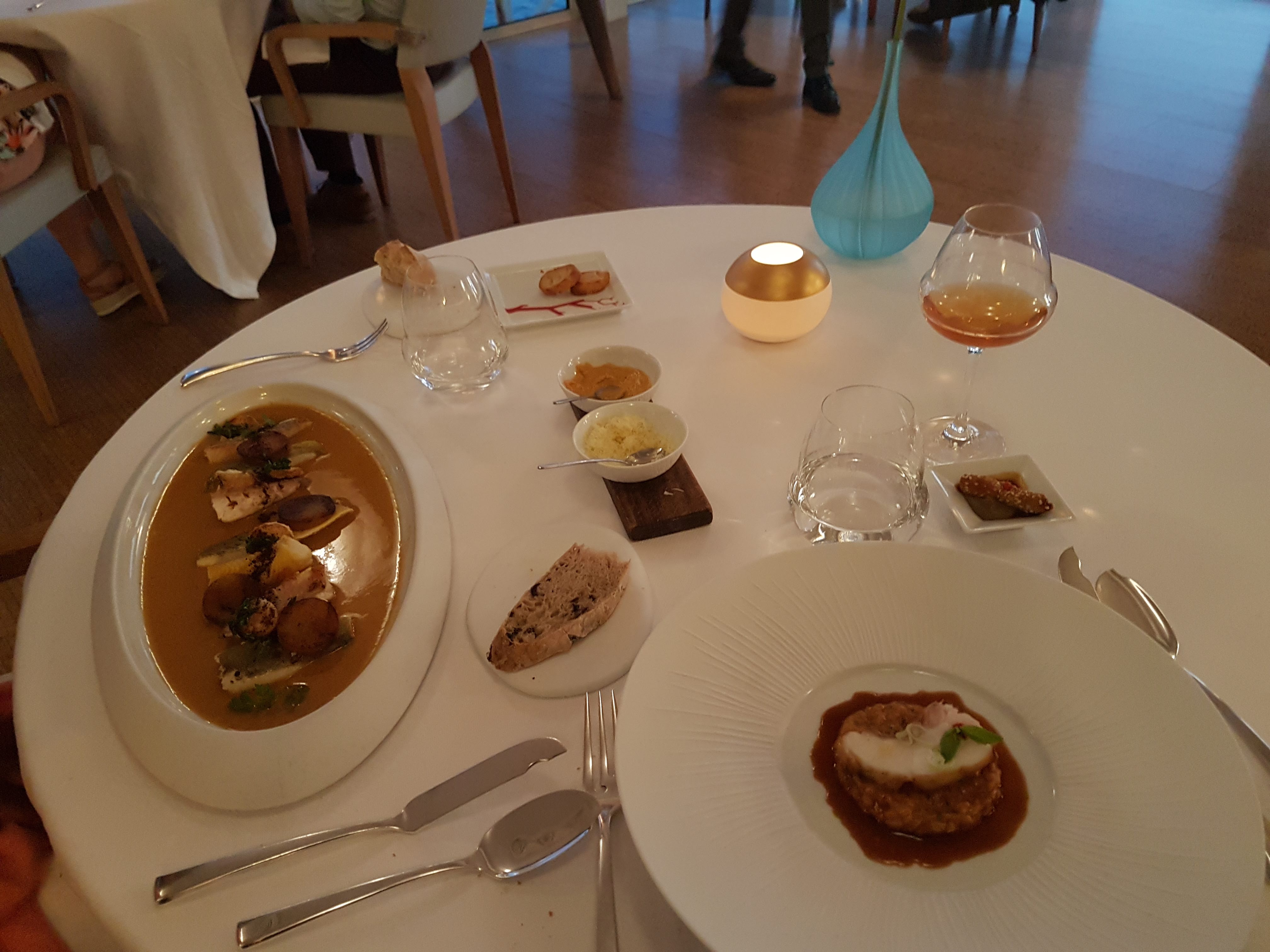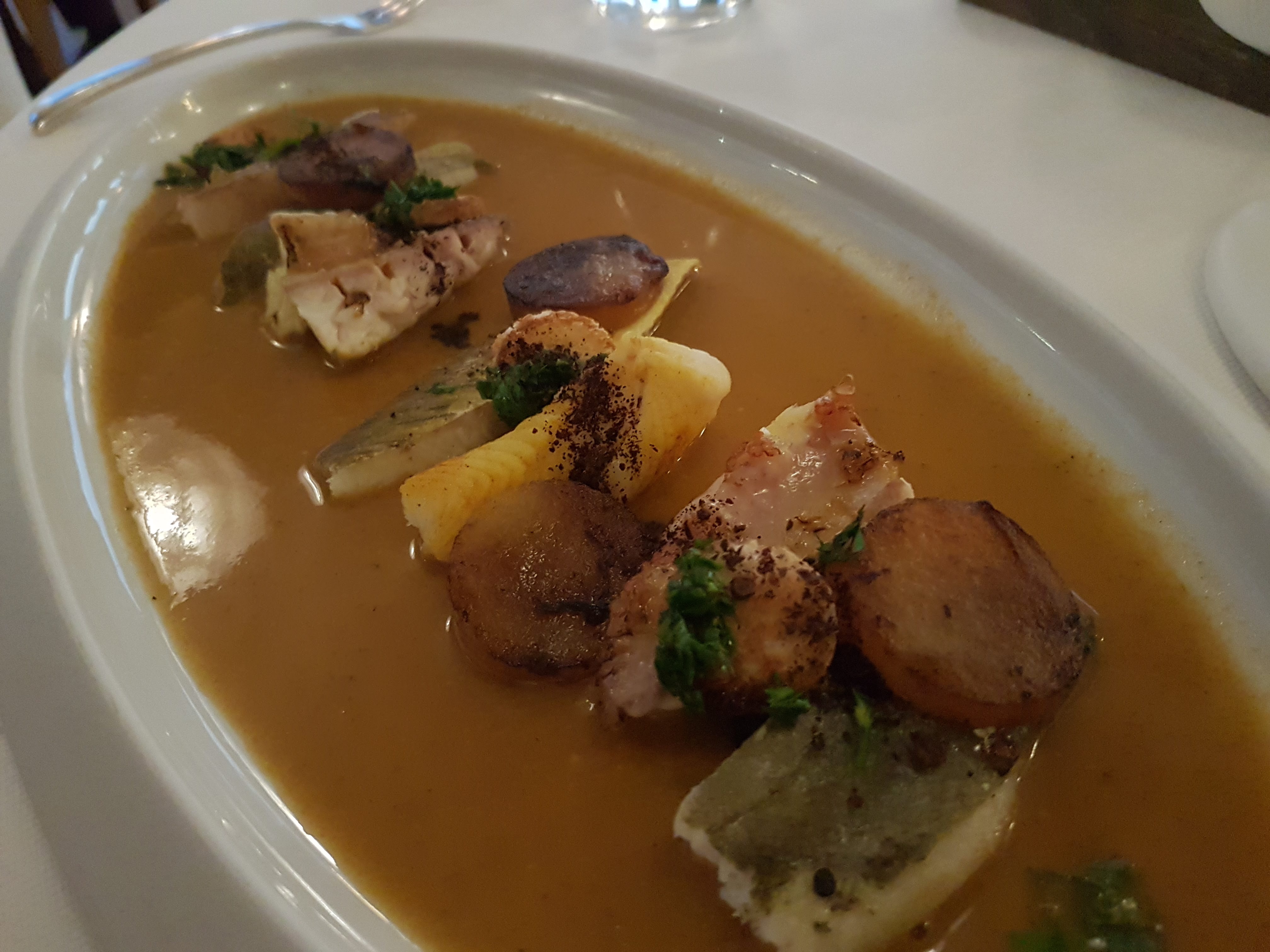 Très déçue, il nous a été présenté la bouillabaisse comme plat signature, et bien pour ma part je fais aussi bien la soupe de poissons de roche avec Thermomix et les produits de mon poissonnier... Des quarts de filets de poisson certes nobles agrémentés d'un sauce faite avec la réduction de soupe et rouille, quelques chips de pommes de terre, bref, très loin d'être au niveau attendu et des autres tables étoilées qu'il m'ait été donné de frequenter...
