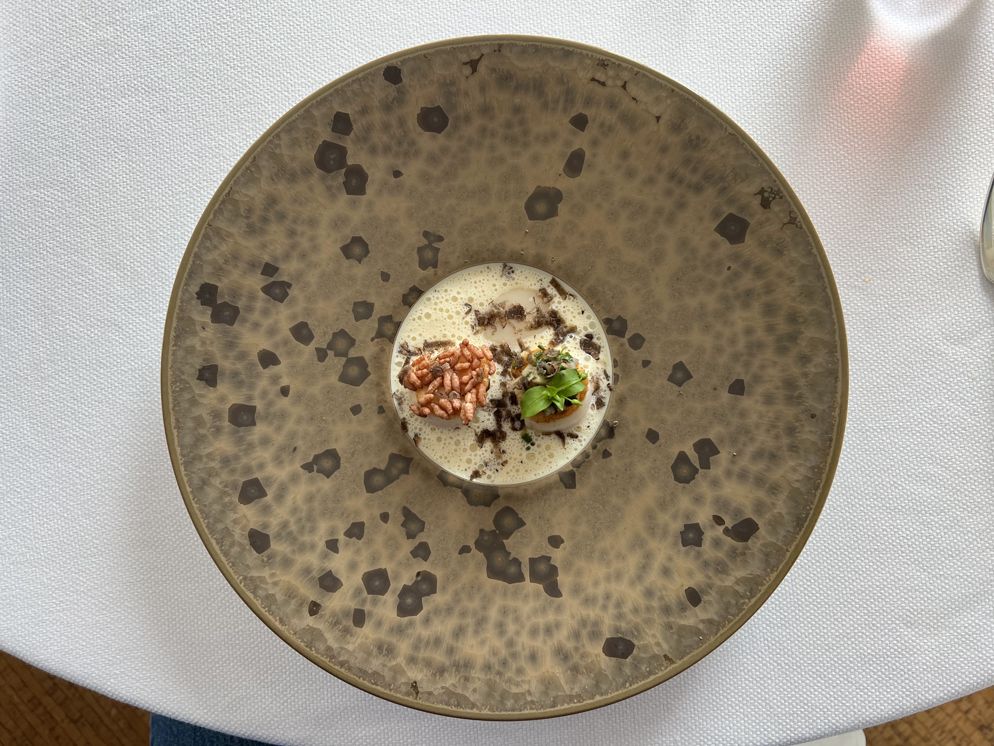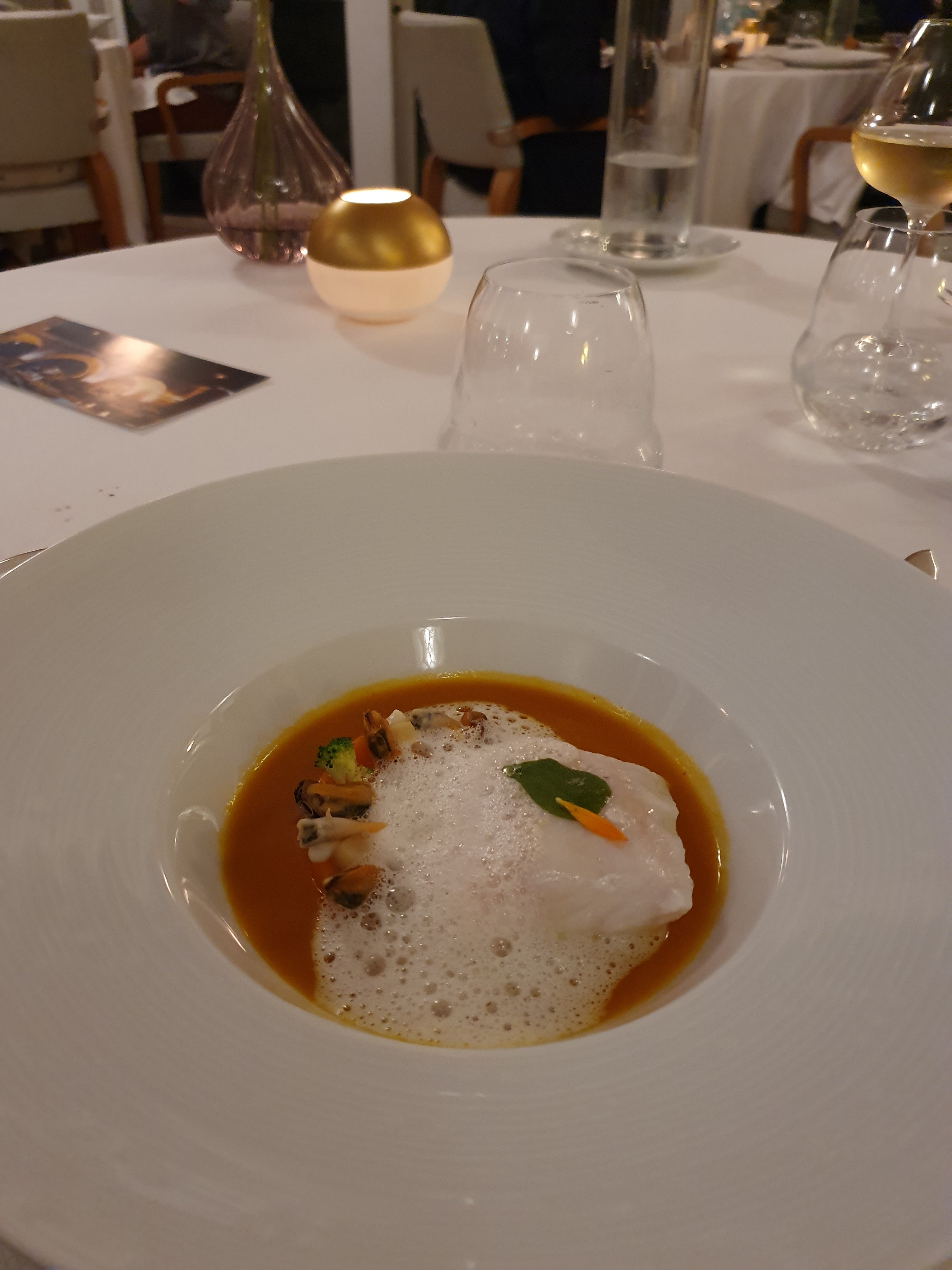 Mes compliments au chef pour ce menu pleins de saveurs et clairement digne d’un restaurant étoilé (pourrait être au niveau d’un restaurant 2 étoiles à mes yeux). Les portions étaient très bien pensées pour une agréable sensation post repas (la petite balade digestive sur le bord de mer était très appréciable). Nous avons également apprécié les suggestions du sommelier, discret et de bons conseils - une présence tres agréable pour nous accompagner sur un tel dinner. Concernant le service, nous l’avons trouvé juste moyen : le service était très present (ce qui est une bonne et une mauvaise chose selon les moments). Le contact client était assez fermé et prétentieux, c’est dommage (et inutile). Les repas se doivent en effet d’être cadencés mais nous nous sommes sentis un peu bousculés (particulièrement en début de repas).