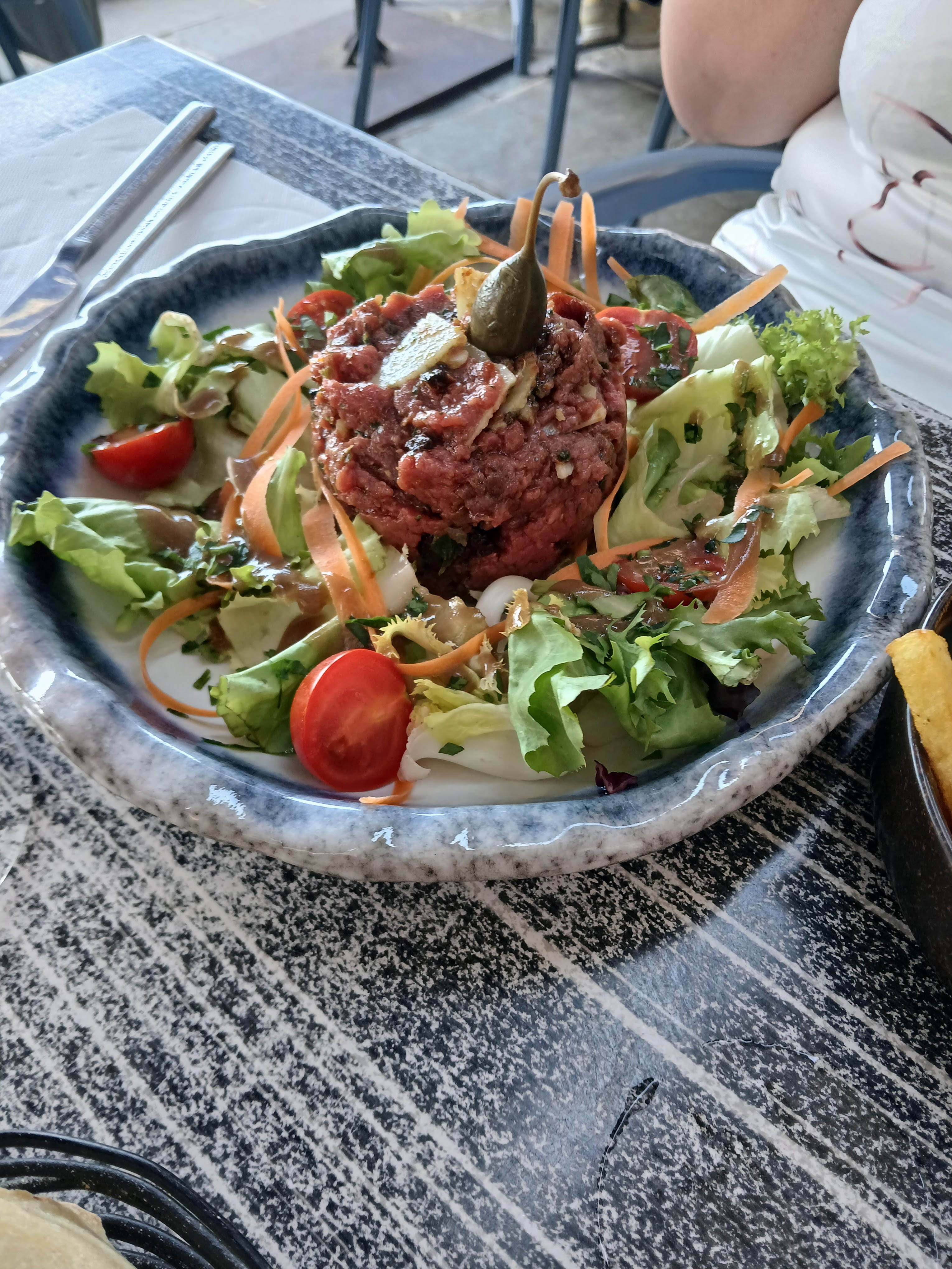 Excellent rapport qualité plaisir,pour des plats Aux environs de 20 euros. Équipe très sympa avec un service efficace. Bon chef au goût sûre en ciisine. L'objectif clair de l'equipe est la satisfaction du Client même en pleine saison. Tartare,viandes,poulpes,et accompagnement Tout est bon. Bravo et merci pour le petit digestif offert.