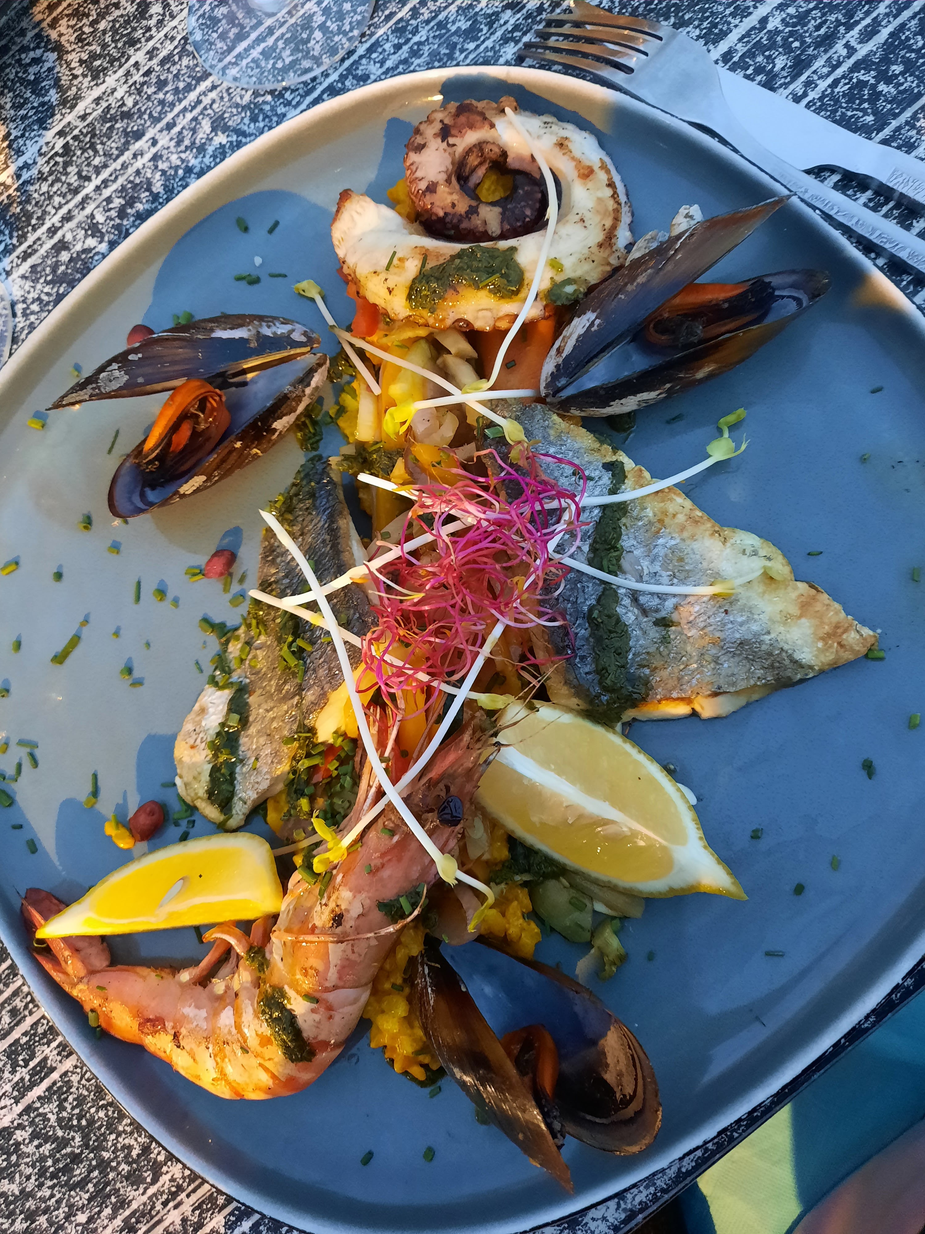 Restaurant très sympa pour un dîner au coucher du soleil en bord de mer, excellent repas, service au top et en prime un verre offert par le patron !