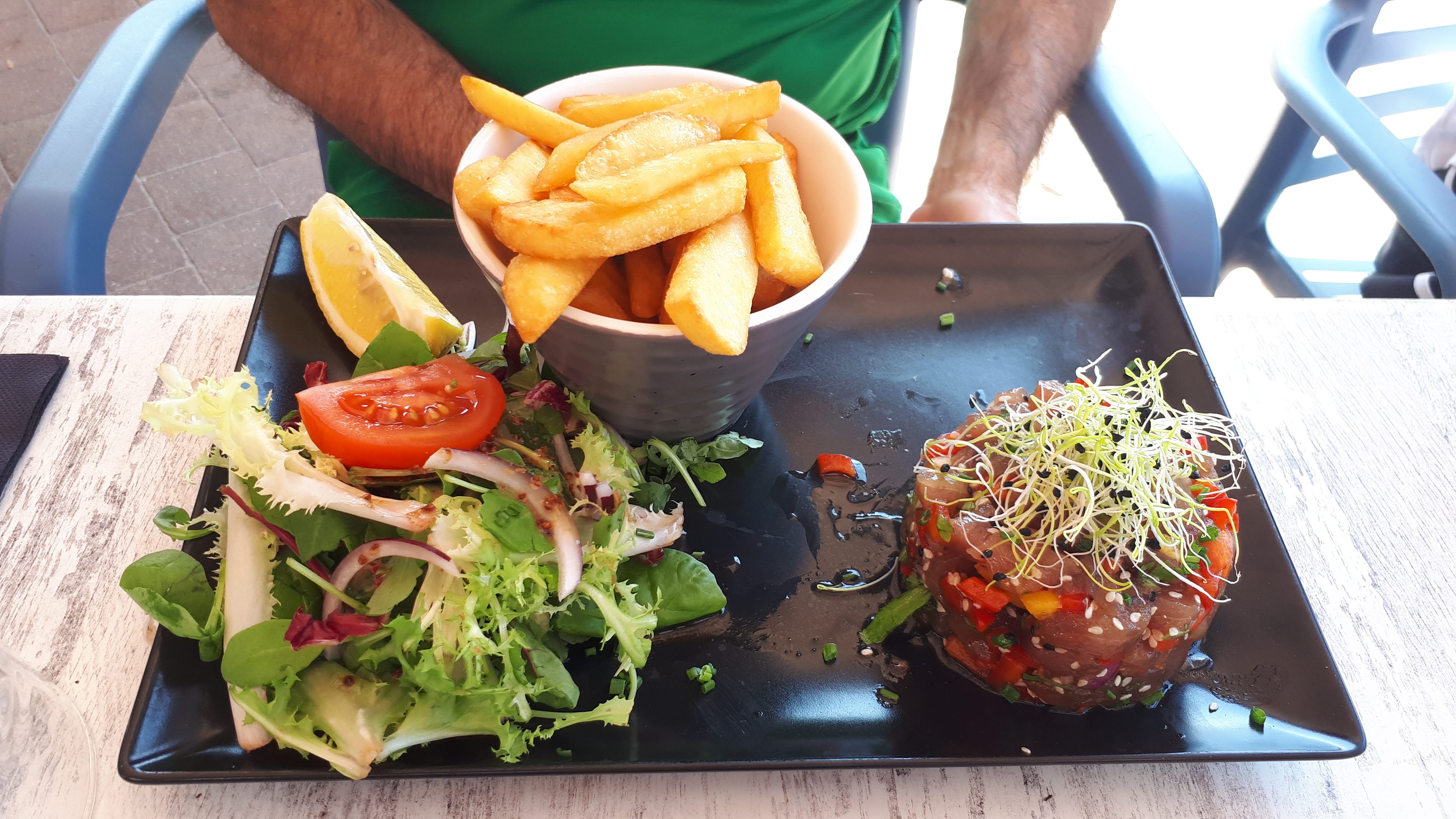 Un resto presque en bord de plage, mais on voit très bien la mer. La déco n'est pas top mais le personnel est accueillant et le service rapide. Mon hamburger de thon était très bon même si j'ai trouvé le pain un peu sec. Pour les prix bon ben c'est un peu cher comme un resto avec vue mer , ni plus ni moins.