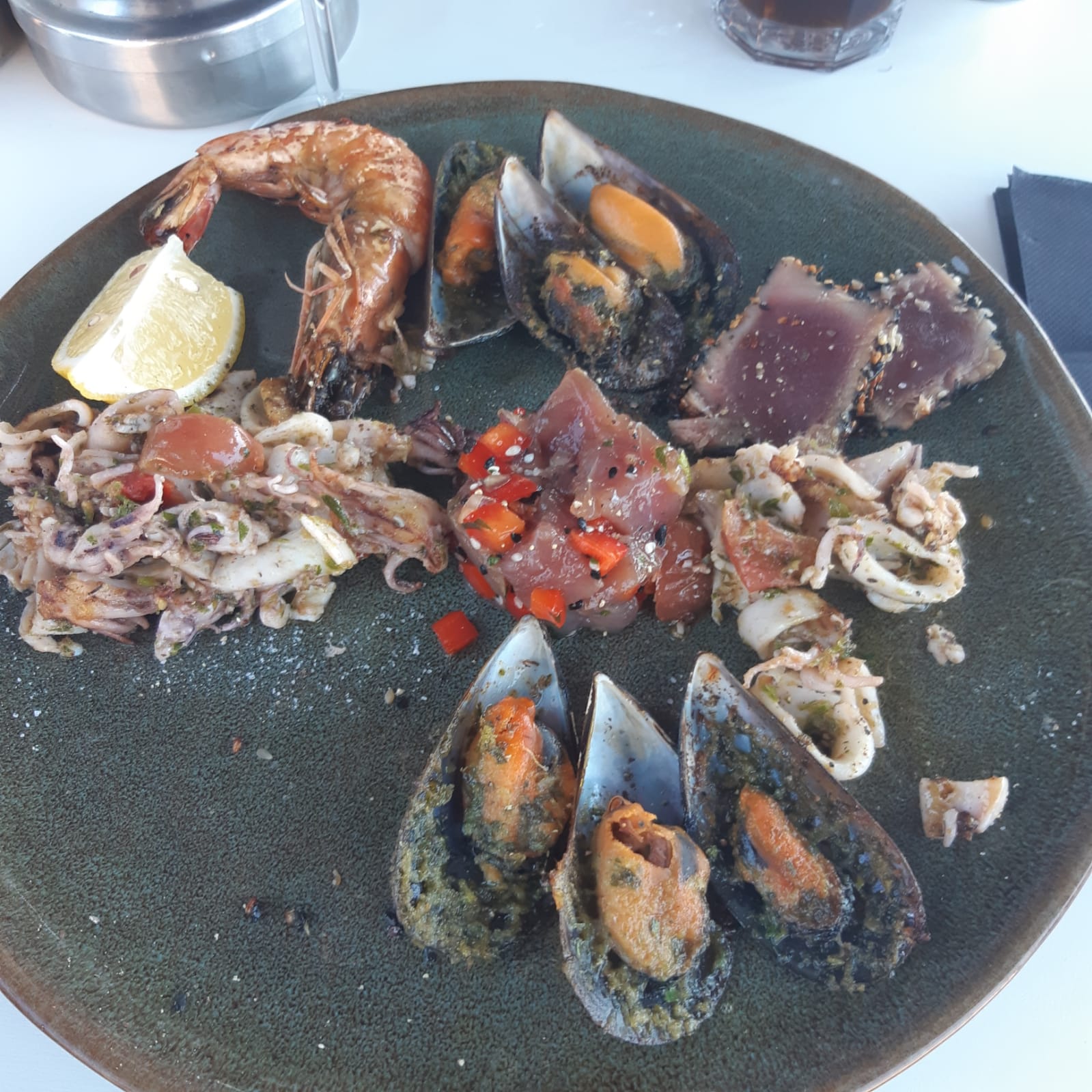 Super restaurant en bord de mer. Assiette de mezzes très bonne. Les moules au curry sont excellentes Et surtout le café gourmand d edt Génial. Le cadre face à la mer est idyllique Je le recommande vivement L'accueil est super sympa et à l'écoute.