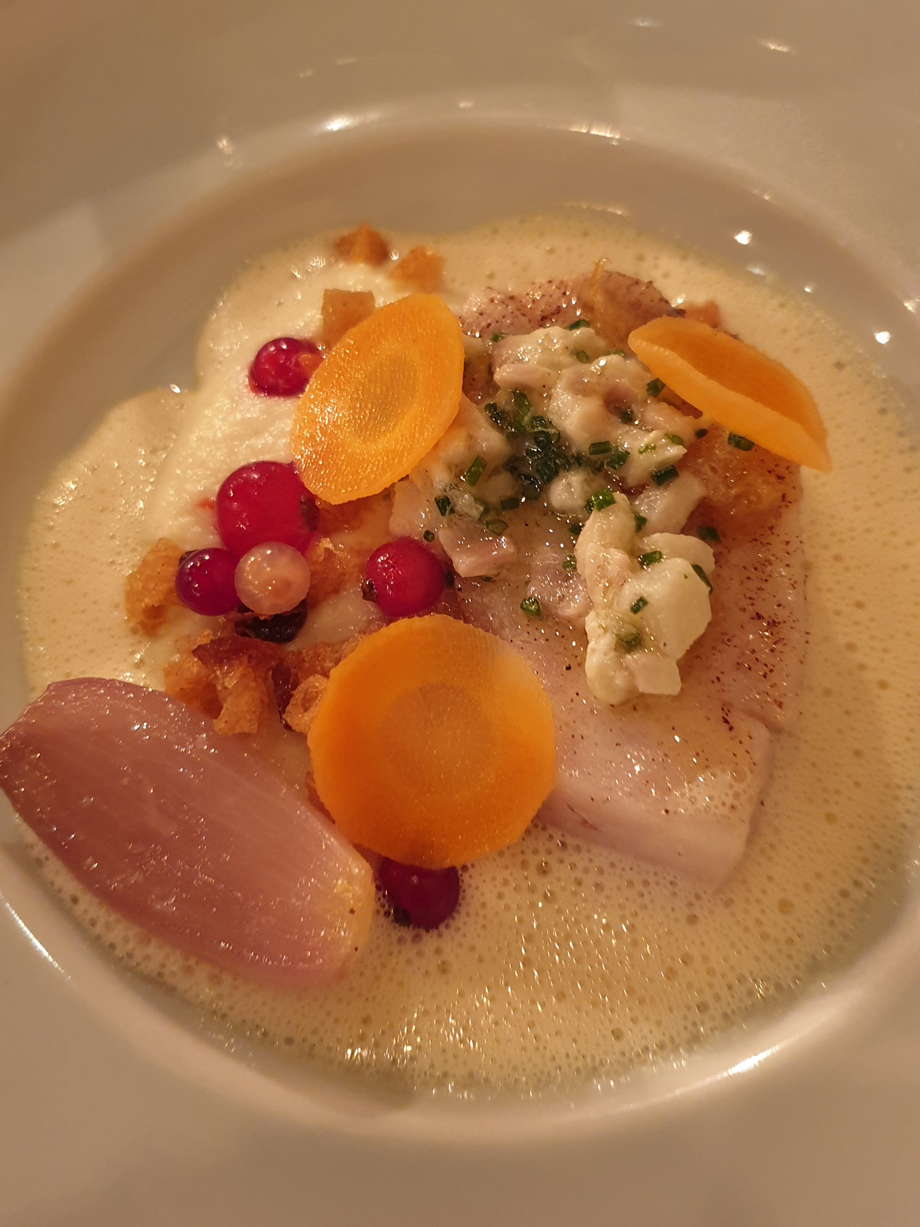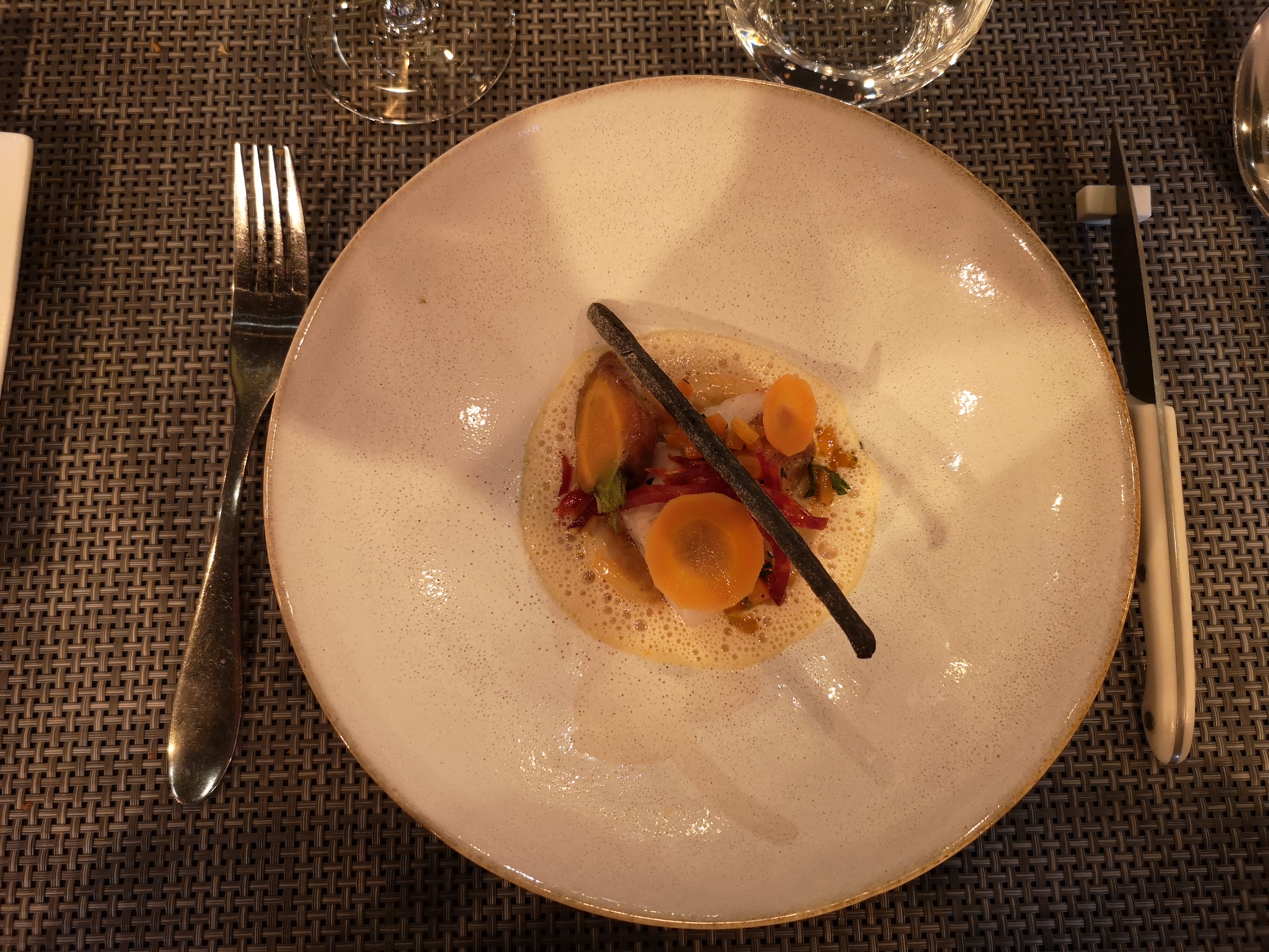 La soirée commençait mal, avec une mauvaise nouvelle personnelle qui plombe le moral une petite heure avant la sortie au restaurant et je dois composer depuis peu avec ce qui semble être une intolérance aux sulfites qui me met en mode « rhume des foins carabiné » à la première gorgée de vin. Donc mauvaise humeur + intolérance qui met en PLS dès l’apéritif, la soirée semblait perdue. Et finalement non ! Contre toute attente, nous avons malgré tout passé un excellent moment. Le service était impeccable. Très professionnel, sympathique, prévenant, à l’écoute de sa clientèle et discret. Bref, parfait. Côté cuisine, c’est le sans faute. Tout, dans le menu dégustation en 6 services, était parfait : les cuissons, les associations de goûts, les assaisonnements, la présentation de chaque plat… Un vrai plaisir. Tout ceci accompagné par une carte des vins est de qualité et des accords choisis pour accompagner le repas qui marchaient très bien. Et très bon point pour le timing et la synchronisation des services des différents plats. Pourtant sur ce point précis, le restaurant se met des bâtons dans les roues en proposant 3 menus avec un nombre de services différents (3 services, 4 services ou 6 services) et surtout en n’imposant pas à la table le même nombre de services pour chaque convive (imposer cela est assez fréquent dans de nombreux établissements proposant ce type de carte). Ici, non seulement la liberté de choix est laissée aux clients malgré les soucis d’organisation que cela peut engendrer, mais en plus tout est admirablement orchestré : le tempo du service était au top, ni trop long, ni trop rapide et le timing de service des plats pour tous les convives malgré des menus différents était excellent. En un mot comme en cent : parfait ! Pour finir, un petit mot sur la salle, joliment décorée avec une vue sur les belles cuisines de l’établissement qui permet de voir le chef et son équipe travailler dans une ambiance certes rigoureuse mais très sereine. Que du positif donc pour ce restaurant gastronomique qui, s’il n’a pas la fameuse étoile aujourd’hui, devrait être un sérieux prétendant au macaron dans les années à venir.