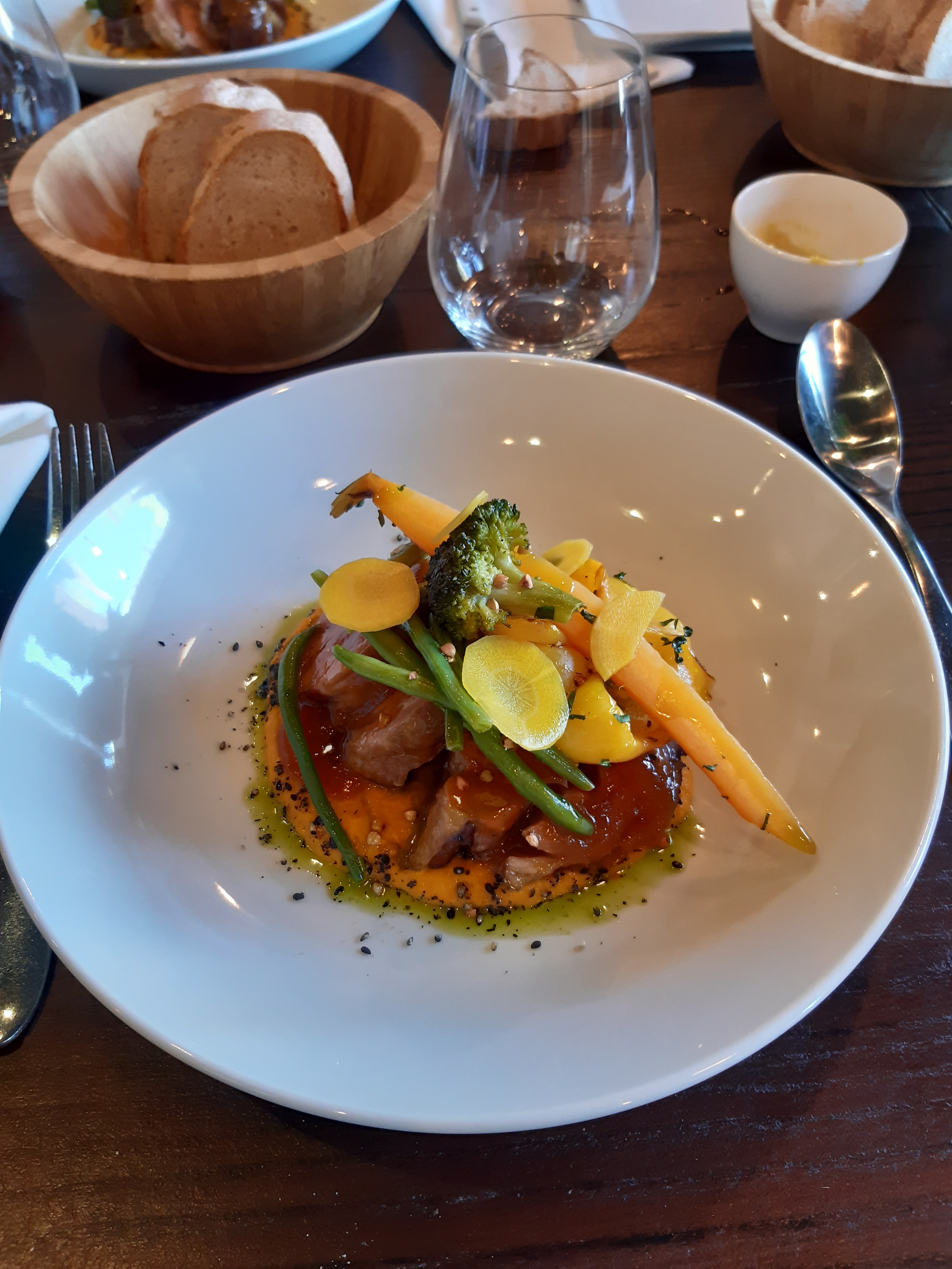 Je me suis régalée, des plats bien travaillés qui ont beaucoup de goût ! Des produits locaux, de saison, assaisonnement parfait. Je remercie l’équipe, très impliquée !