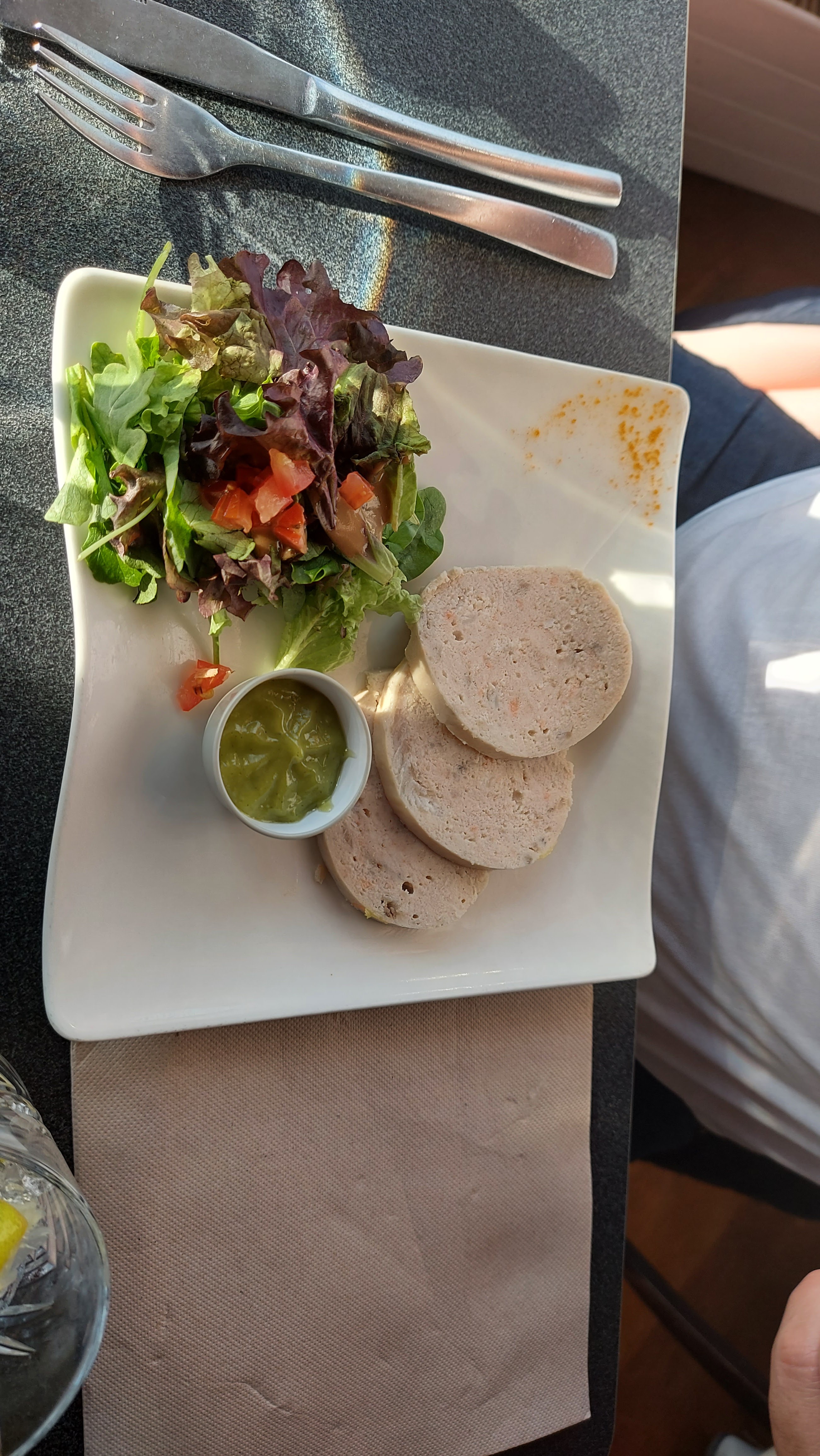 Le repas m'a satisfait mais très gênée par la présence d'un fumeur à la table voisine. 3 cigarettes. Nous étions en terrasse. Et ce n'est pas normal d'être obligé de manger à l'intérieur pour éviter ce désagrément.