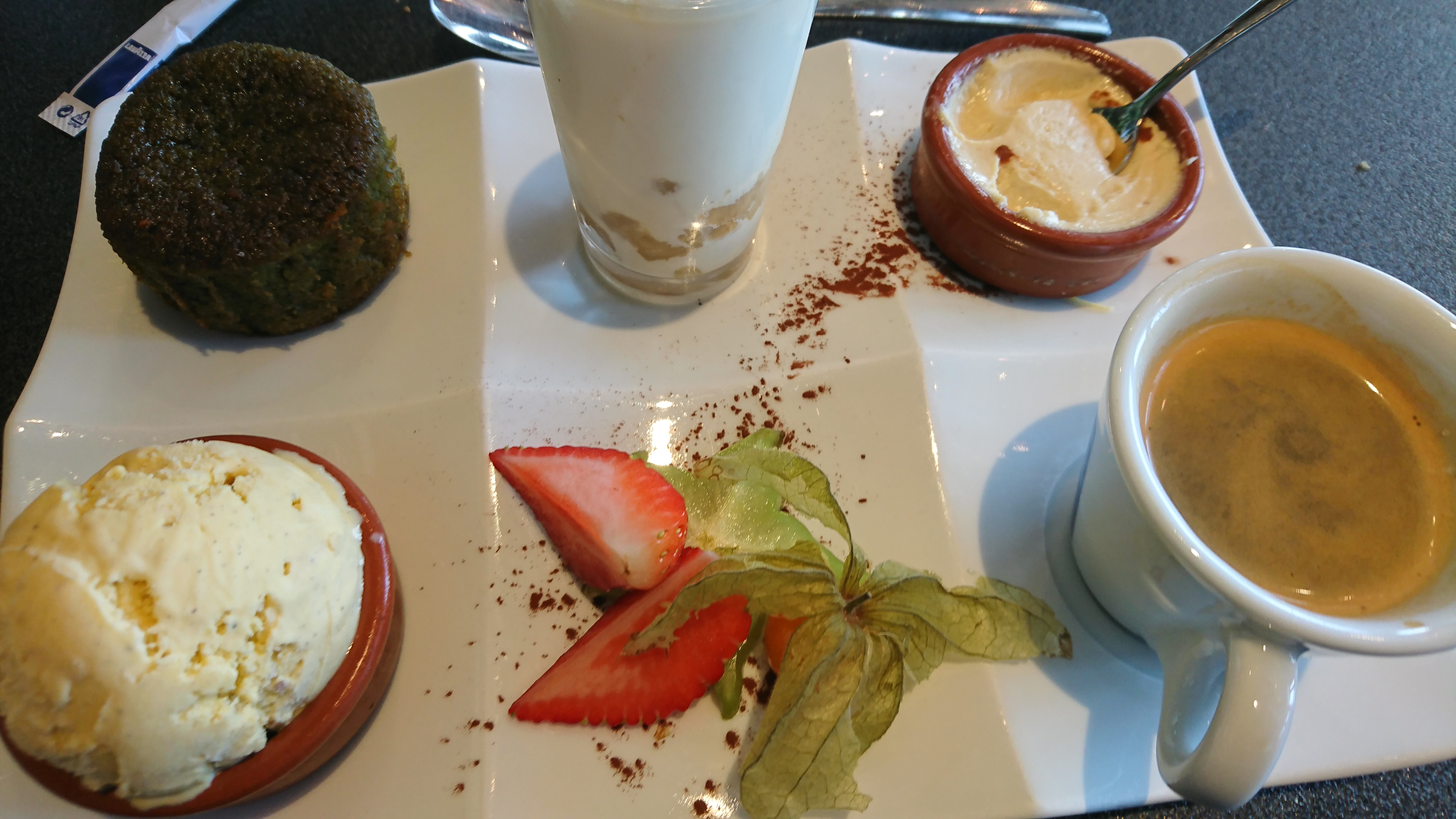 Nous avons très bien mangé et pour une fois moi qui suis gourmande un choix varié de dessert (très bons). Il y une pub pour simplement y boire un verre...... Vraiment soirée très agréable