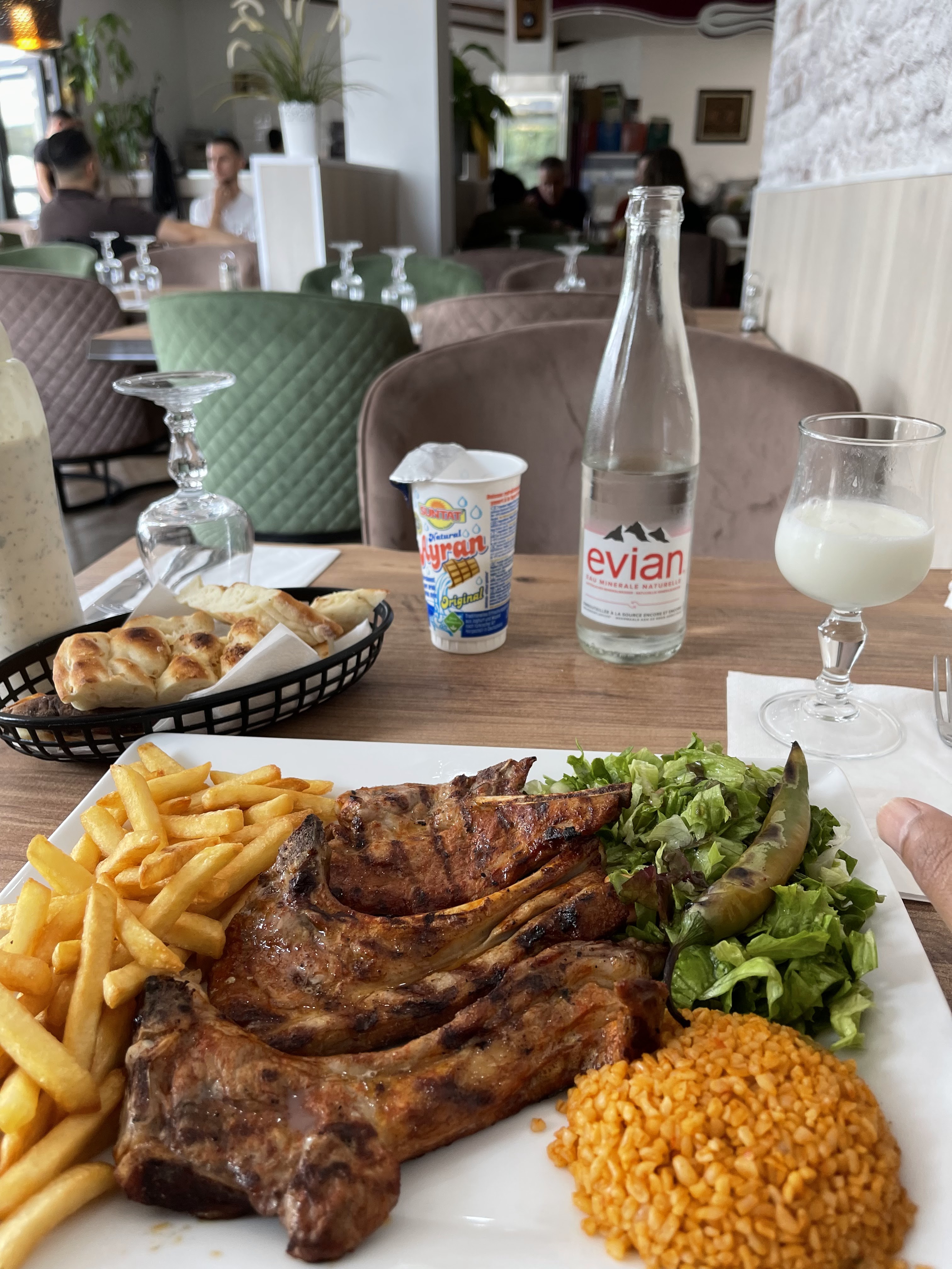 Le restaurant sert de belle portion de nourriture la qualité est au rendez-vous, mais j'ai trouver leur iskender trop gras, pour ce qui est du yaourt au concombre une tuerie. L'escalope à la crème était servis avec du riz et des frites. La sauces était Bonne mais comme l'iskender très grâce. Pour ce qui est des meze rien à dire délicieux. Le prix est abordable et la service sympathique. Je dirais que je n'est pas apprécié le regard lourd d'un groupe d'habituer mais cela ne dépend pas du restaurant. Enfin le repas à été conclu par un thé turc offert une bonne surprise. 😸 Je reviendrai sûrement mais plutôt en hiver.