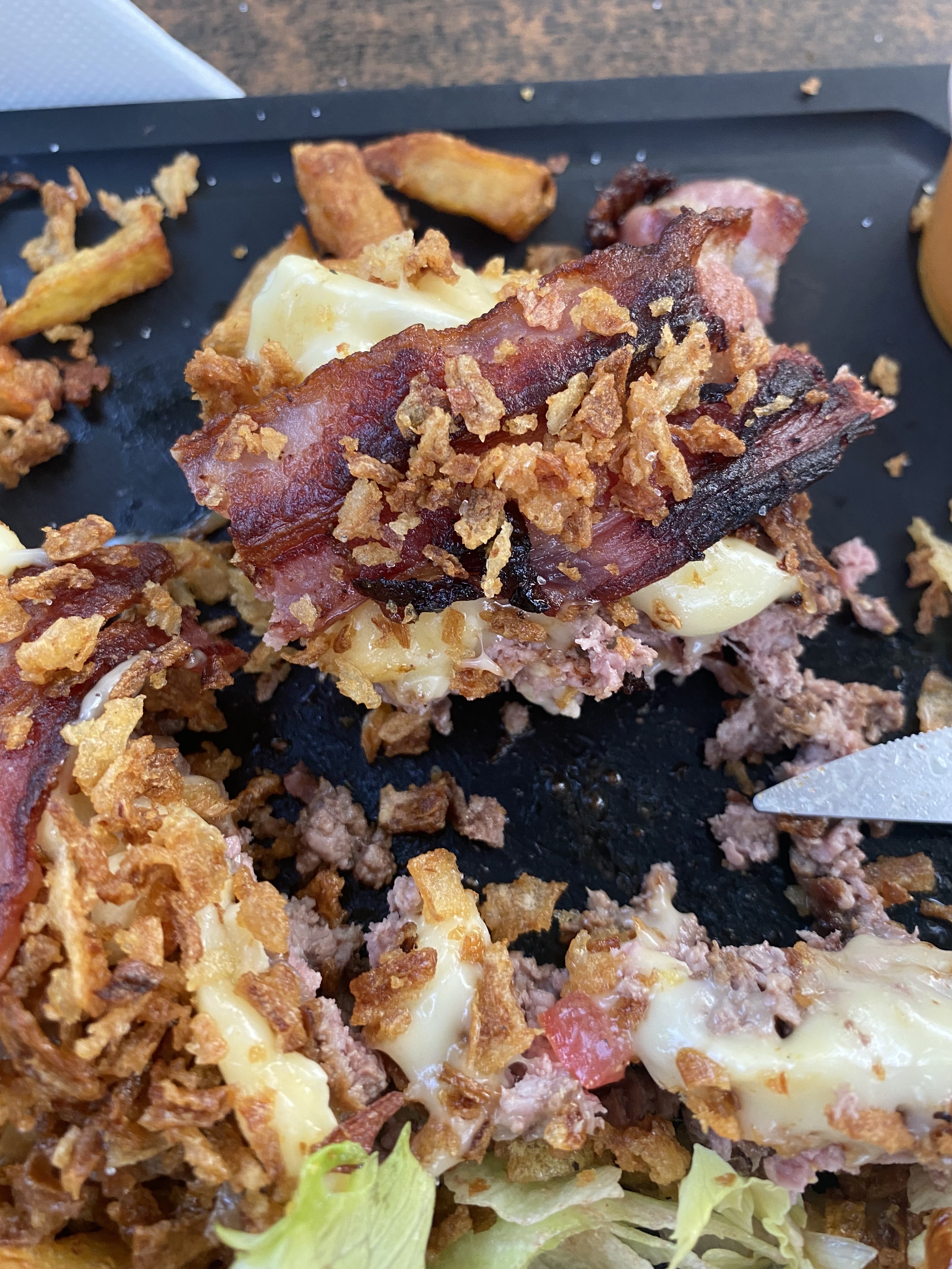 Très bon hamburger avec un vrai Steak haché goûteux et bien épais une sauce hummm et du maroilles ,un régal...les frites faîtes avec de vraies pdt... je recommande !
