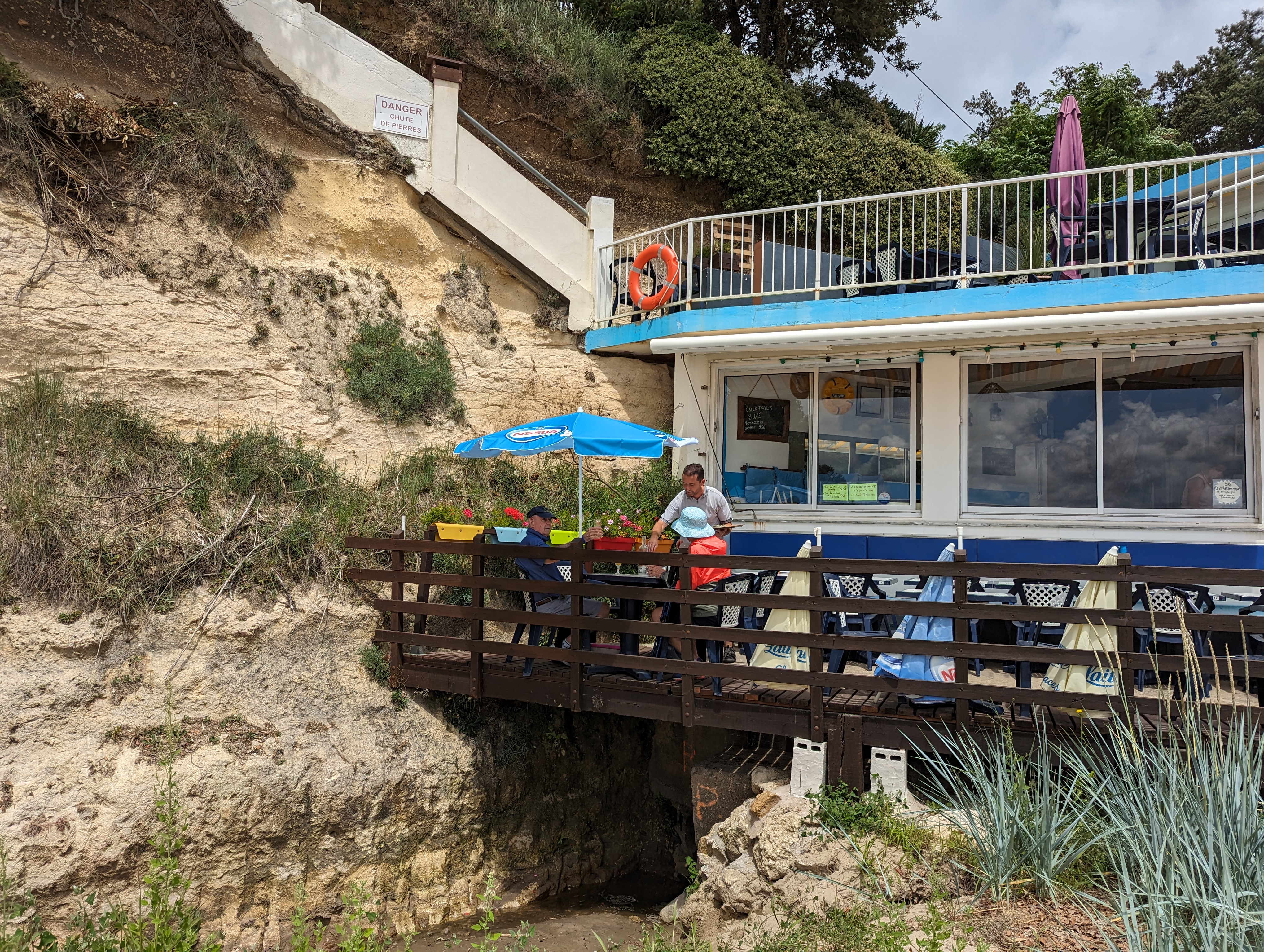 Un endroit très bien situé, au pied de la plage et des falaises. Cela se sent sur les tarifs (1 perrier + 1 fraise à l'eau pour 6.50). CB non acceptée, prévoir du cash 😊