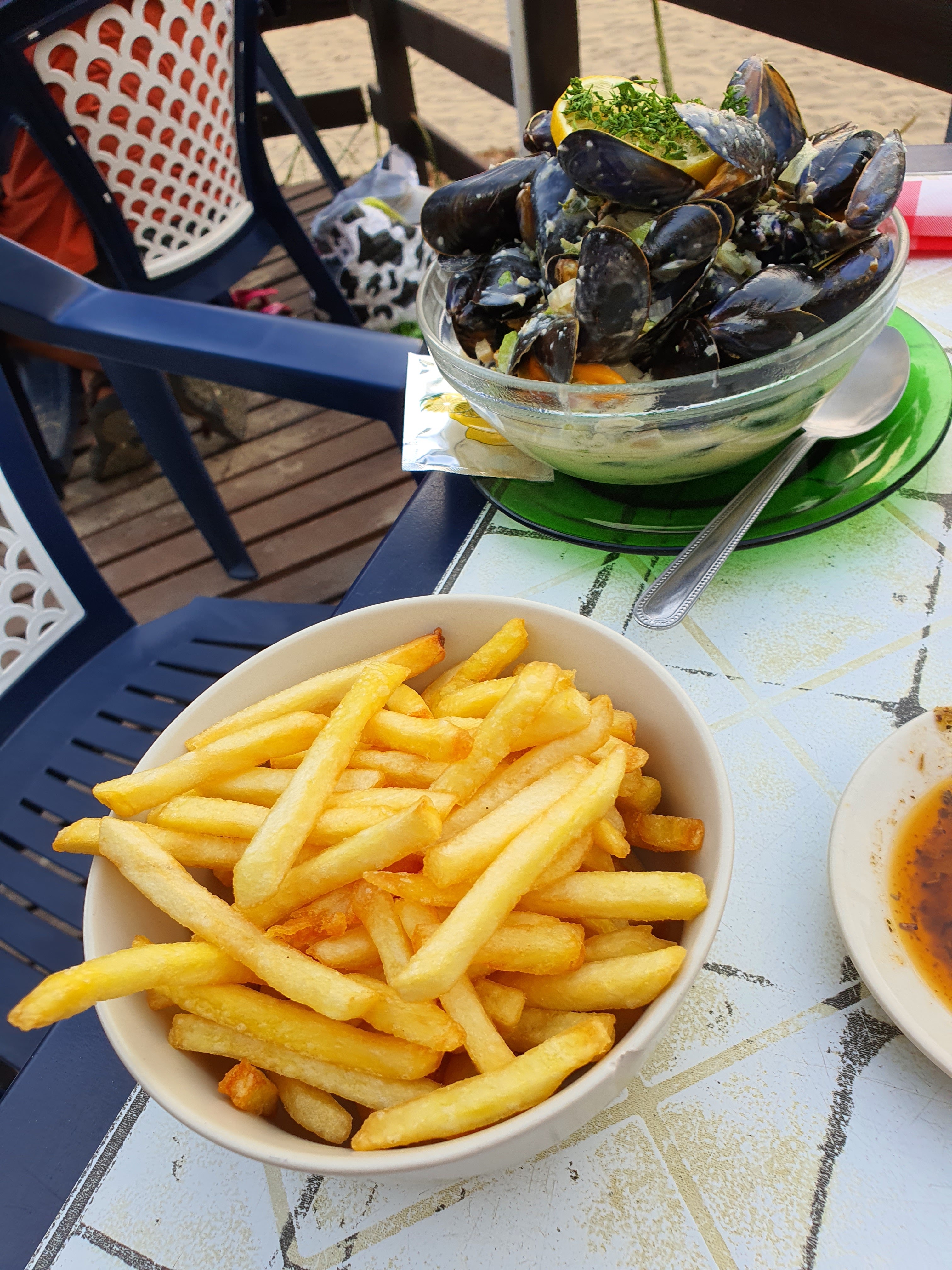 Bon moment avec le beau temps et des moules fri