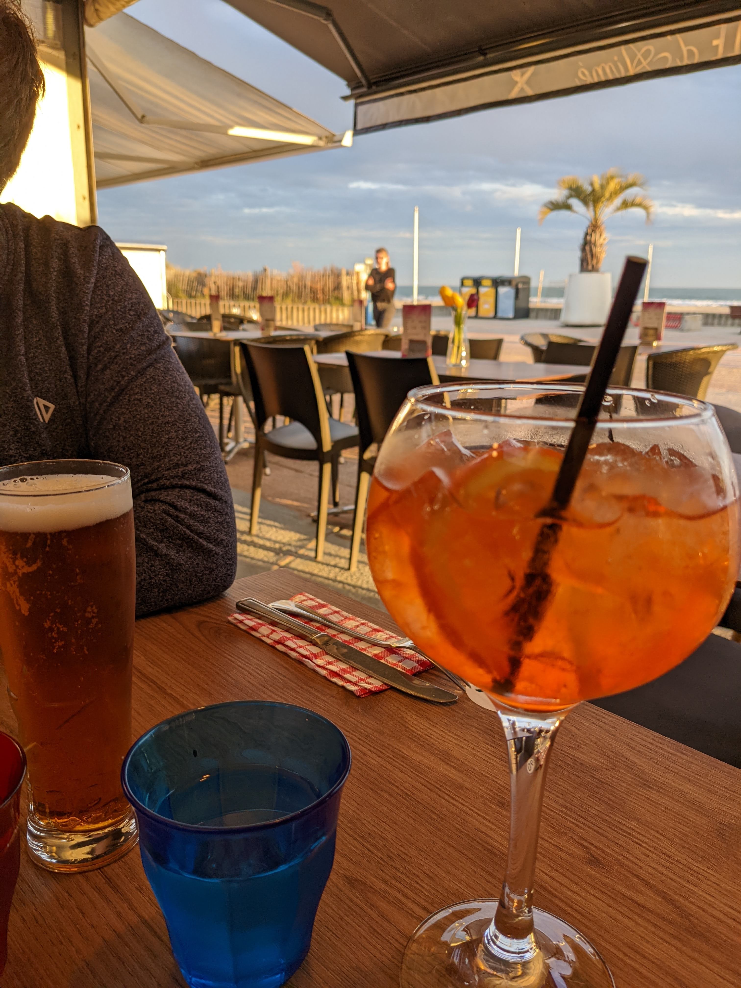 Restaurant avec une vue sur la mer, en apéritif un petit spritz aperol, un peu cher mais plutôt bon quand même, en repas un Hamburger très copieux accompagné d'une petite salade coslaw très bonne et fraîche et de frites surgelés, je trouve cela un peu dommage d'en servir encore alors qu'il est simple d'en faire maison. Mais dans l'ensemble c'était bon. Le personnel est sympathique. Une dernière chose qui été dérangeant c'était le manque de menu en papier tout été affiché sur des pancartes et difficile à voir mais ce n'est qu'un petit détail qui devrait se rectifier. Merci a la serveuse pour son sourire et son service qui était au top et très pro.