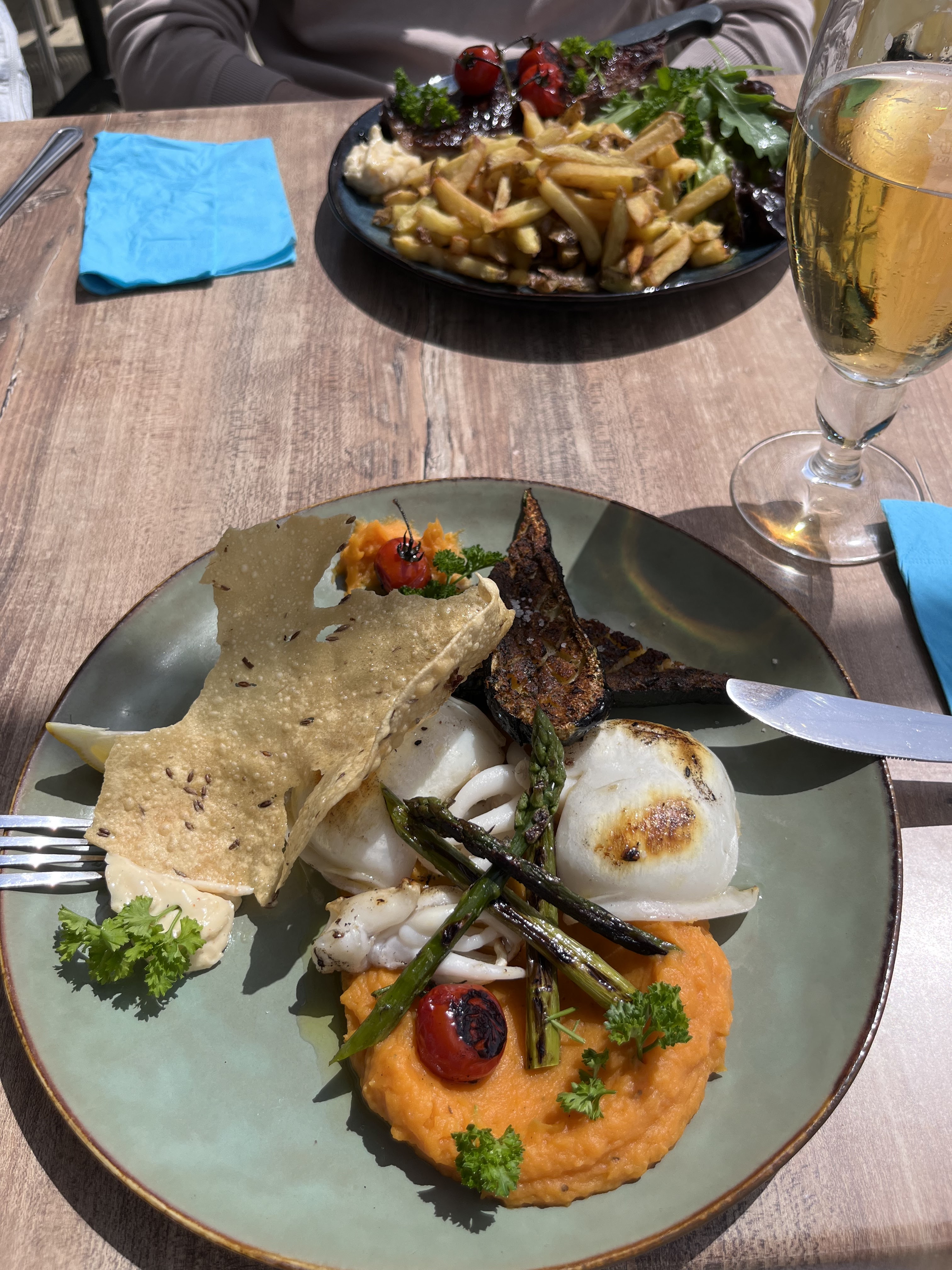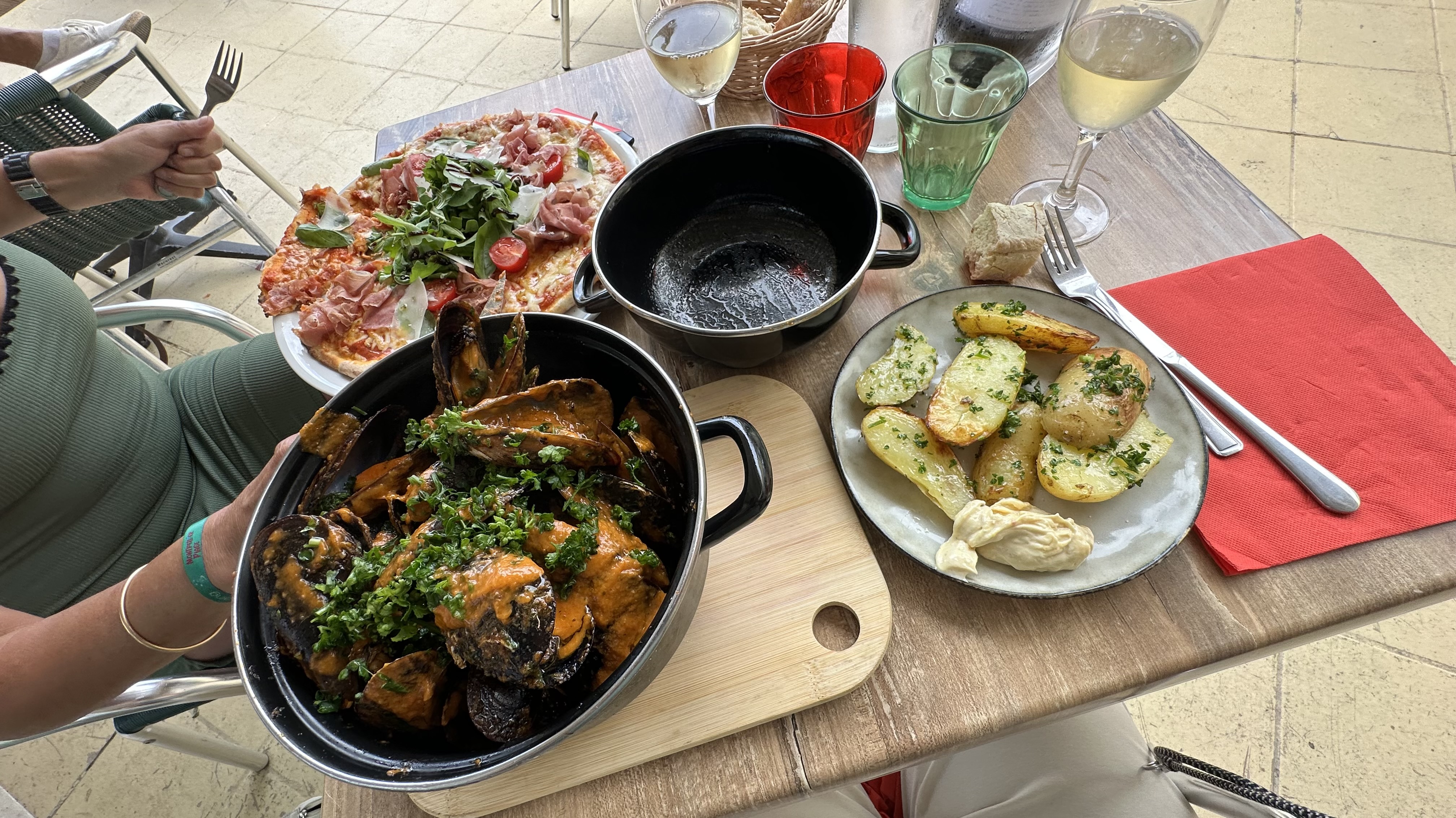 Cuisine décevante, moules plus ou moins cuite infesté de barbe. Cuisson des viandes médiocre. Verre sales, pas de carafe d'eau, pain, sel sur la table, à réclamer. Cuisinier pas très clair , fumant et buvant à l'entrée de la cuisine. Dommage car le cadre est jolie mais je ne recommande pas.