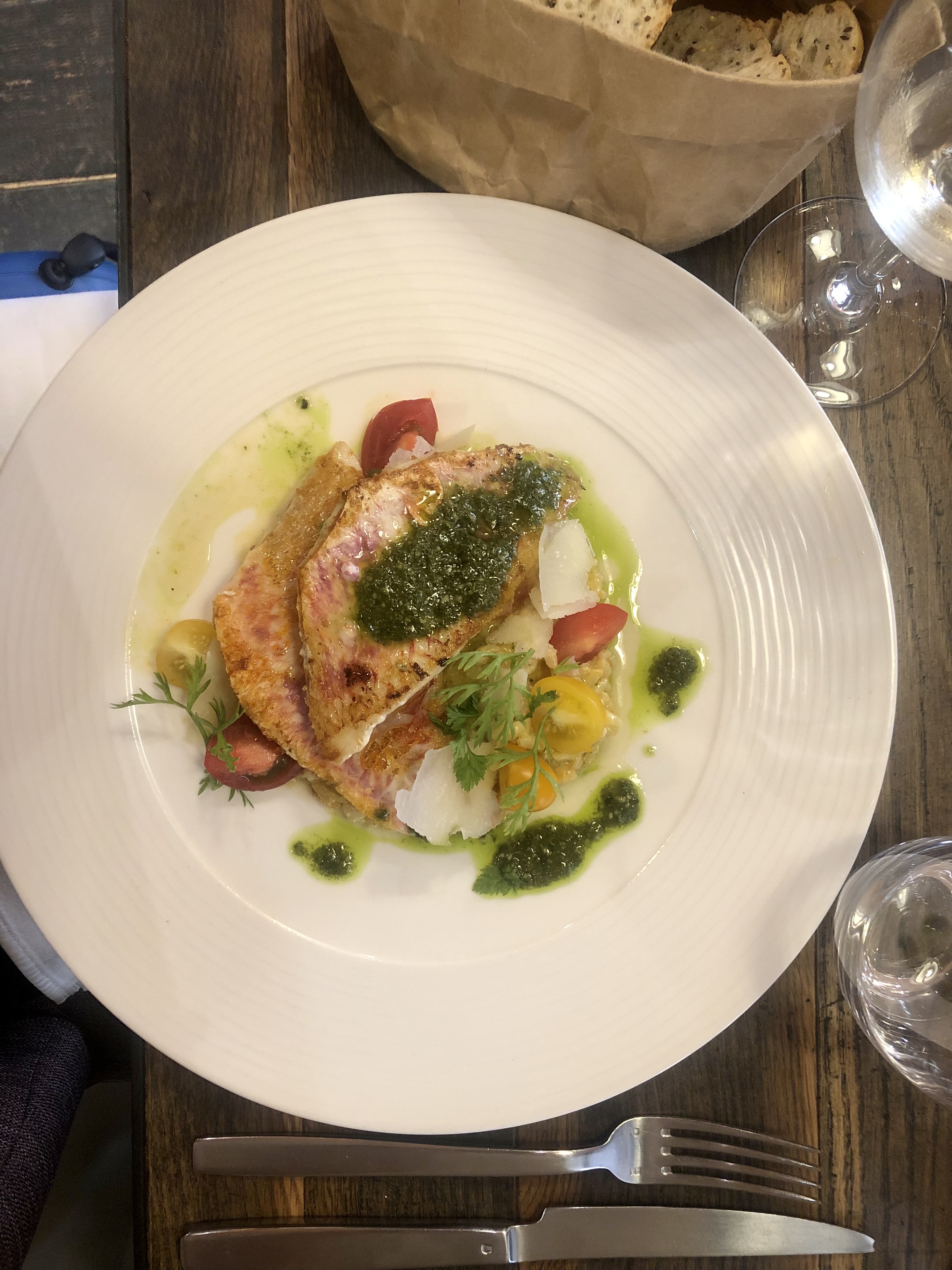 Excellent plat du jour, rouget et risotto au pistou