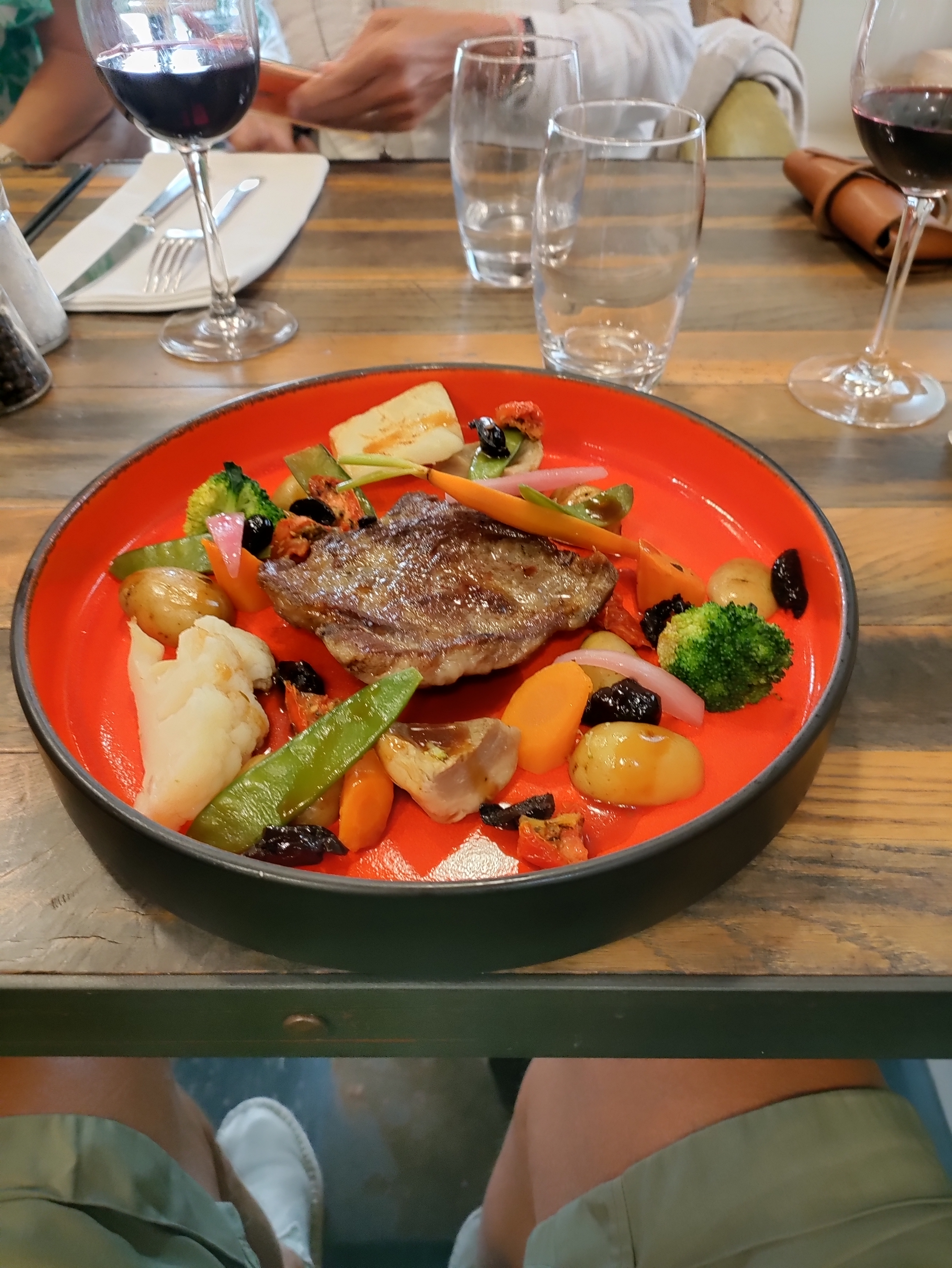 Le repas était bon mais : 1. Pas assez copieux et il n'y a rien de plus frustrant que de payer un plat 27€ et d'être light en quantité. 2. Qualité des viandes correcte mais sans plus et de nouveau 27€ pour cela, c'est agaçant. 3. Service agréable mais quand on demande des renseignements à la serveuse sur les viandes la réponse est c'est bon, moi je m'y connais mieux en poisson Pour le vin aller voir et si vous avez besoin d'aide on vous dira ( au final on a été bien conseillé ... Par un autre serveur). Autrement : beau resto, ambiance charme et tranquille, confortable. Bref avec des prix plus bas, ça aurait été bien. En l'état, nous ne reviendrons pas et nous ne recommandons pas.
