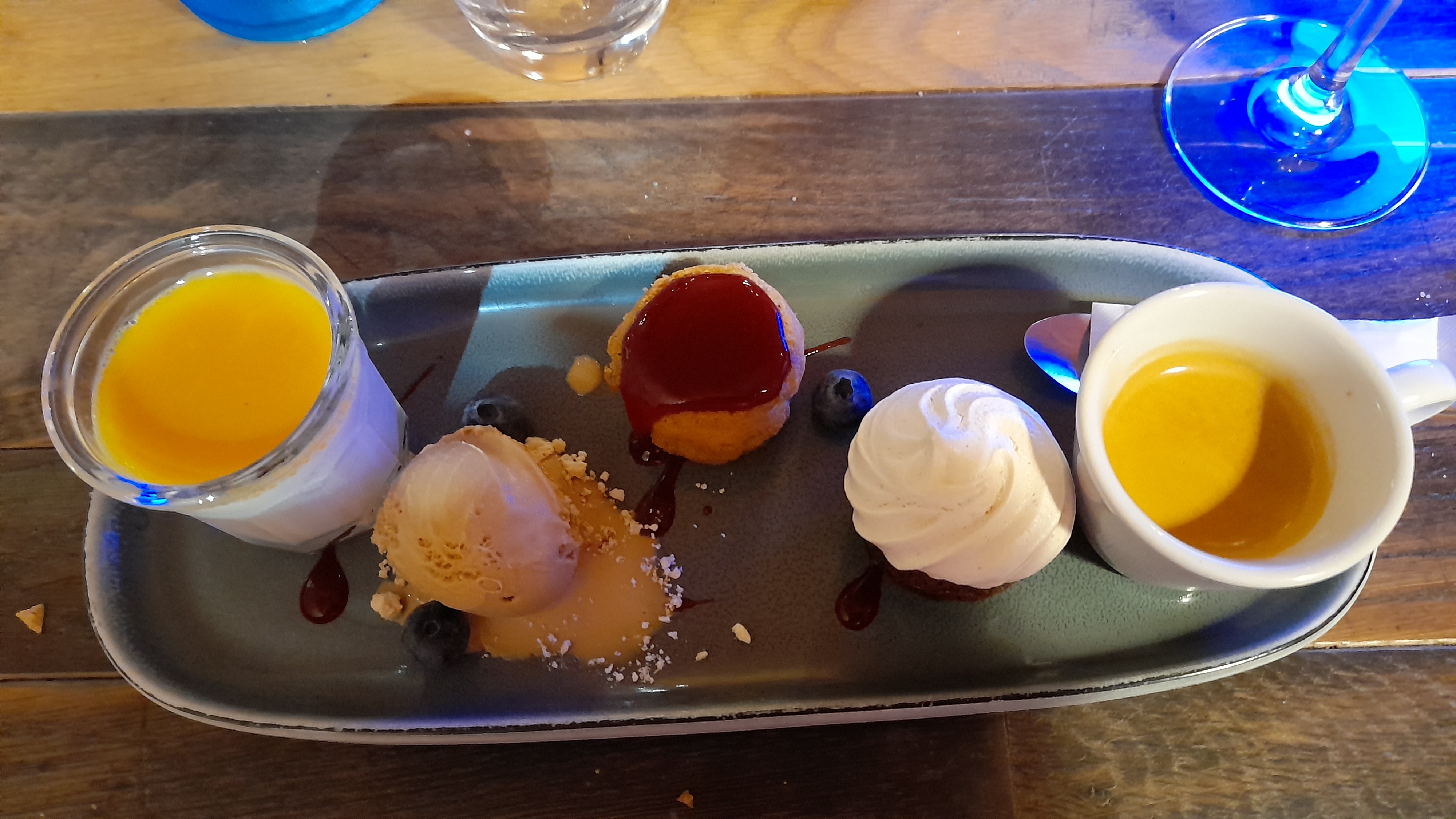 Très bon accueil, vin avec bon rapport qualité-prix, plat copieux avec saveurs, mais les desserts ne sont pas en rapport avec les plats dommage.