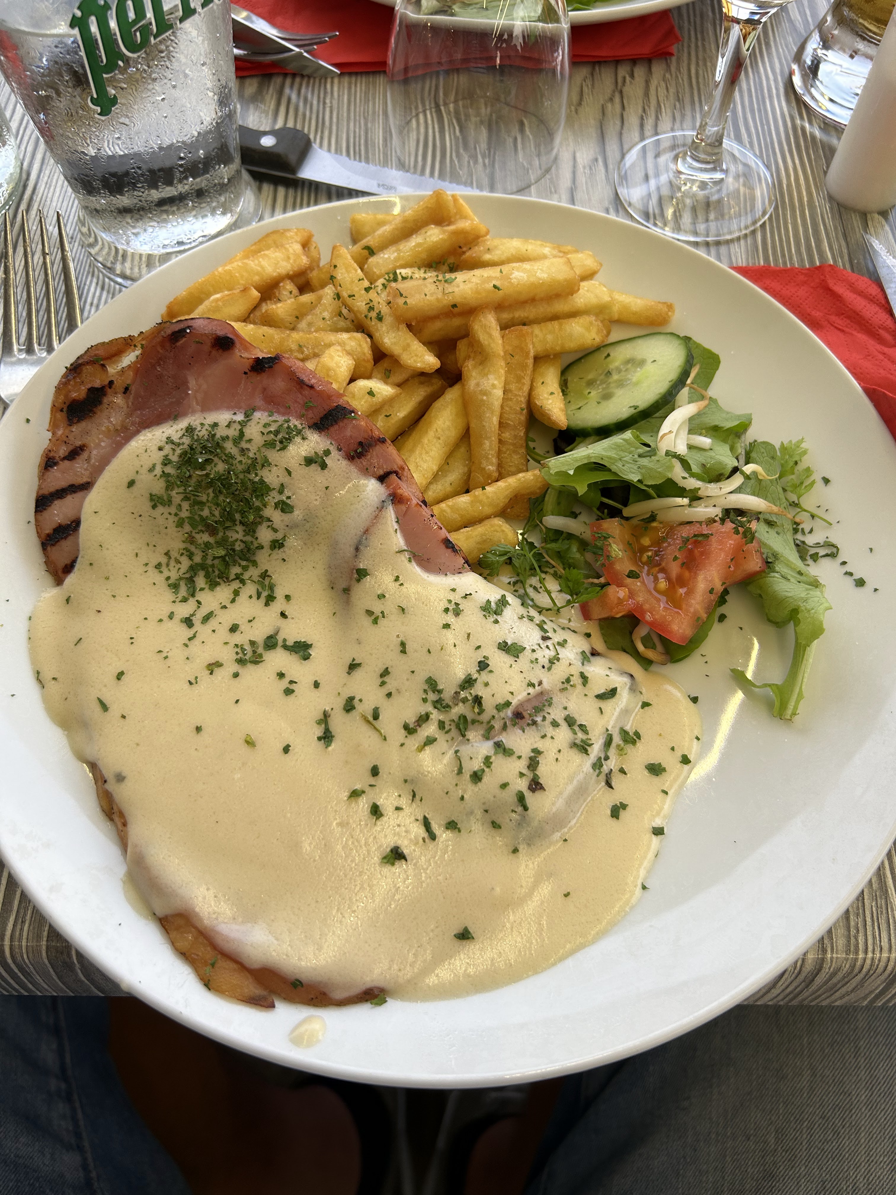 Bon repas, très peu dans l’assiette, et prix quand même assez excessif pour le contenu de l’assiette, patronne pas aimable, du tout, et nous demande de nous accélérer de déjeuner à la fin du repas