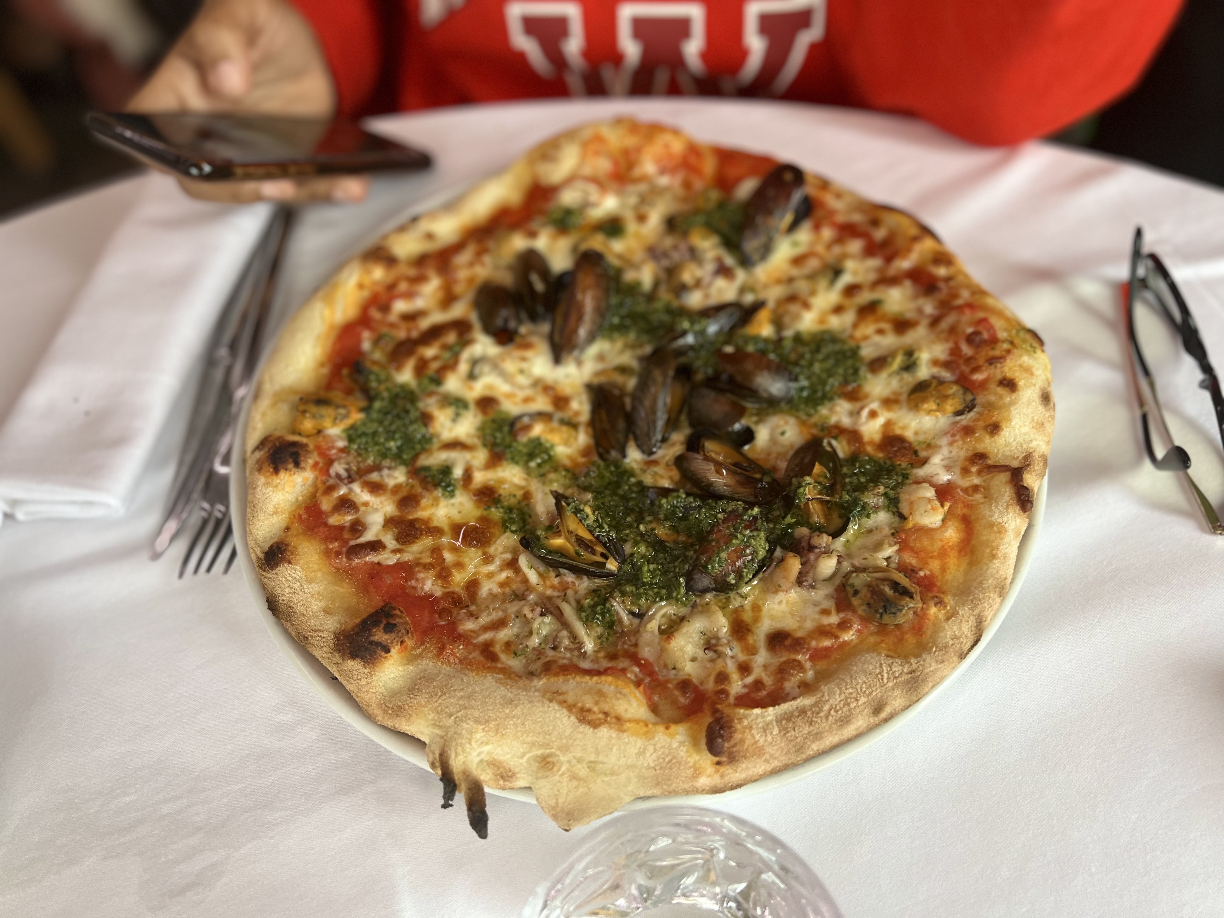 Super endroit. Vue sur la plage. Le plateau de fruits de mer mélangés était une grande portion et délicieux. Les pâtes Arrabiata étaient suffisantes, rien d'extraordinaire.