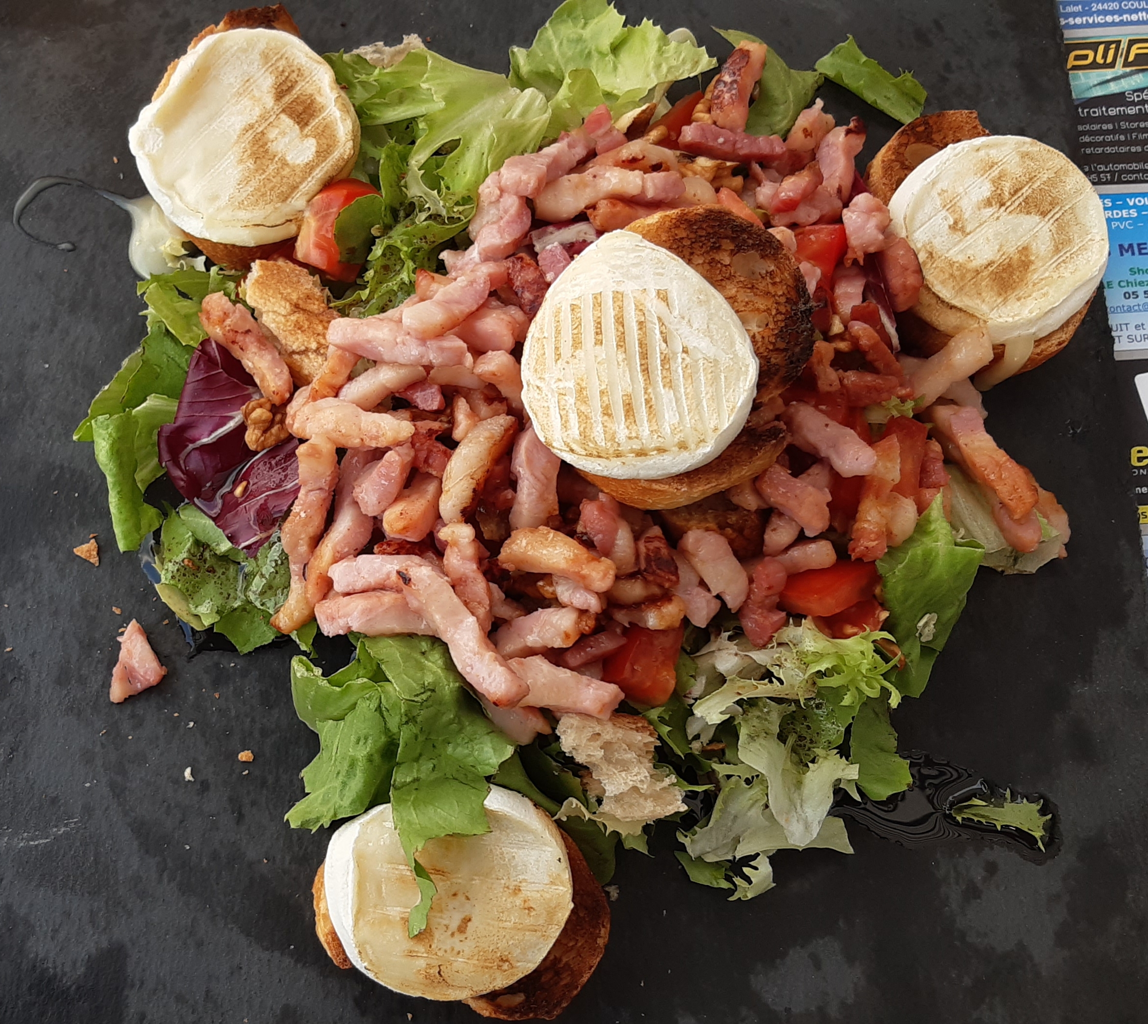 Petit resto en famille pour les vacances nous avons bien vite déchanté, d'abord le pain tout simplement dur (mon fils c'est même fait mal avec en le mangeant), ensuite arrive les assiettes menu enfant les frites étaient bonnes le steak haché paraissait bien cuit sauf qu'à peine coupé je vois qu'il est saignant je demande à ce qu'il soit bien cuit le serveur reprend l'assiette qui revient 30 secondes plus tard (donc forcément toujours pas cuit )accompagné de nos plats 3 salades (paysanne et périgourdine) la encore nous avons vite déchanté le fois gras mi cuit baignait sur une tartine de pain pleine de gras, les rillettes n'avaient aucun goût, le magret de canard j'en trouve du meilleur en supermarché et le jambon de pays infecte et lorsque que nous le signalons au serveur quand il reprend les assiettes il revient 1 minute après nous demandant ce que nous lui avions trouvé car il venait de goûter dans nos assiettes et n'avait rien trouvé de bizarre! (Mais bien sûr en plein covid on va goûter dans les assiettes des clients!) Pour ce qui est de la salade il y en avait très peu et l'assaisonnement n'avait aucun goût... bref 70€ à 4 pour ne rien manger et partir en courant ça fait mal...