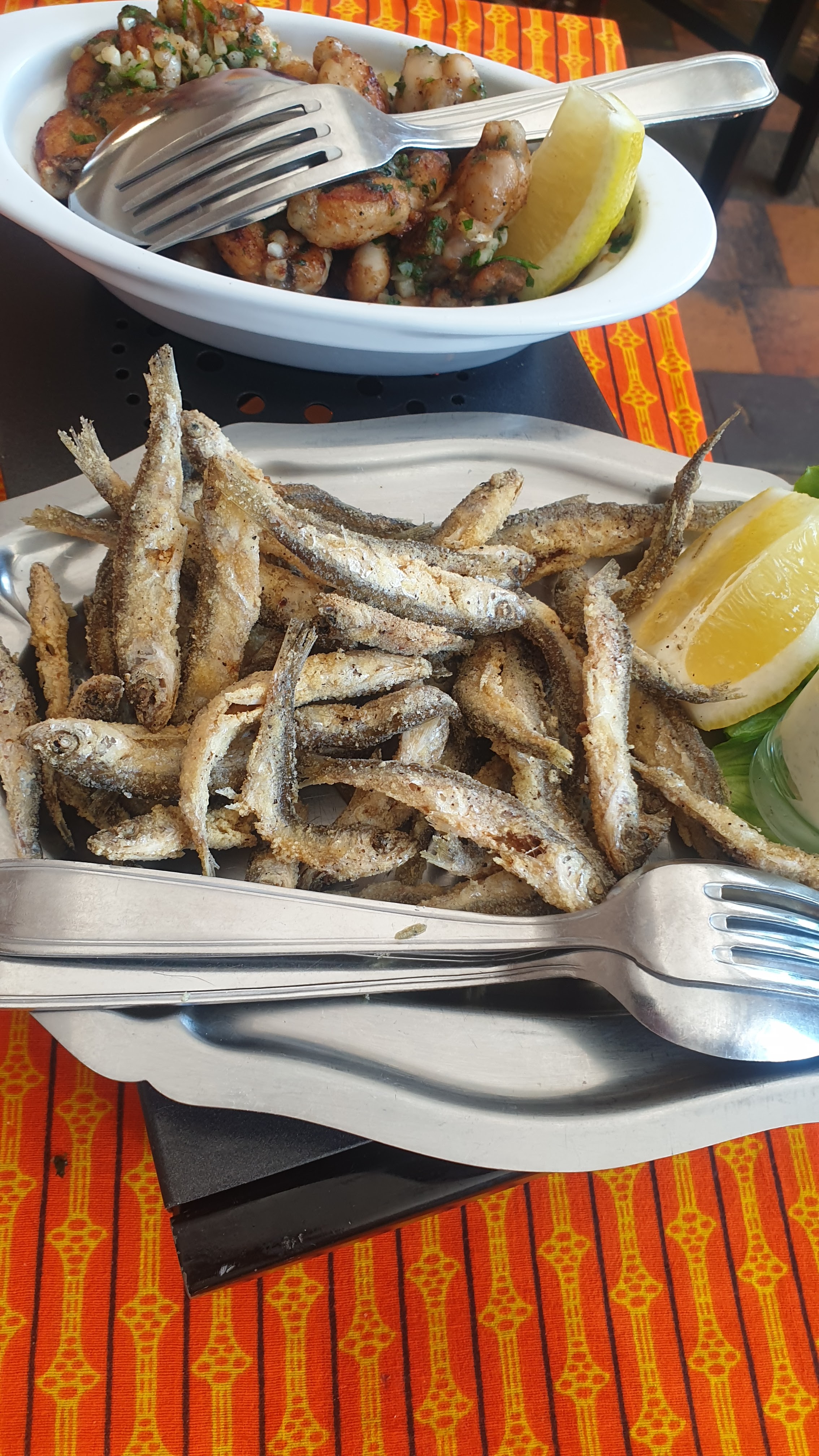 Déçus. Les deux autres restaurants étant complets, nous nous sommes rabattus sur le troisième le long de la Seille après avoir accosté. Les fritures étaient alléchantes mais hélas trop cuites et surtout enduites d'une sorte de pâte poussiéreuse, trop présente. Quel dommage ! compte tenu de la qualité des produits. Les grenouilles étaient sympathiques, les desserts sans intérêt. Heureusement, la bonne humeur générale et la gentillesse de la Patronne nous a permis de ne pas regretter cette soirée.