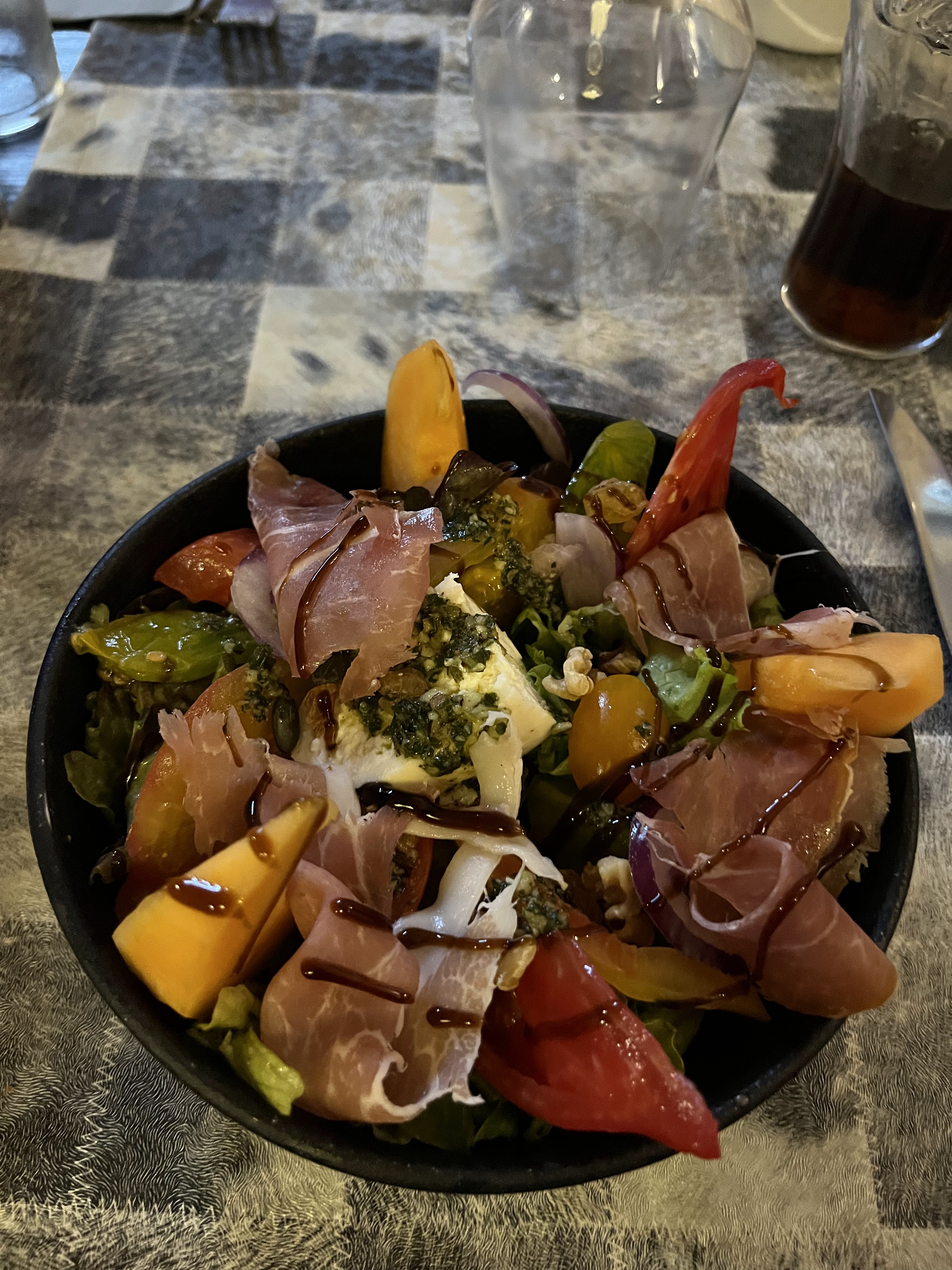 Découvert lors de notre balade à Aime Une jolie terrasse , Le service est agréable et sympathique Les plats sont raffinés, pour ma part linguines aux légumes excellentes , pour mon mari le plat du jour en formule attractif et très goûtu. Seul petit bémol qui doit être signalé car lorsqu on a des enfants qui sont plutot difficiles a satisfaire il faut être préparé, il n y a pas trop d adaptation possible par les chefs en cuisine , le menu enfant est un plat à la carte en version réduite (avec une glace en dessert ) ce qui peut être agréable pour les enfants au palet peu capricieux, cela permet de changer de l éternel nuggets frites ou steak, cependant nous demandions simplement que le Burger( sauce ketchup aux fruits rouges ,salade ,tranche de pancetta...) à la carte soit le plus simple possible malheureusement cela n a pas été possible ... c est bien dommage car la sauce étant particulière cela a été difficile de ne pas gaspiller . Je trouvais important de le signaler pour les parents . Sinon un nb pour les toilettes qui sont très propres !