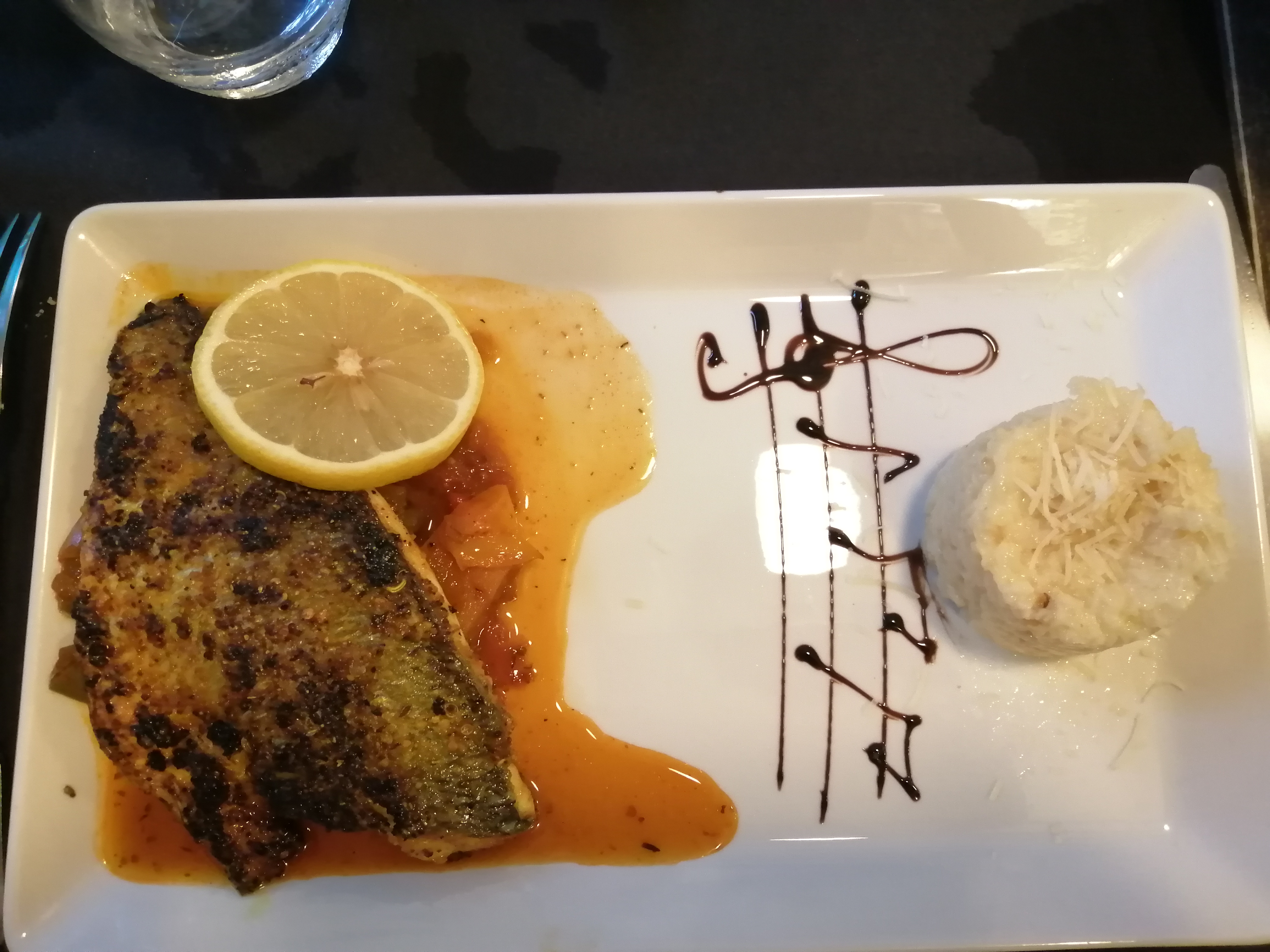 La daurade et le risotto sont sensationnel tout autant que le dessert du chef!