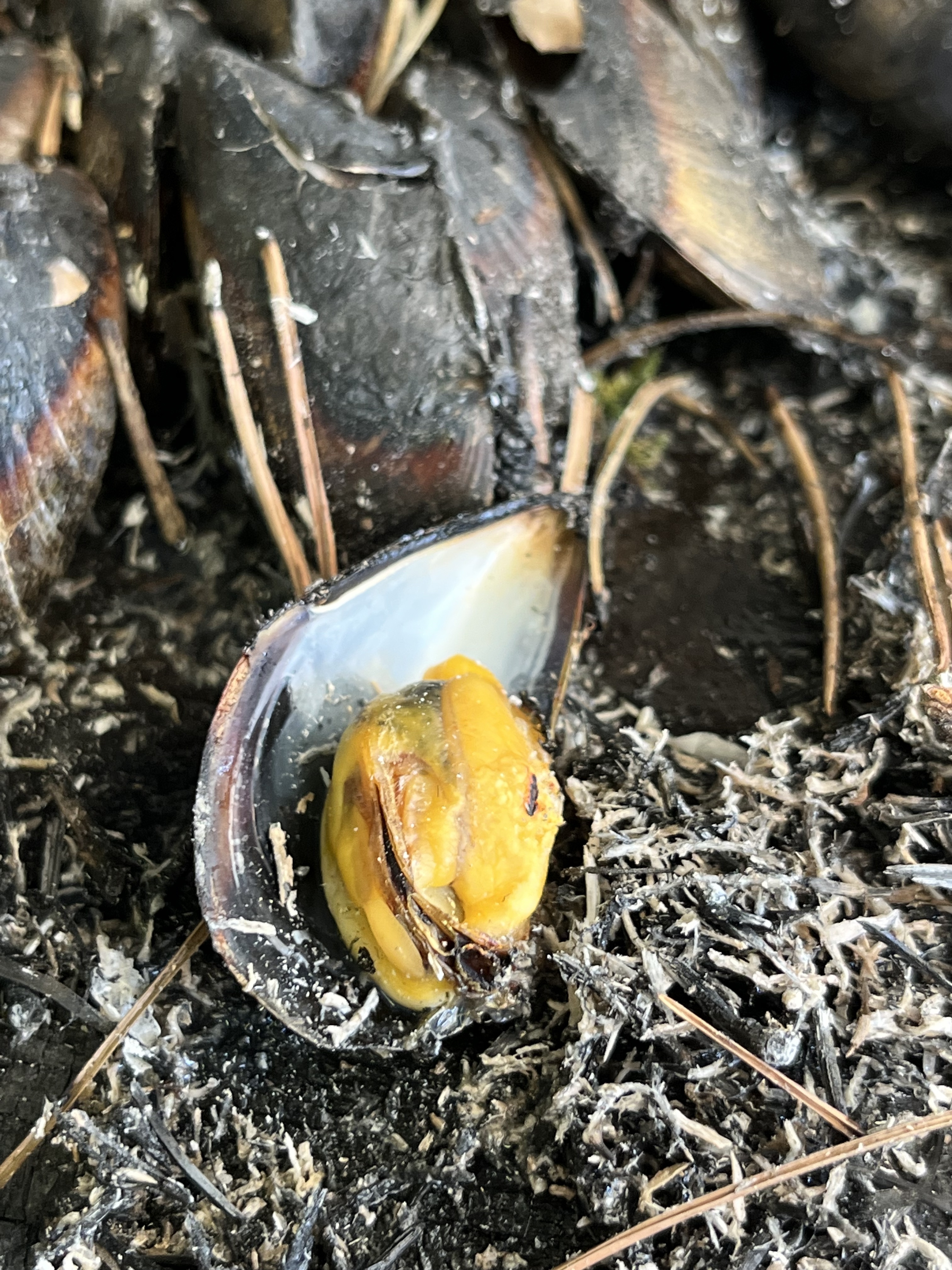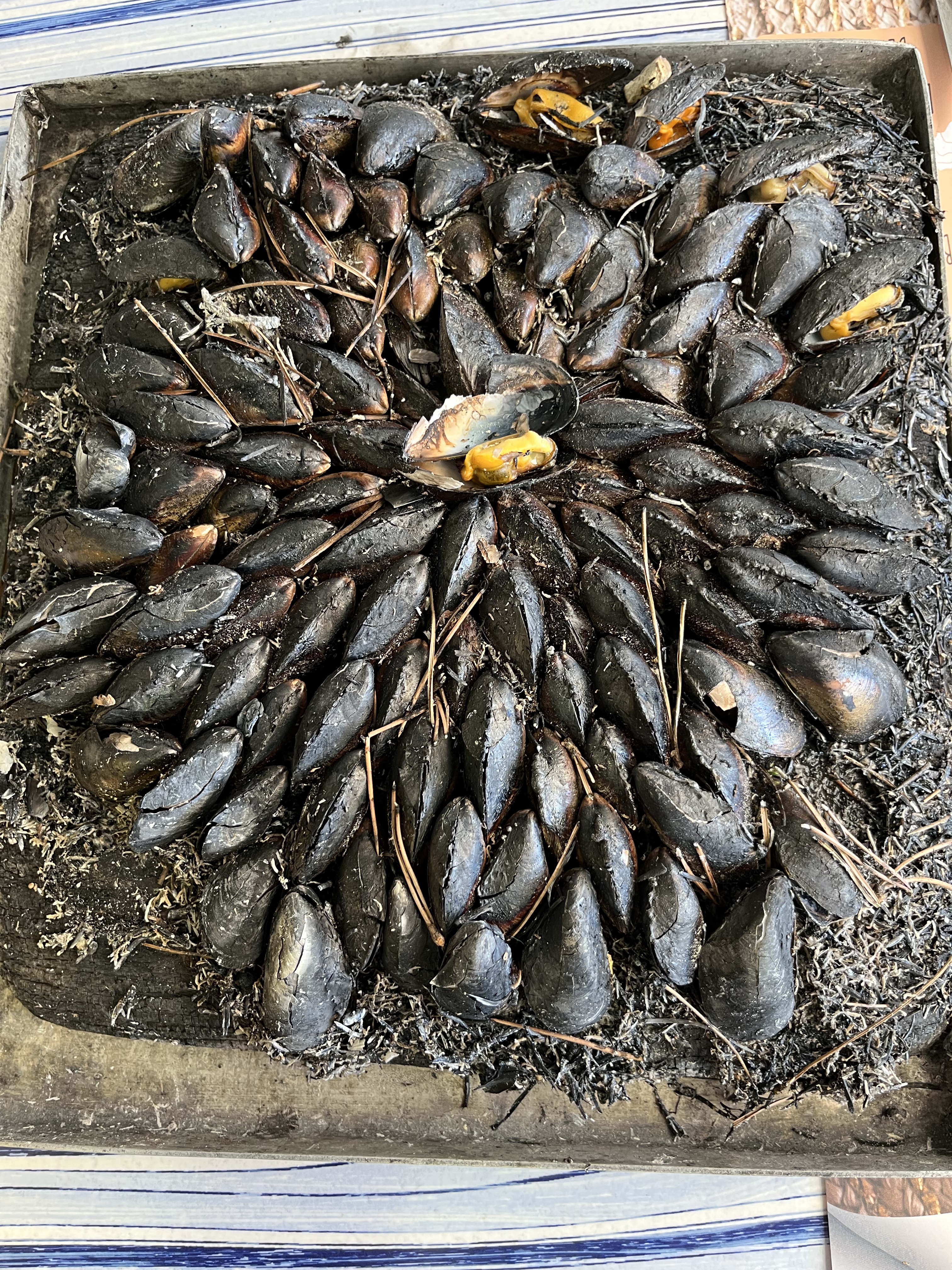 Ma première véritable éclade , des moules cuites au feu d' aiguilles de pin, un délice avec un petit entre-deux-mer, une merveille...
